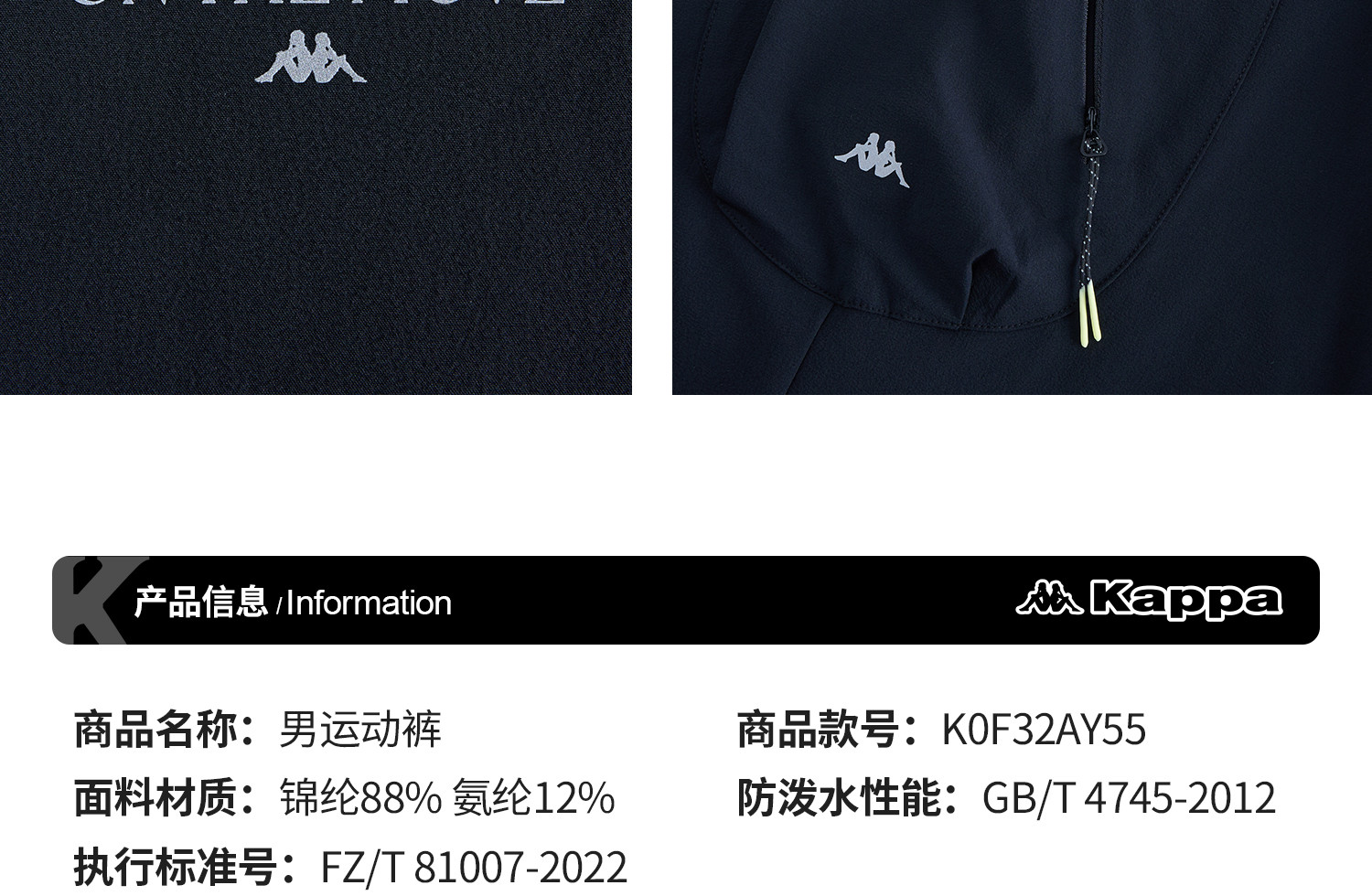 Kappa卡帕背靠背2025新款防泼水运动裤男户外弹力休闲裤子直筒裤K0F32AY55