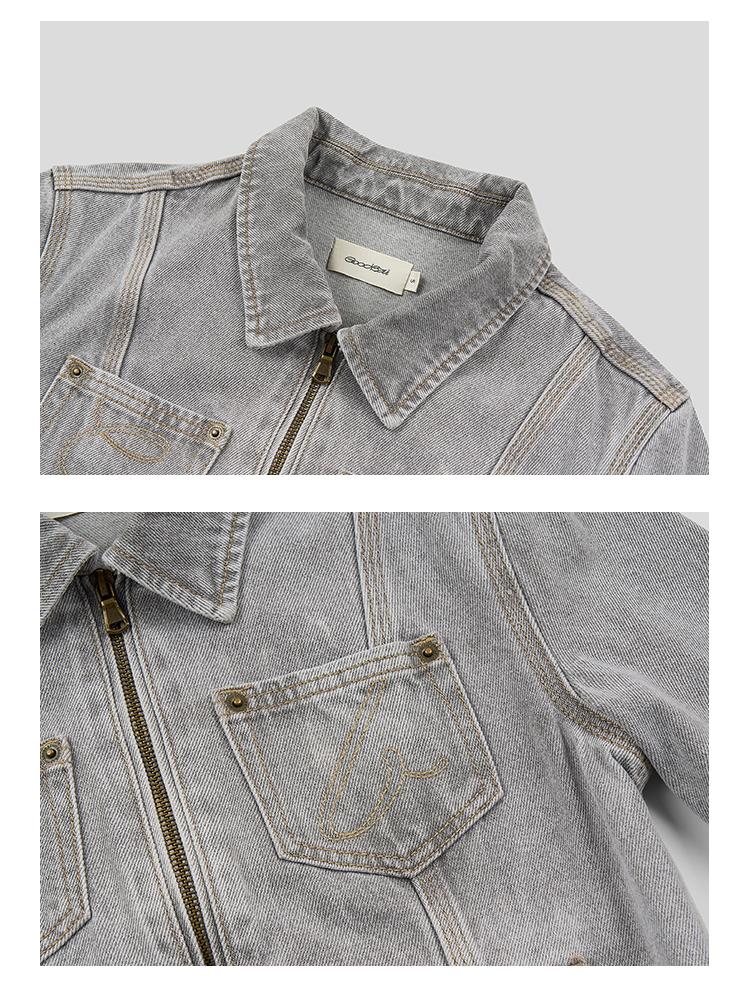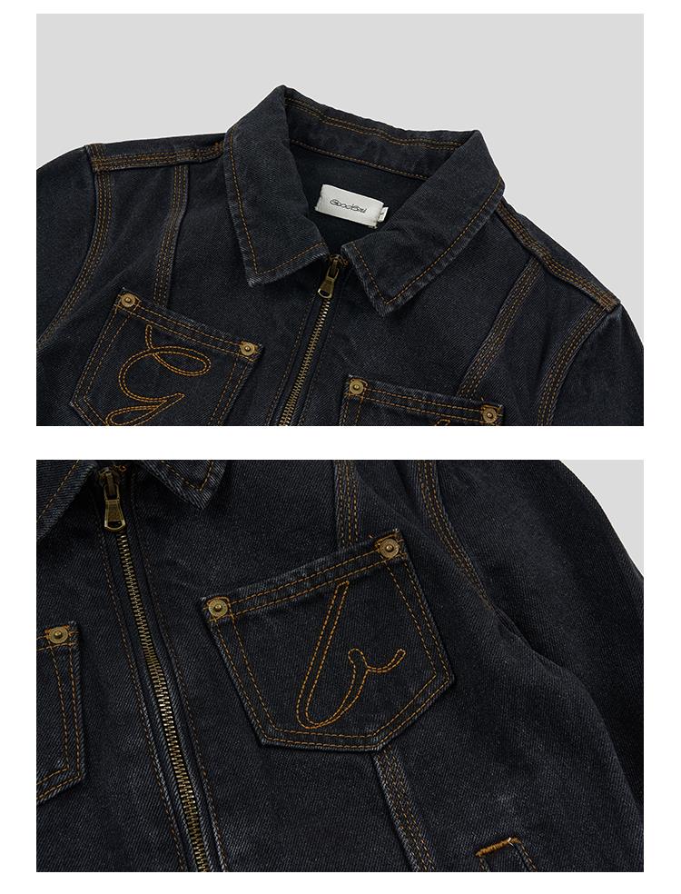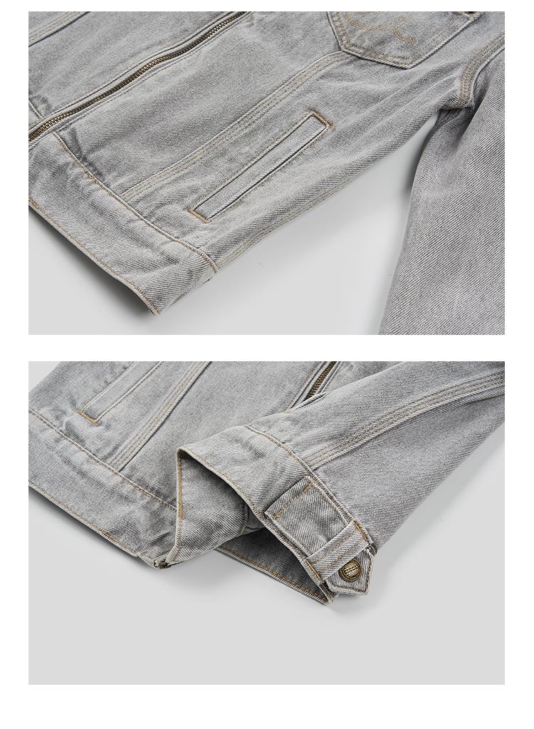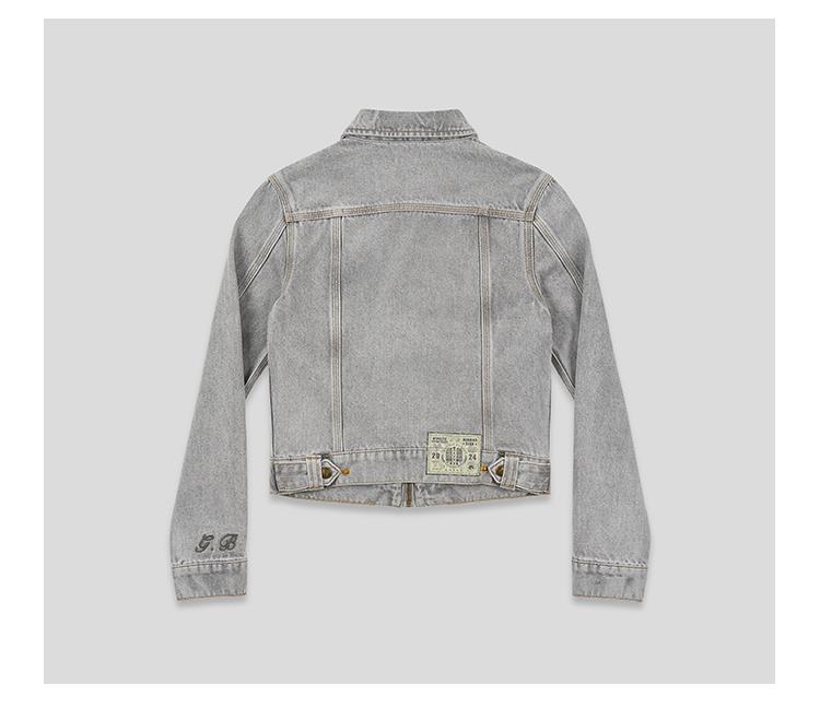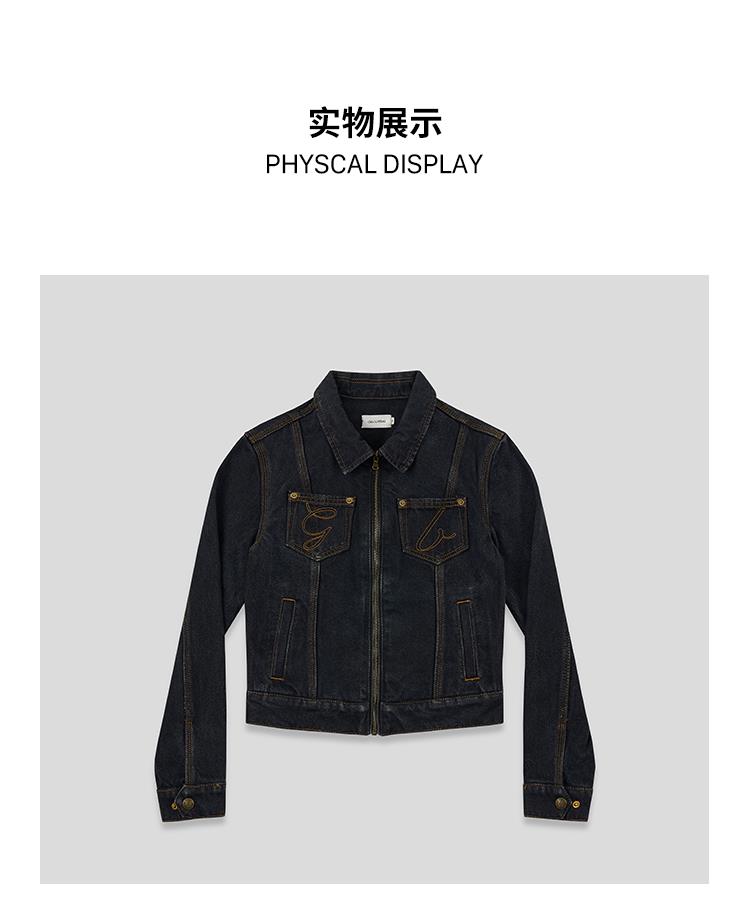GOODBAI G.B logo刺绣翻领水洗做旧正肩牛仔夹克