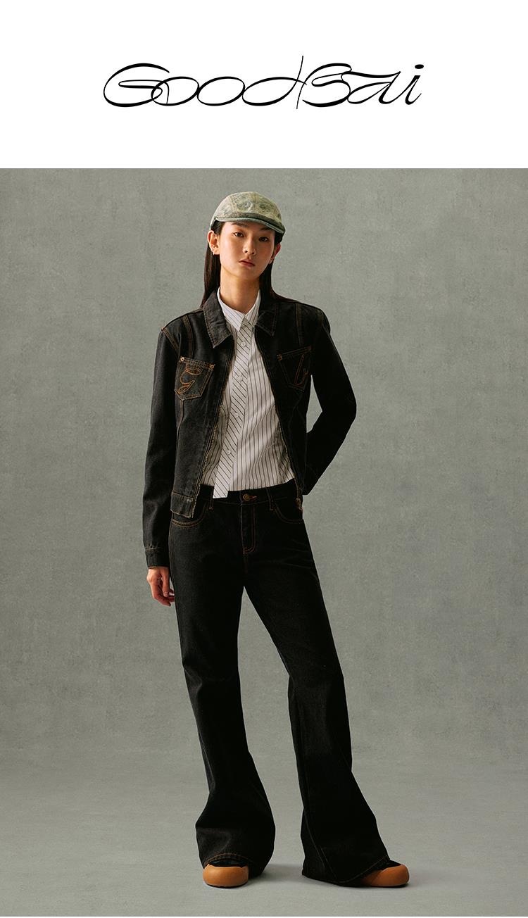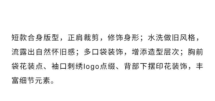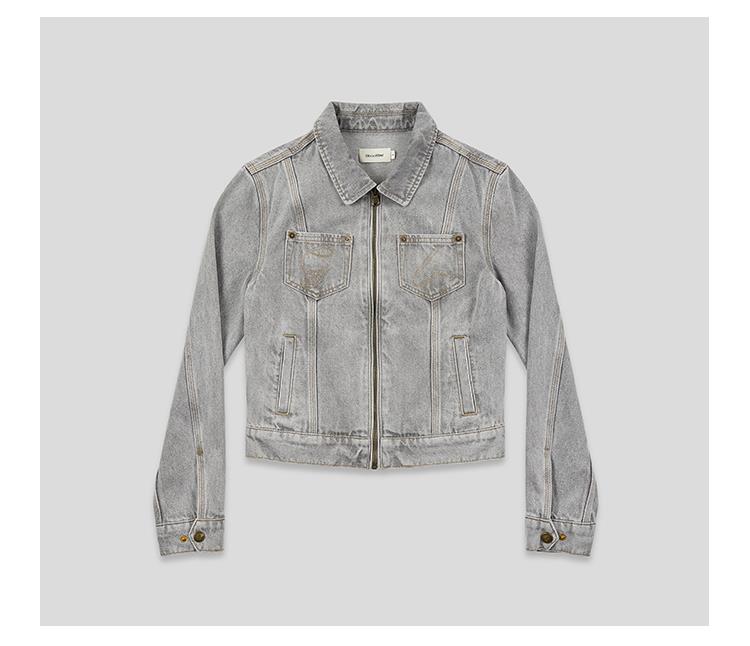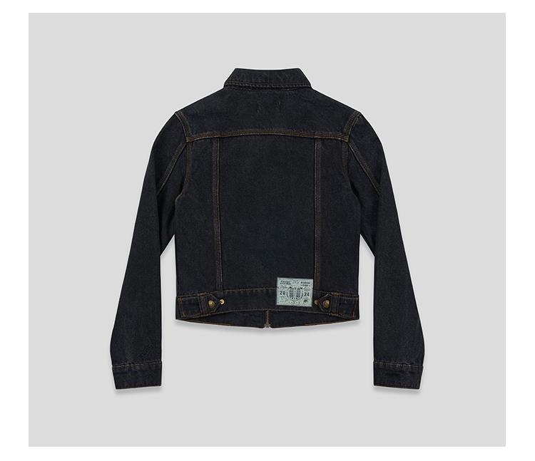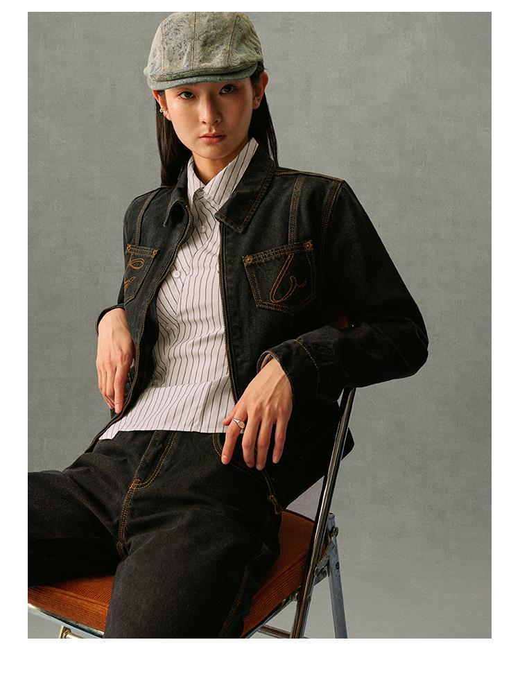 GOODBAI G.B logo刺绣翻领水洗做旧正肩牛仔夹克