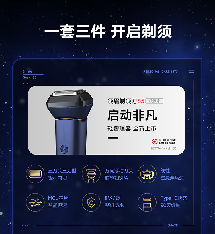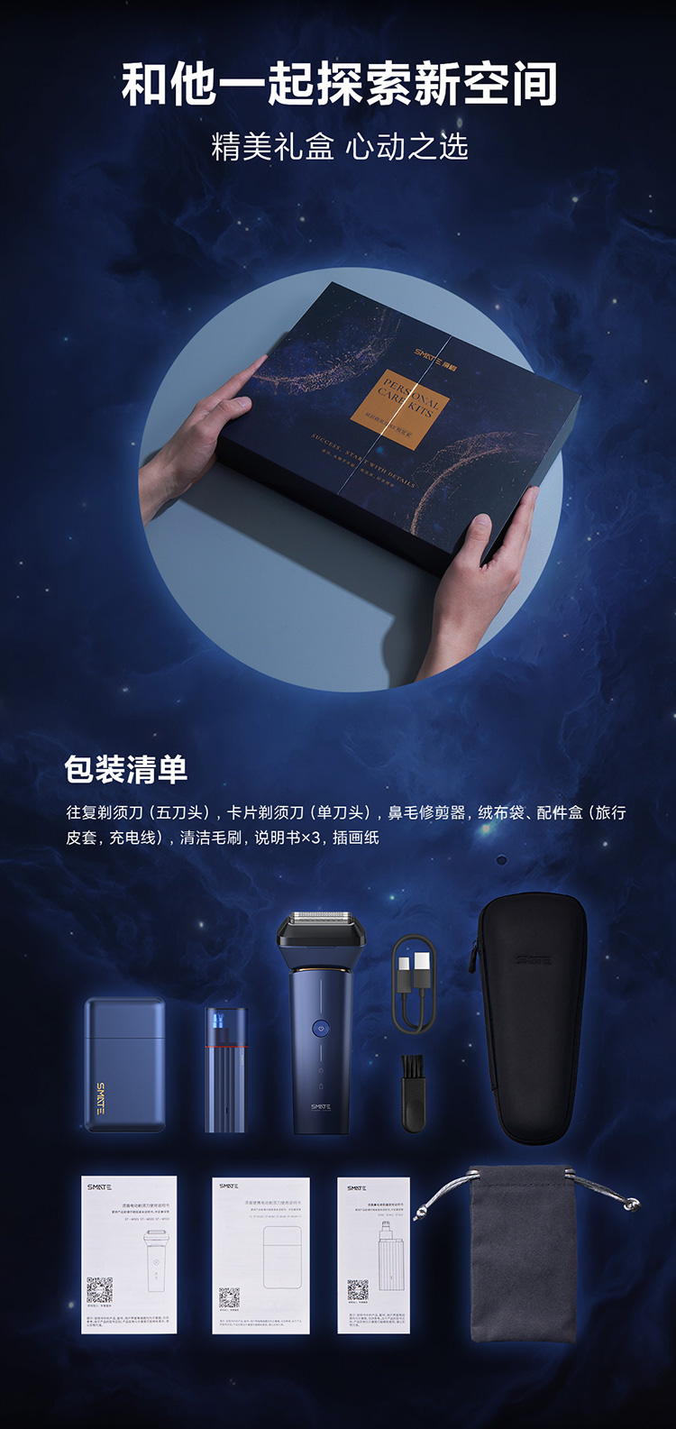 须眉电动剃须刀往复式五刀刮胡刀男士轻奢锤子状剃须刀礼盒高档精致防水S5极氪家礼盒送男友圣诞节礼物