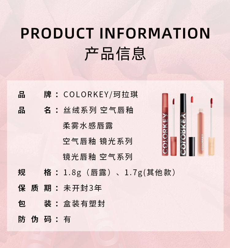 COLORKEY 珂拉琪 空气唇釉 丝绒系列 1.7g