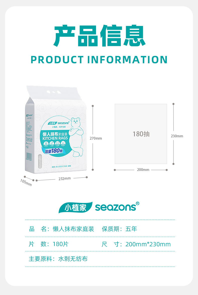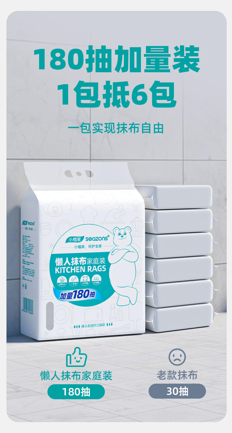 小植家懒人抹布家庭装20cm*23cm*180片