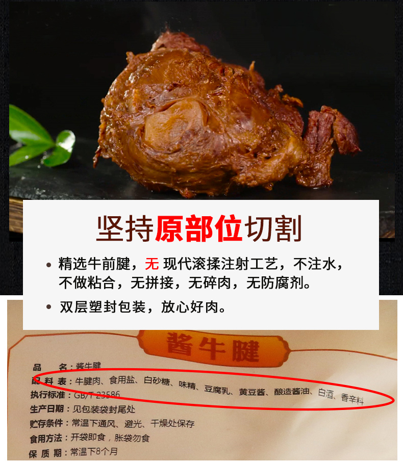 【高品质的牛腱子来啦!! 原切不育肥,全部带花腱,坚决不去芯!】汇柒鲜传统酱牛腱子150g*5袋,肉里包筋、筋里有肉的牛腱子