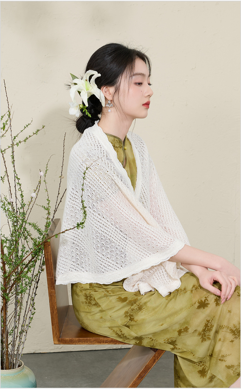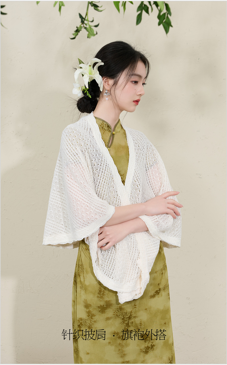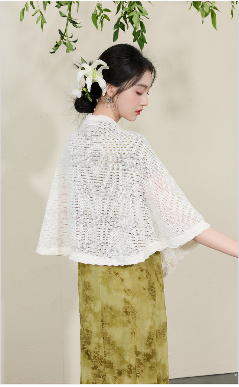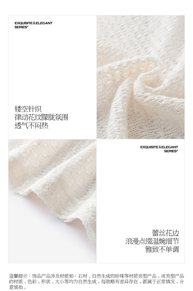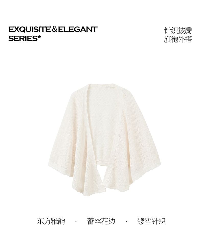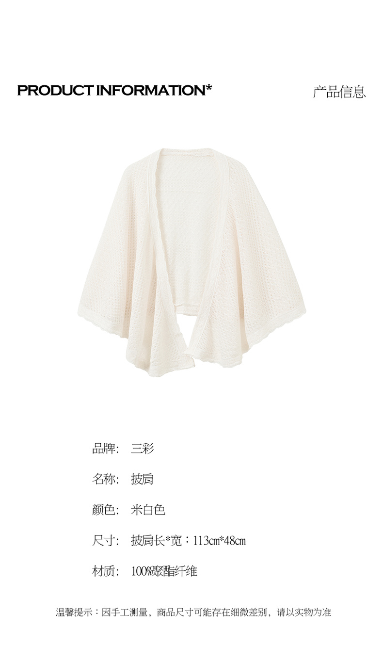三彩2026新款国风镂空针织披肩外搭米白蕾丝花边温柔茶歇写真宽松