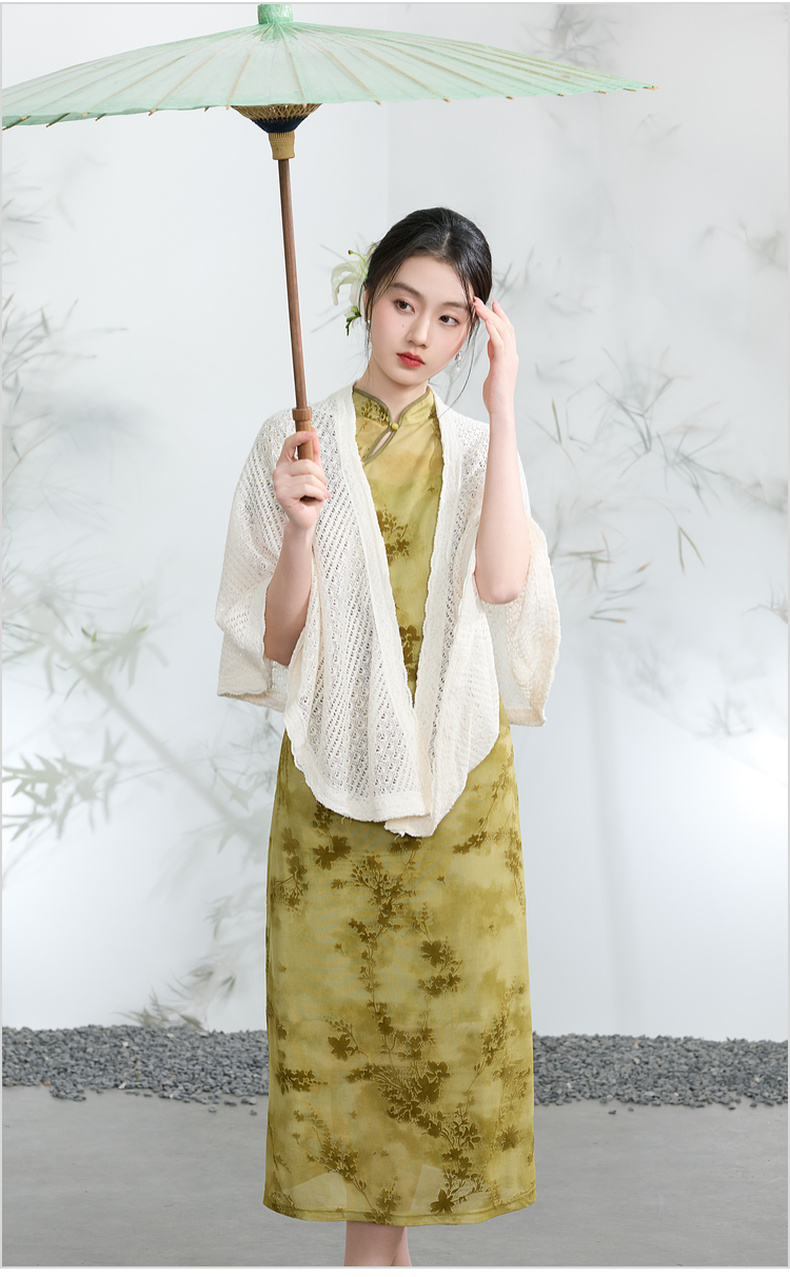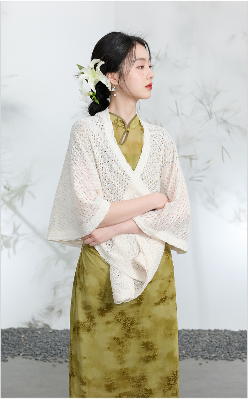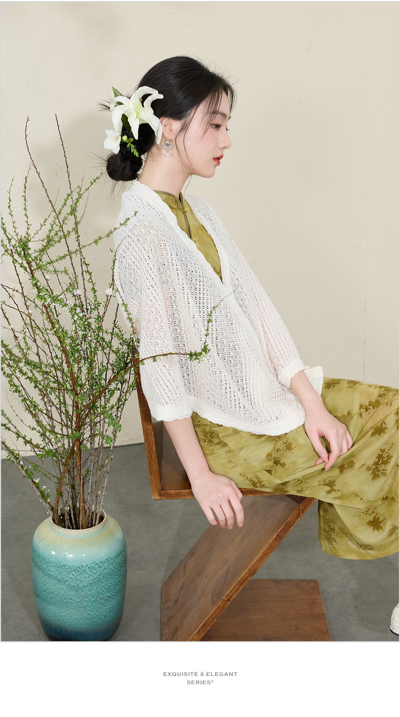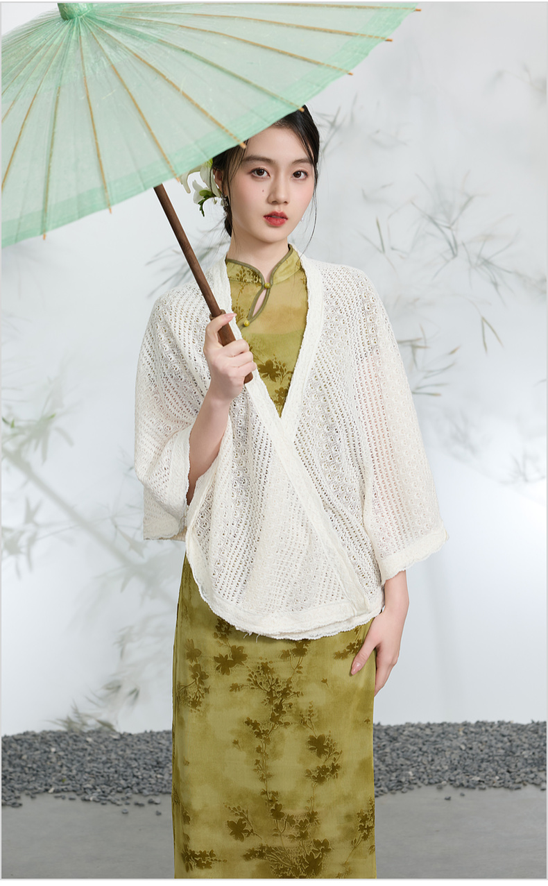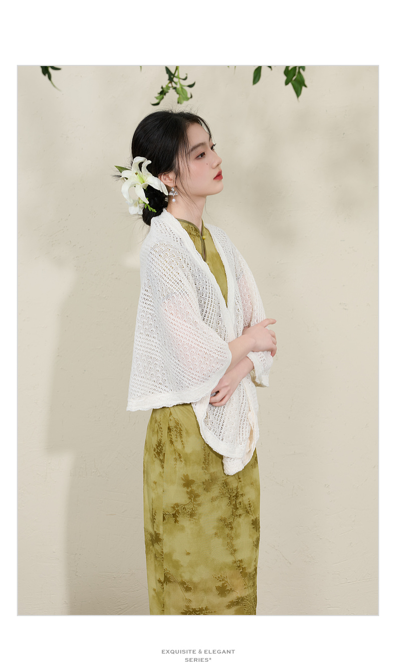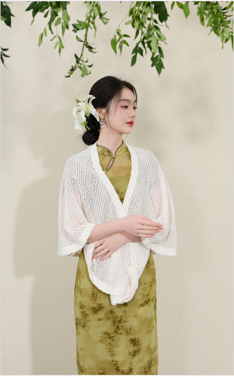 三彩2026新款国风镂空针织披肩外搭米白蕾丝花边温柔茶歇写真宽松