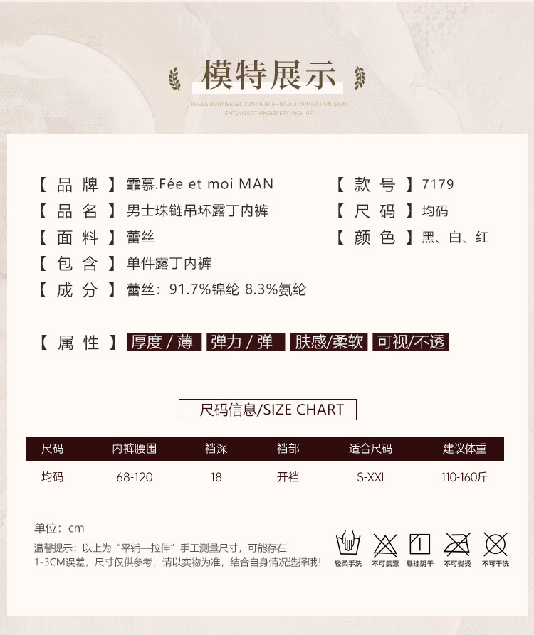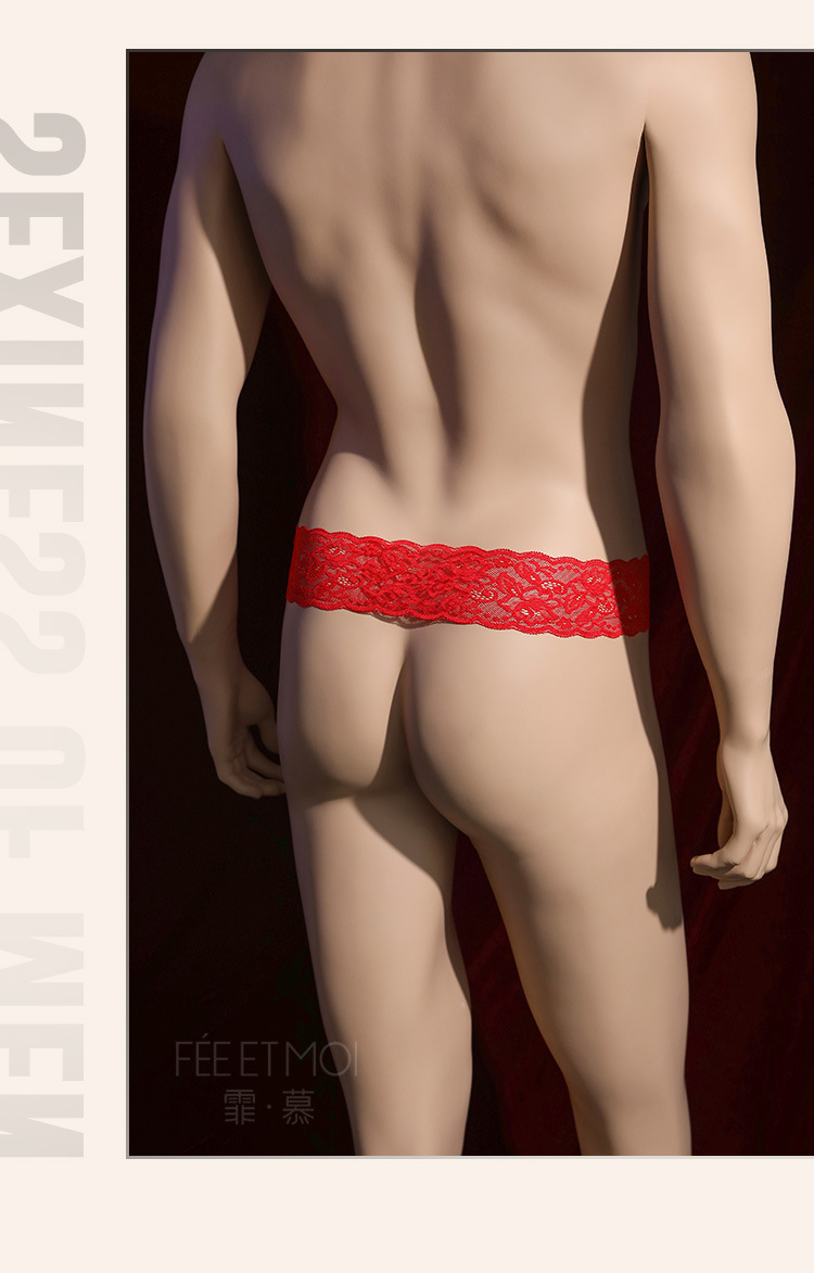 【霏慕】男士珠链吊环露丁内裤7179情趣用品内衣性感蕾丝腰边