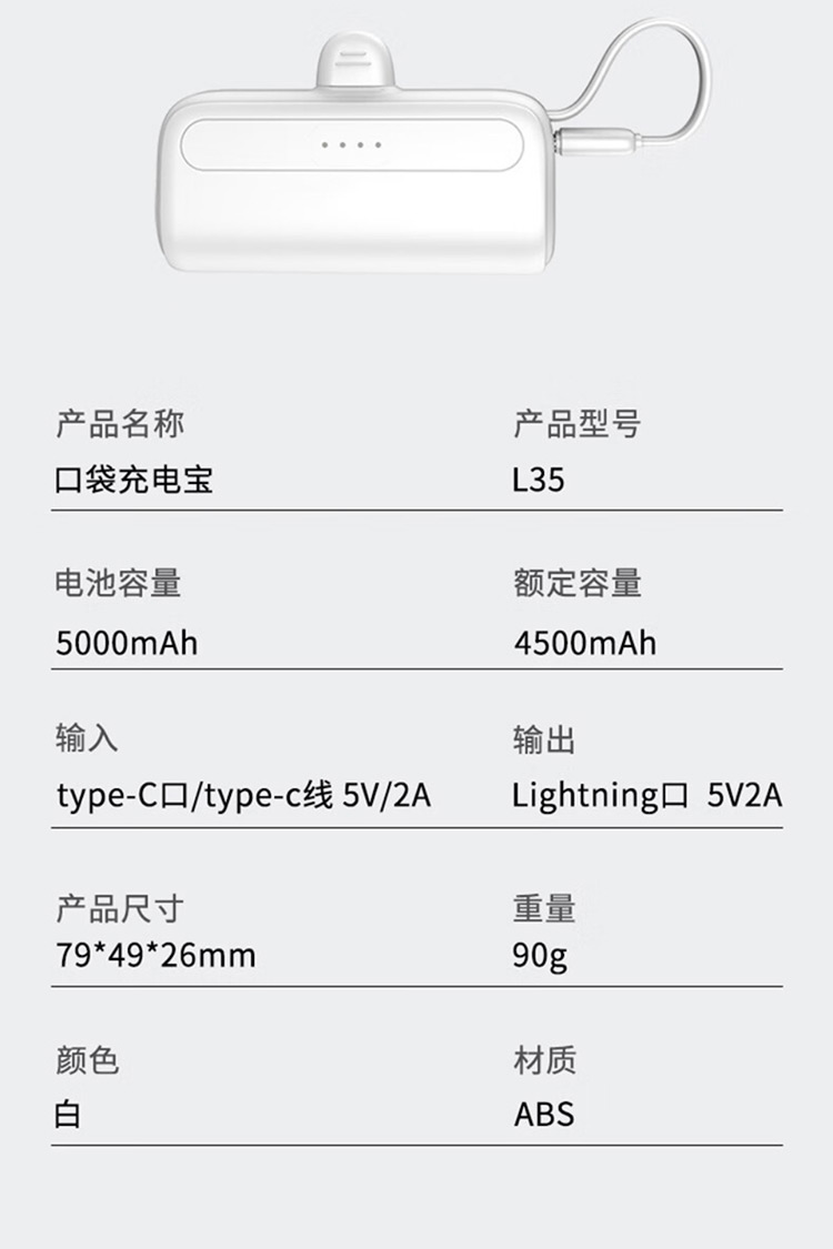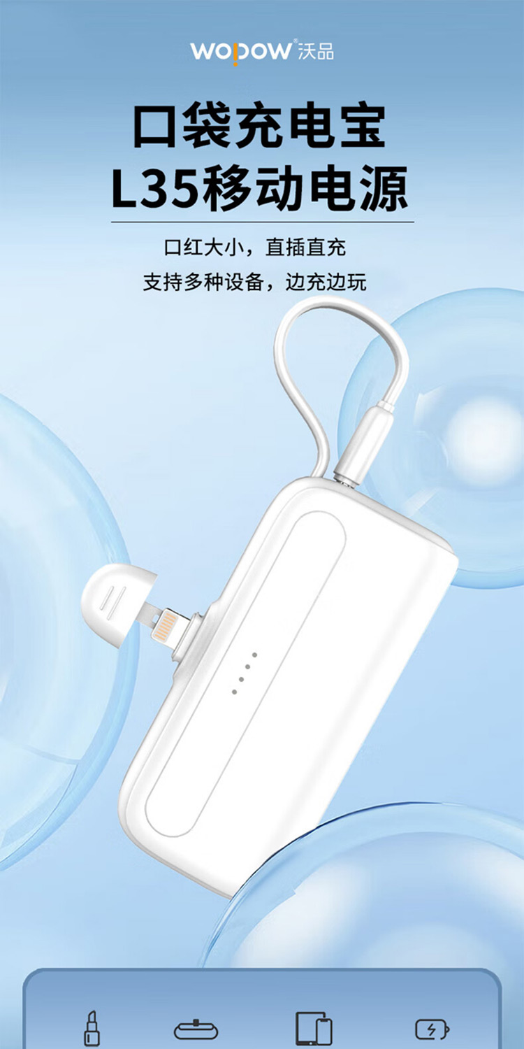 沃品 15W自带线快充移动电源 L27