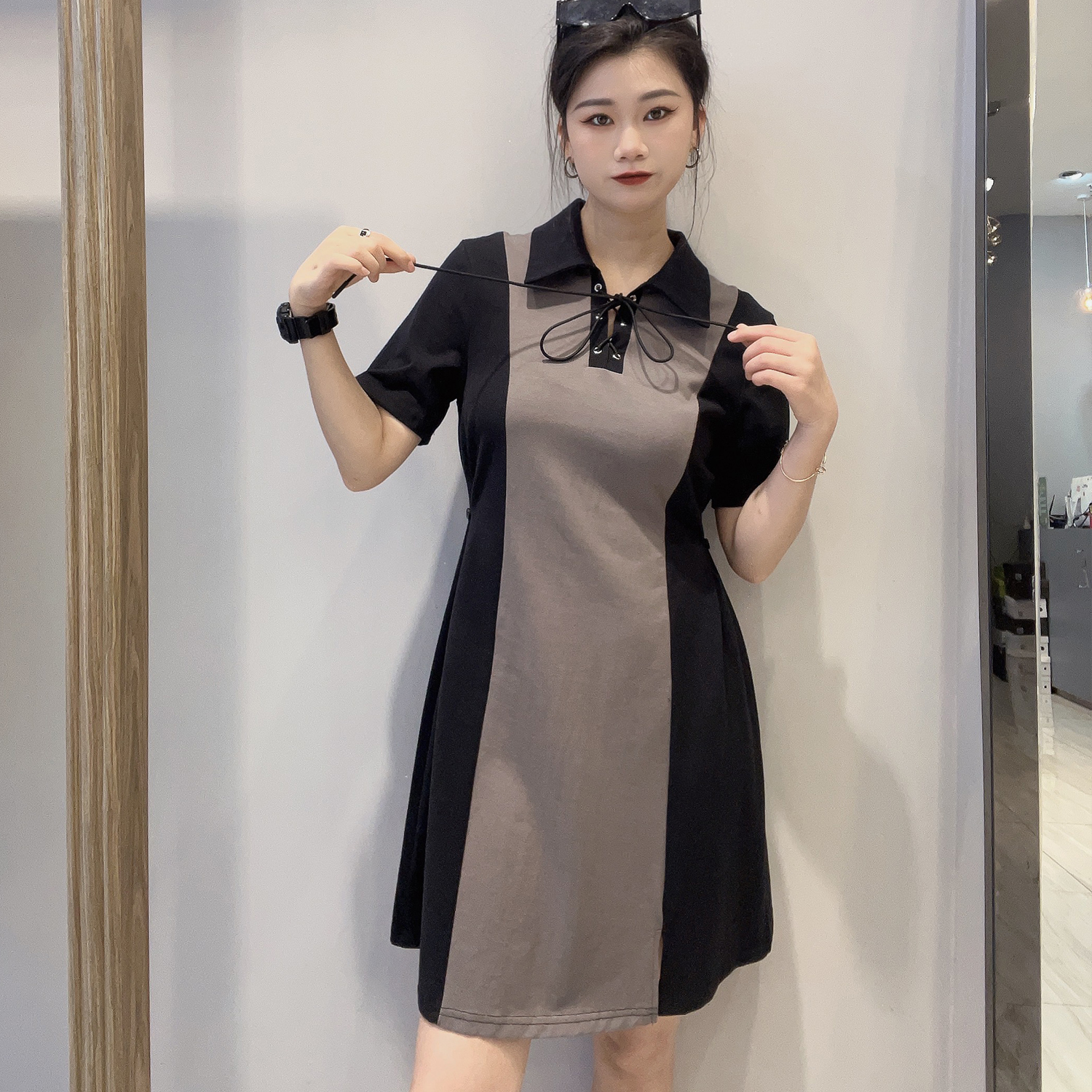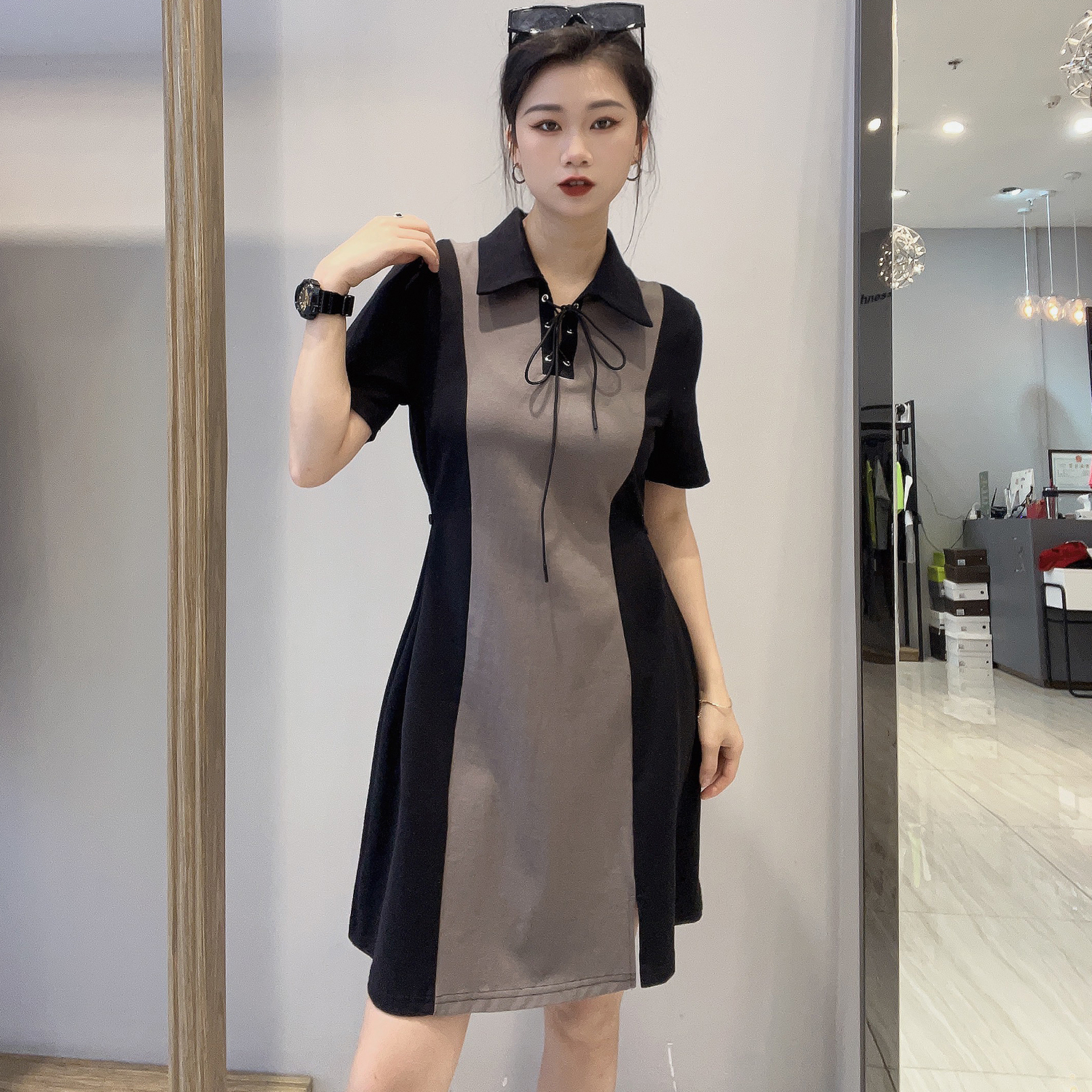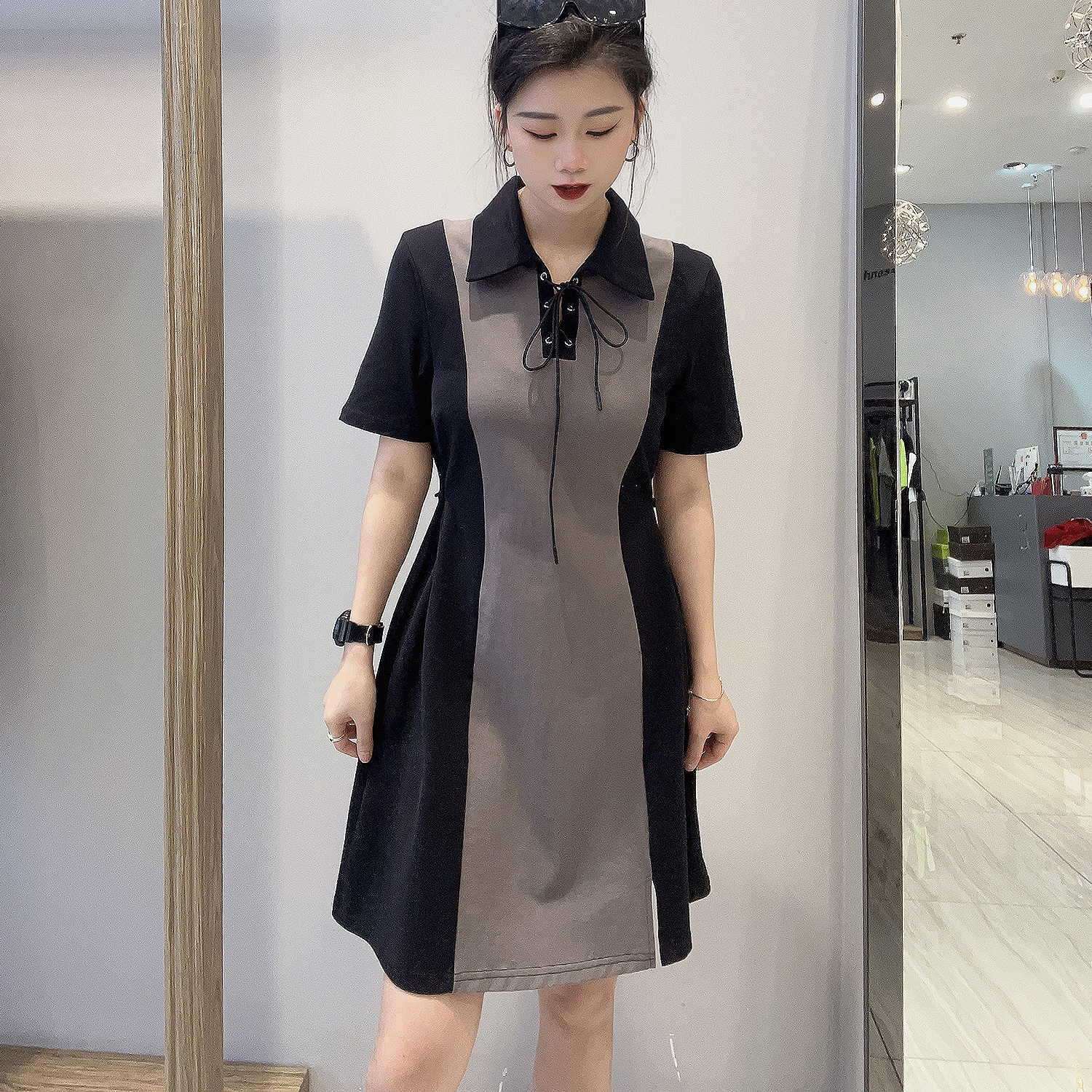 2-12GDPOLO领分割短袖连衣裙40410(黑) 夏季 142100100321