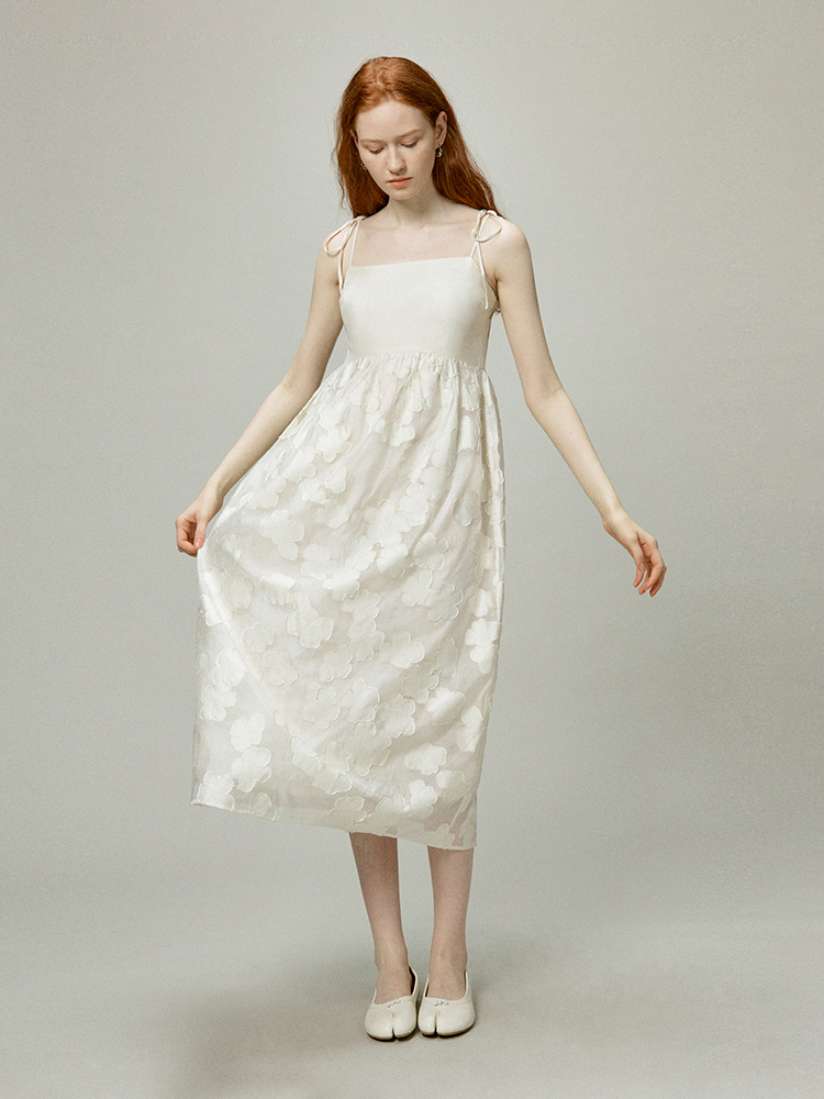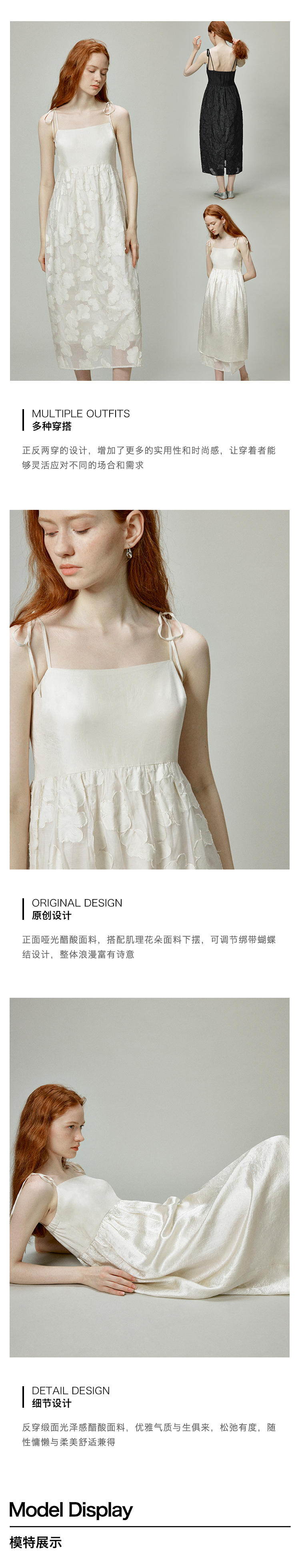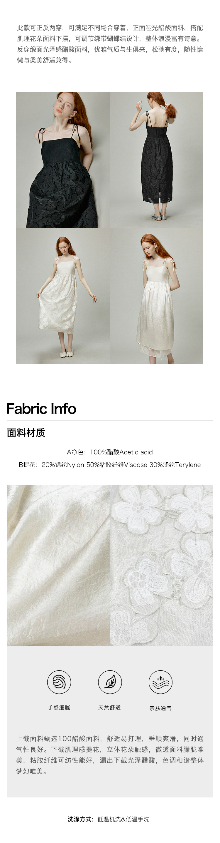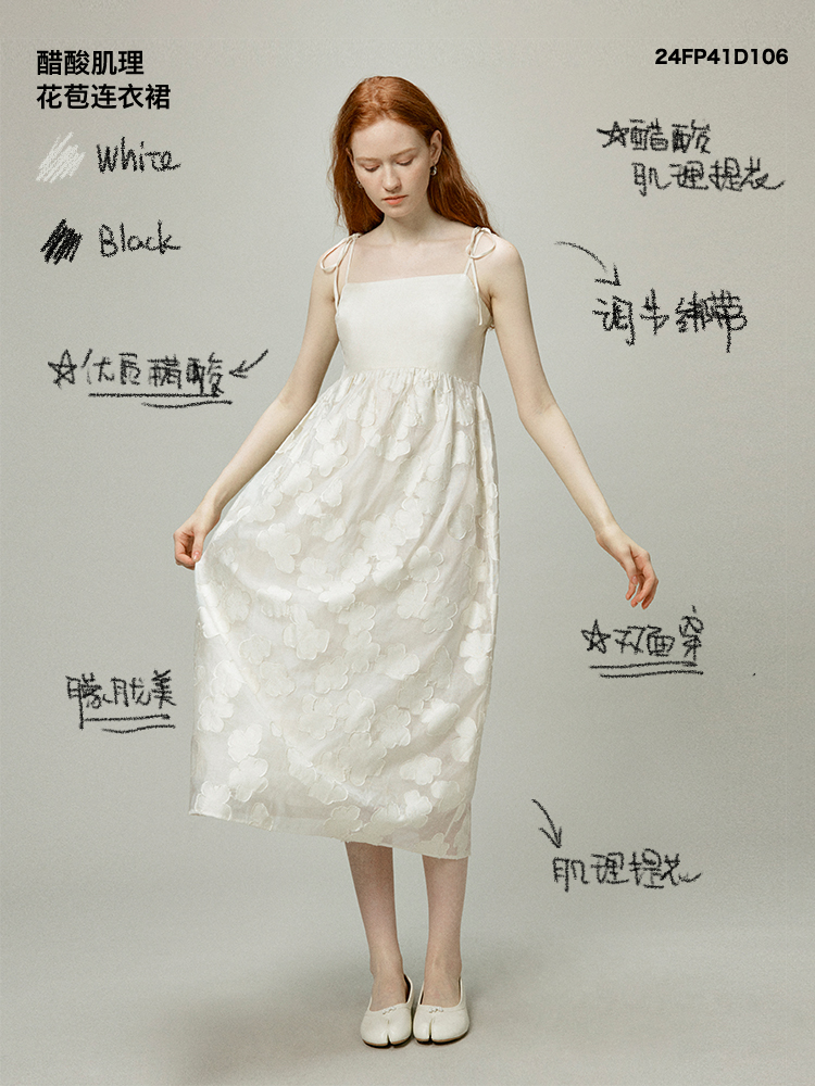 ForPoem 现货 24/SS夏季花朵系列正反两穿醋酸肌理花朵抹胸花苞连衣裙
