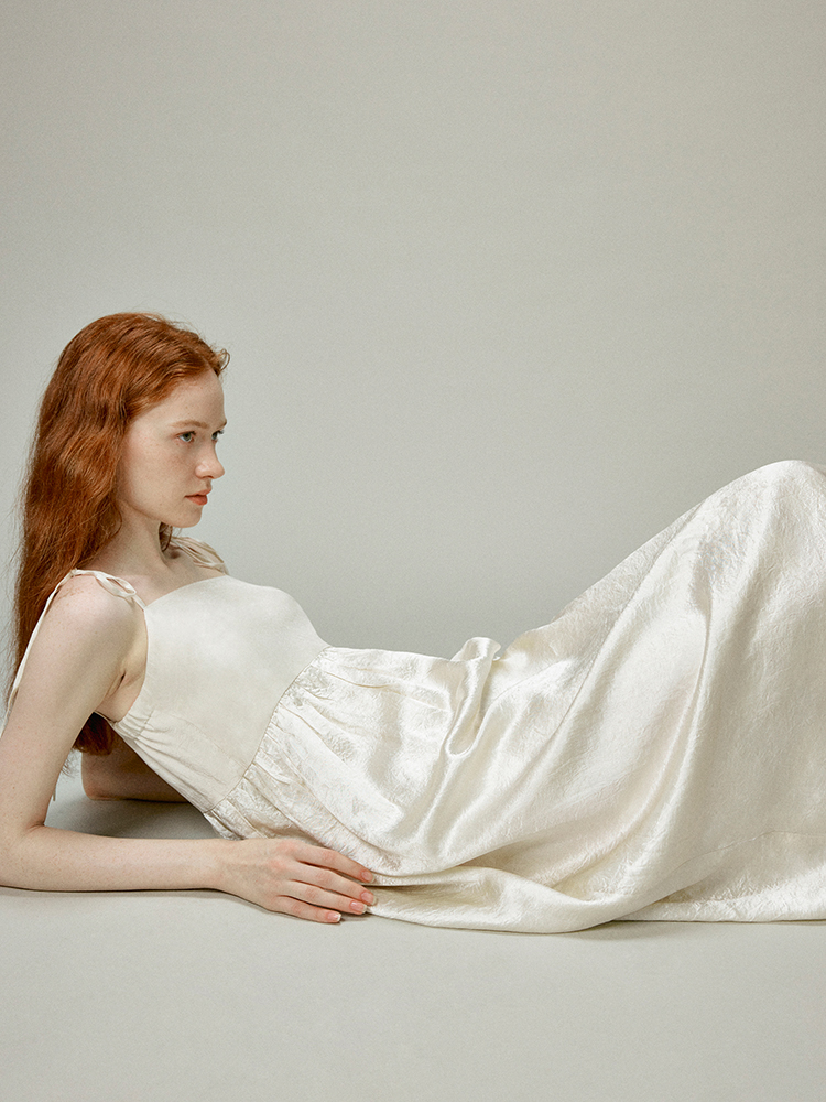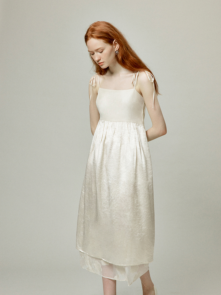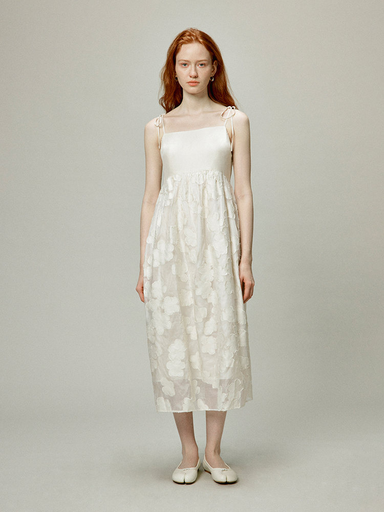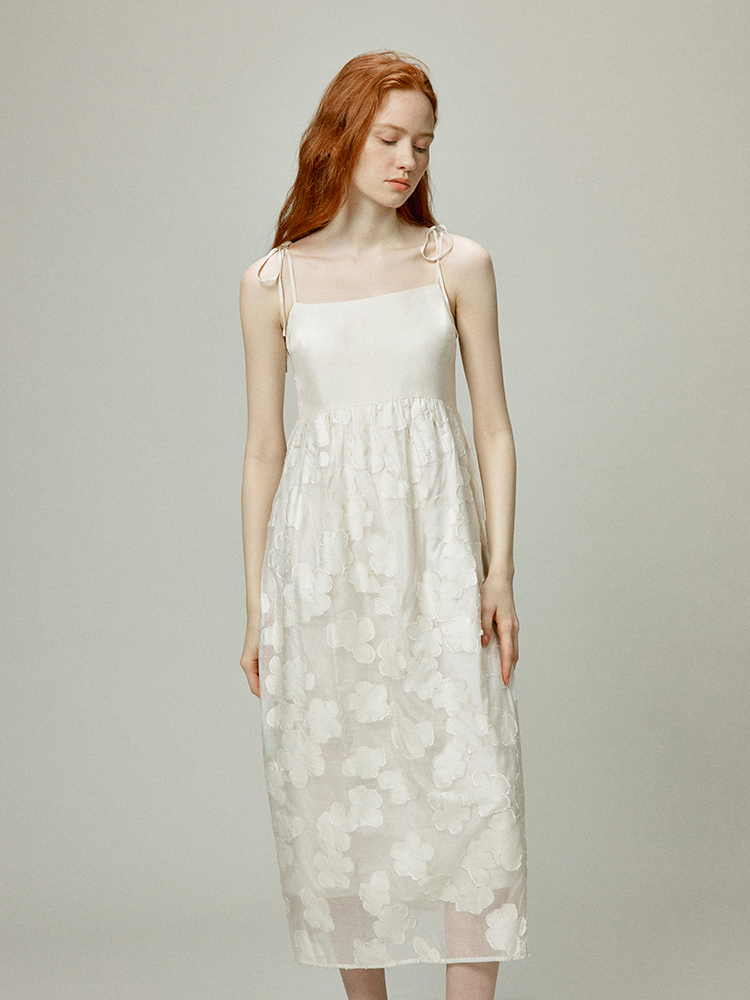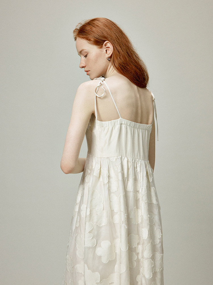 ForPoem 现货 24/SS夏季花朵系列正反两穿醋酸肌理花朵抹胸花苞连衣裙