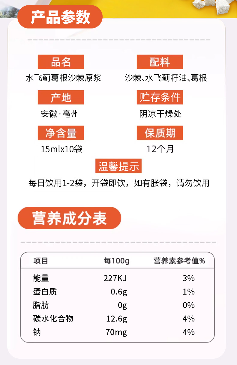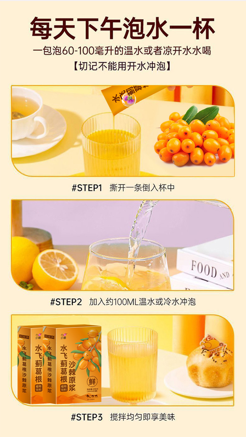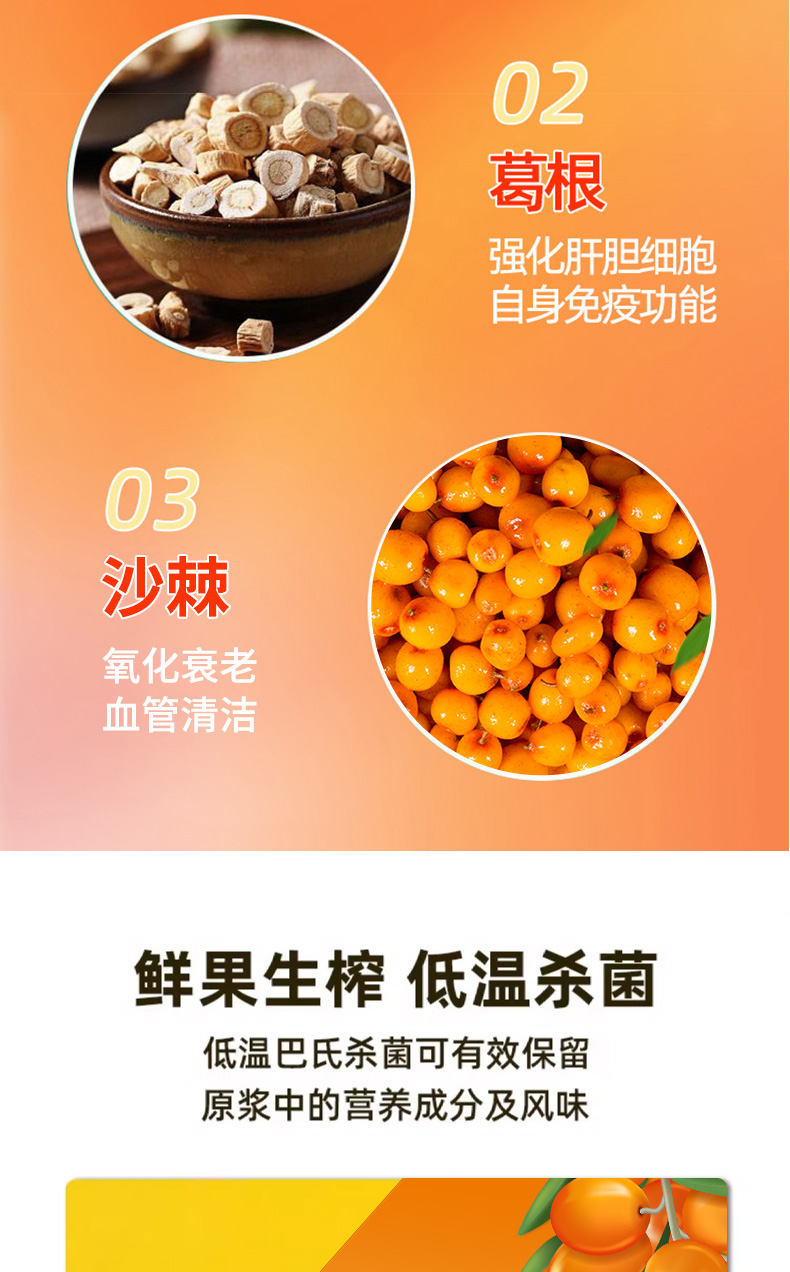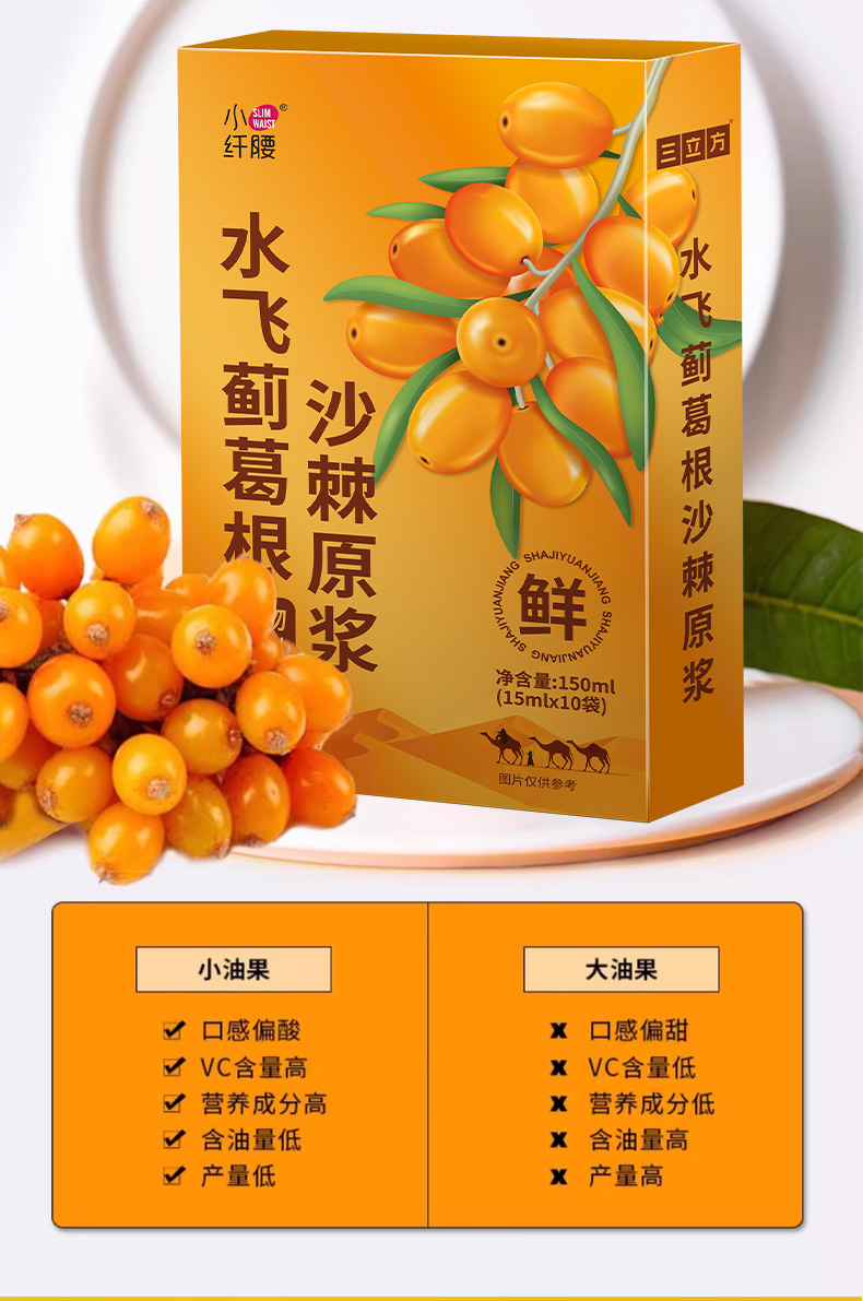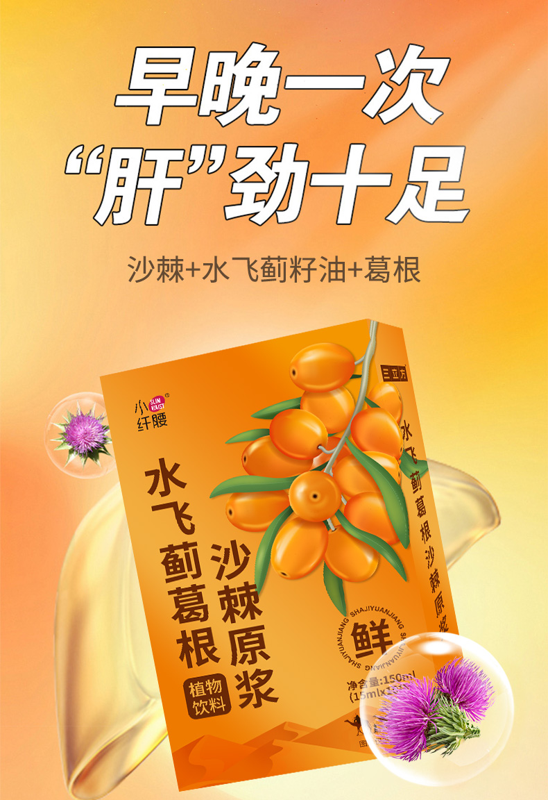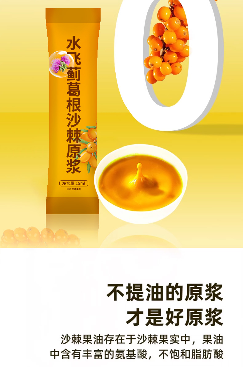 【鲜果鲜榨】小纤腰 水飞蓟葛根沙棘原浆 15ml*10袋/盒 精选沙棘鲜果鲜榨