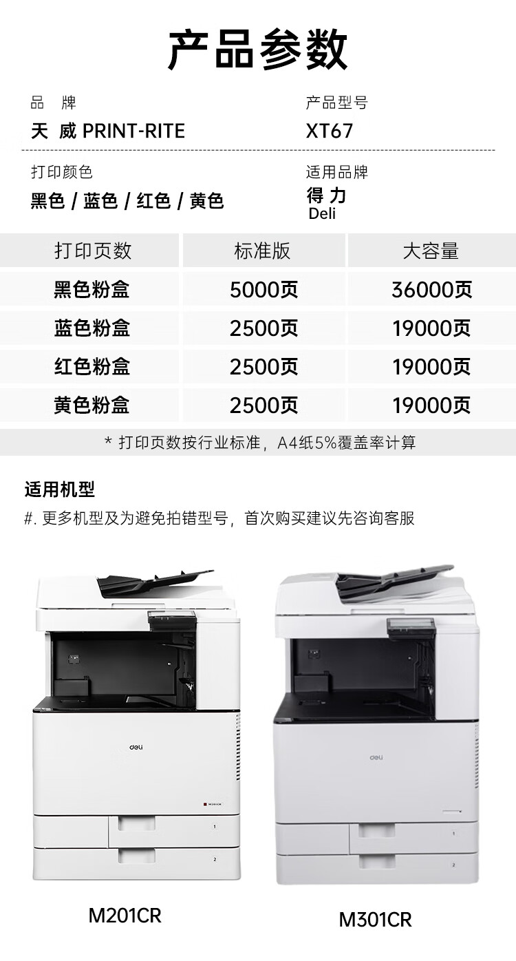 天威XT67粉盒 适用得力复印机耗材M201CR M301CR 硒鼓墨粉盒XT67Ke粉盒XT67打印机晒鼓 XT67Y 大容量黄色墨粉