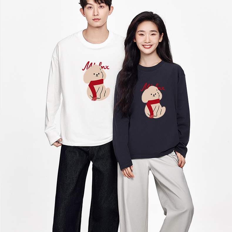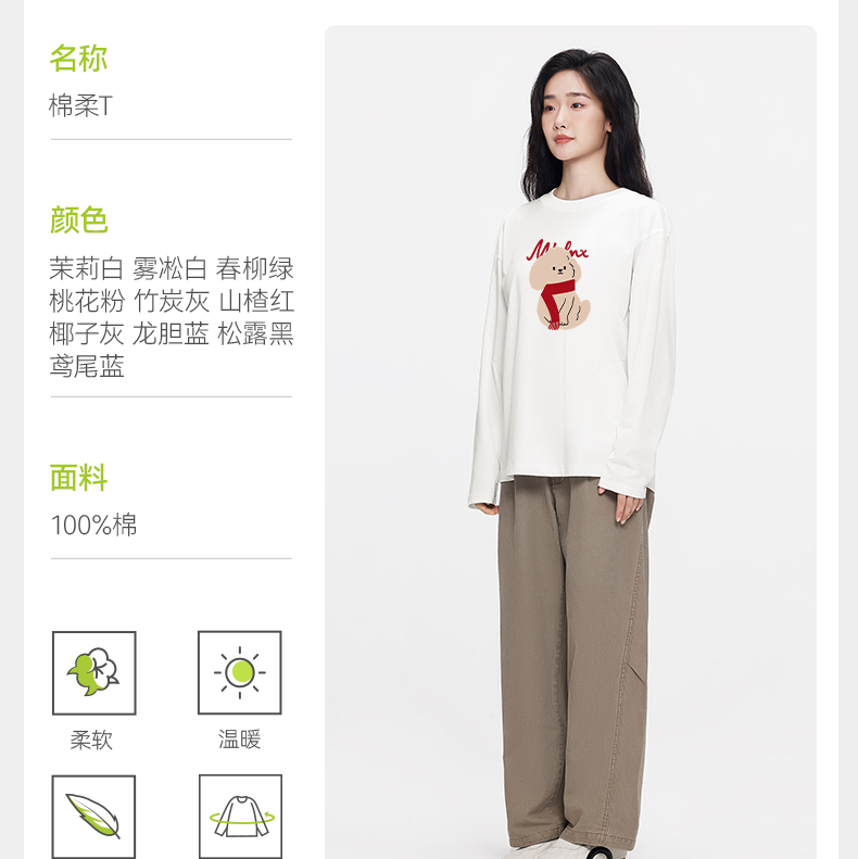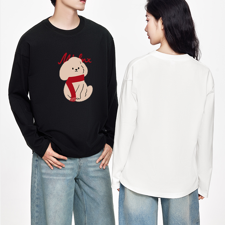 「棉的美学」萌趣咖啡狗长袖T恤2025新款纯棉内搭休闲慵懒百搭上衣