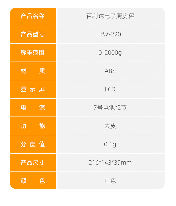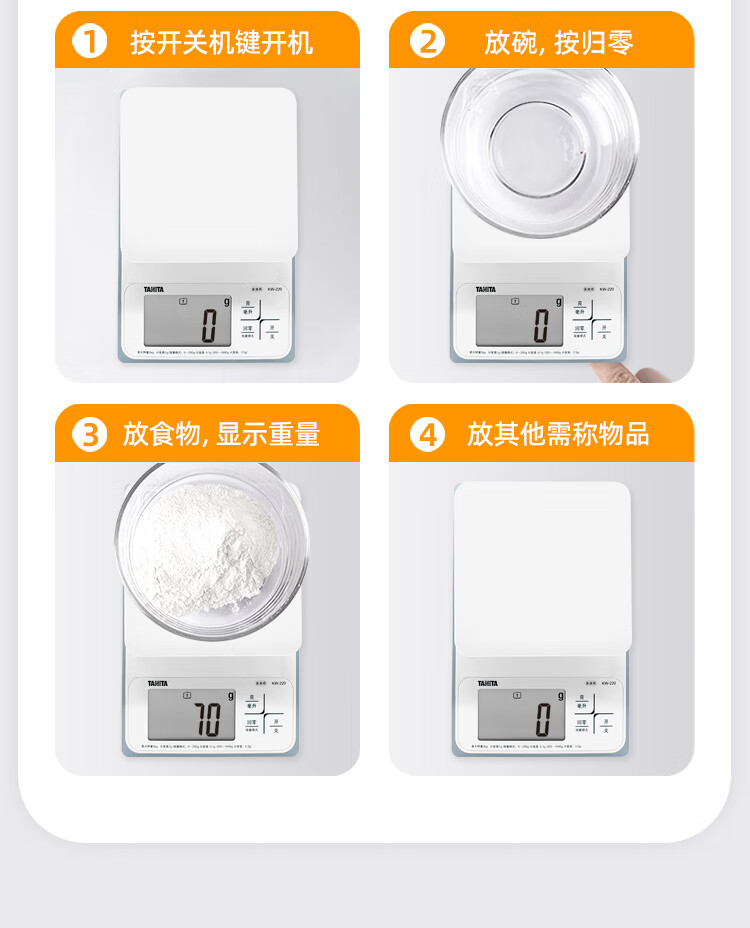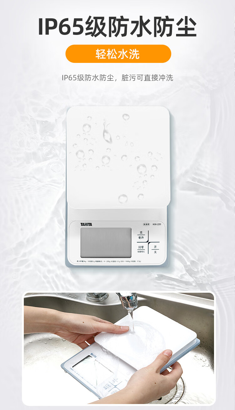 百利达(TANITA) KW-220家用厨房秤 日本品牌电子秤克称 白色_MW