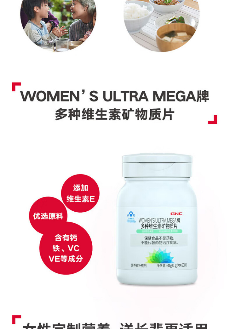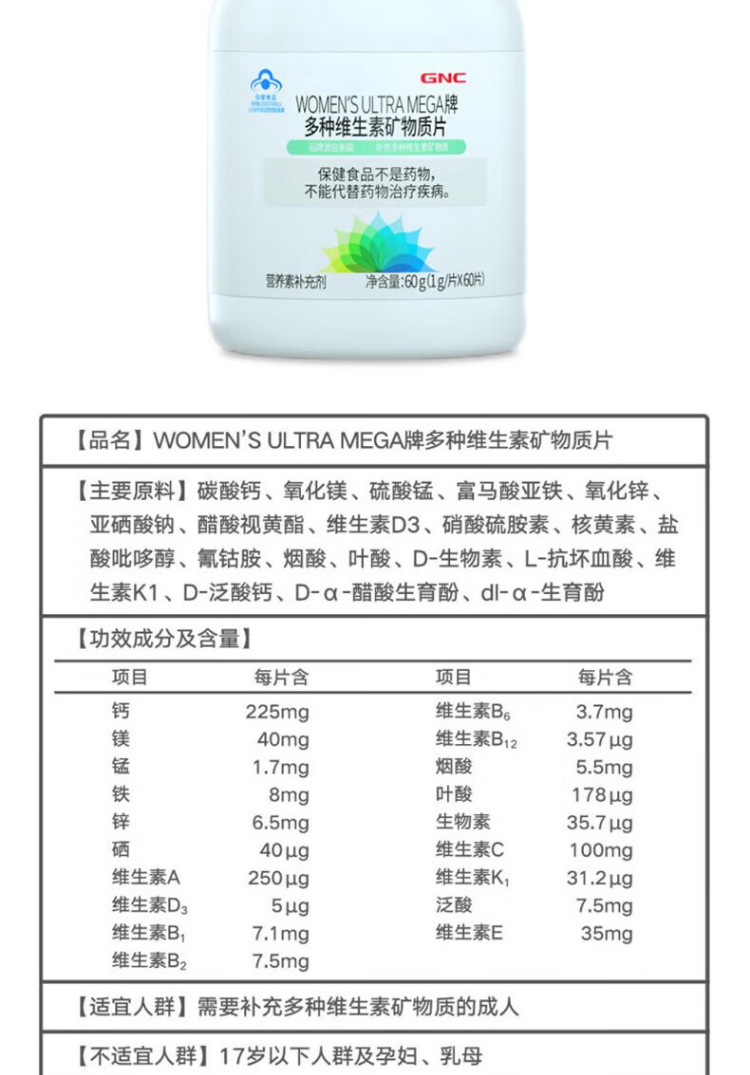 【79元选2件】GNC女士多种维生素矿物质片【有效期至26.8.15】