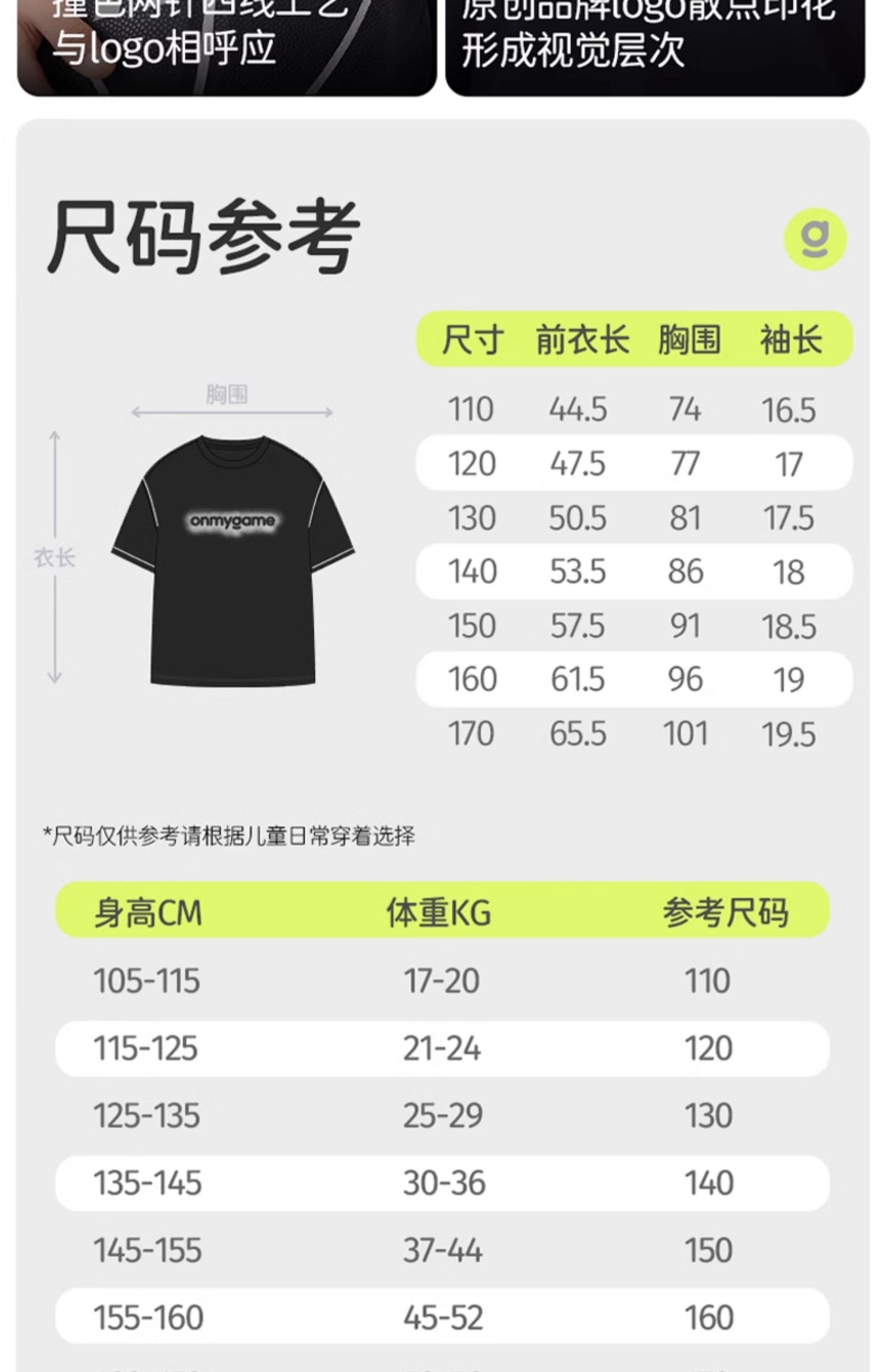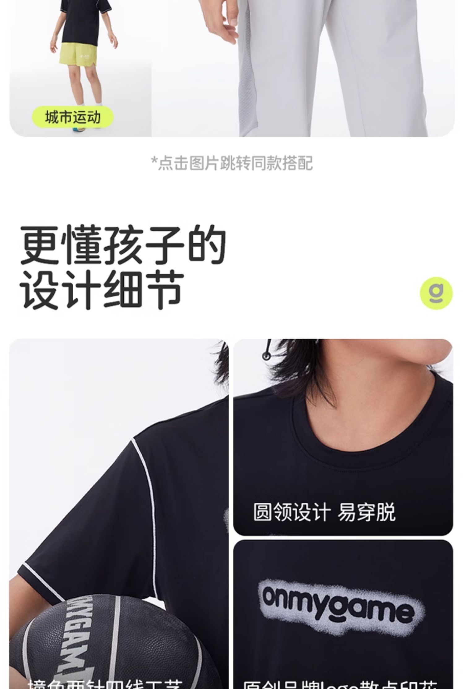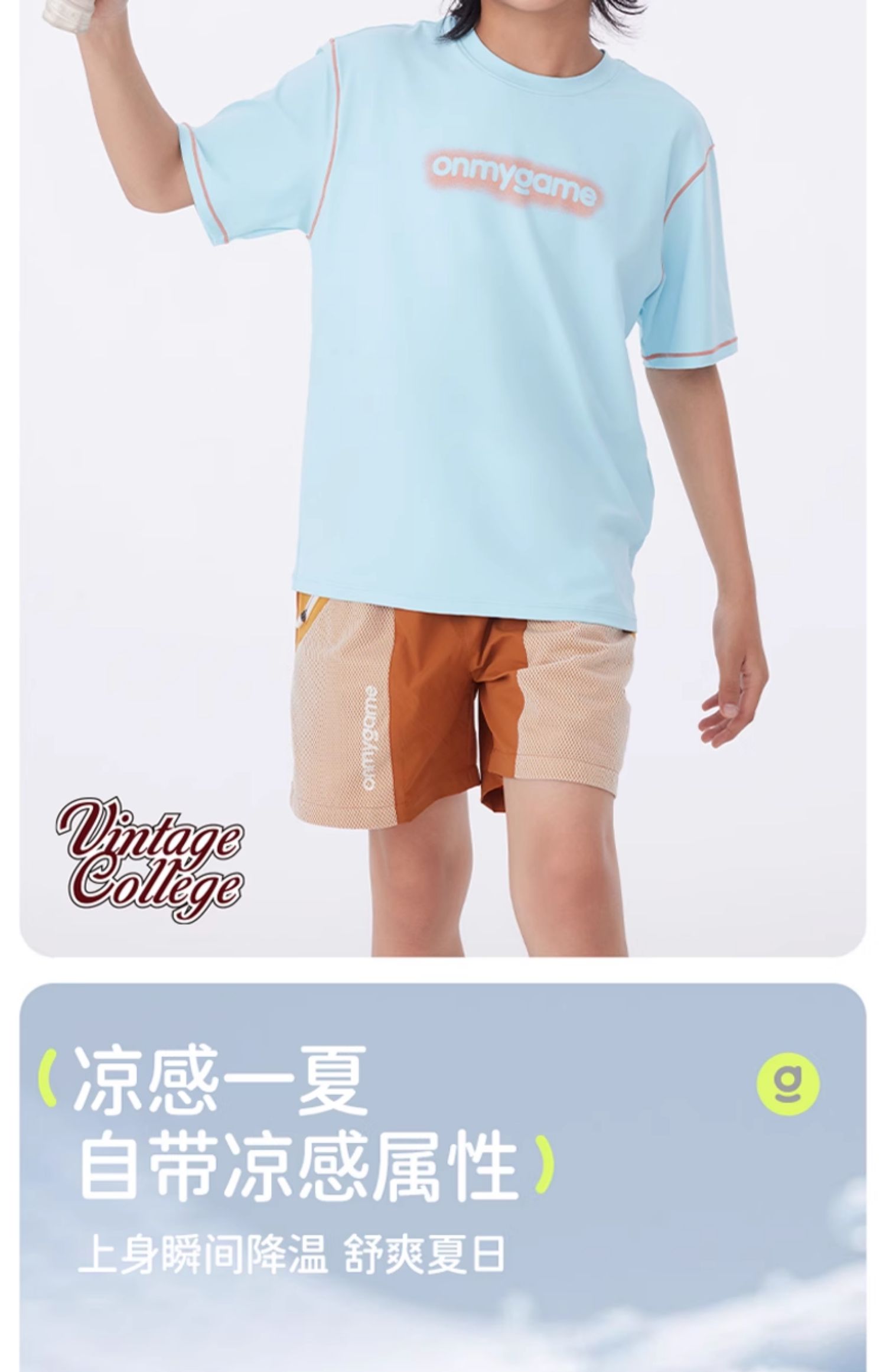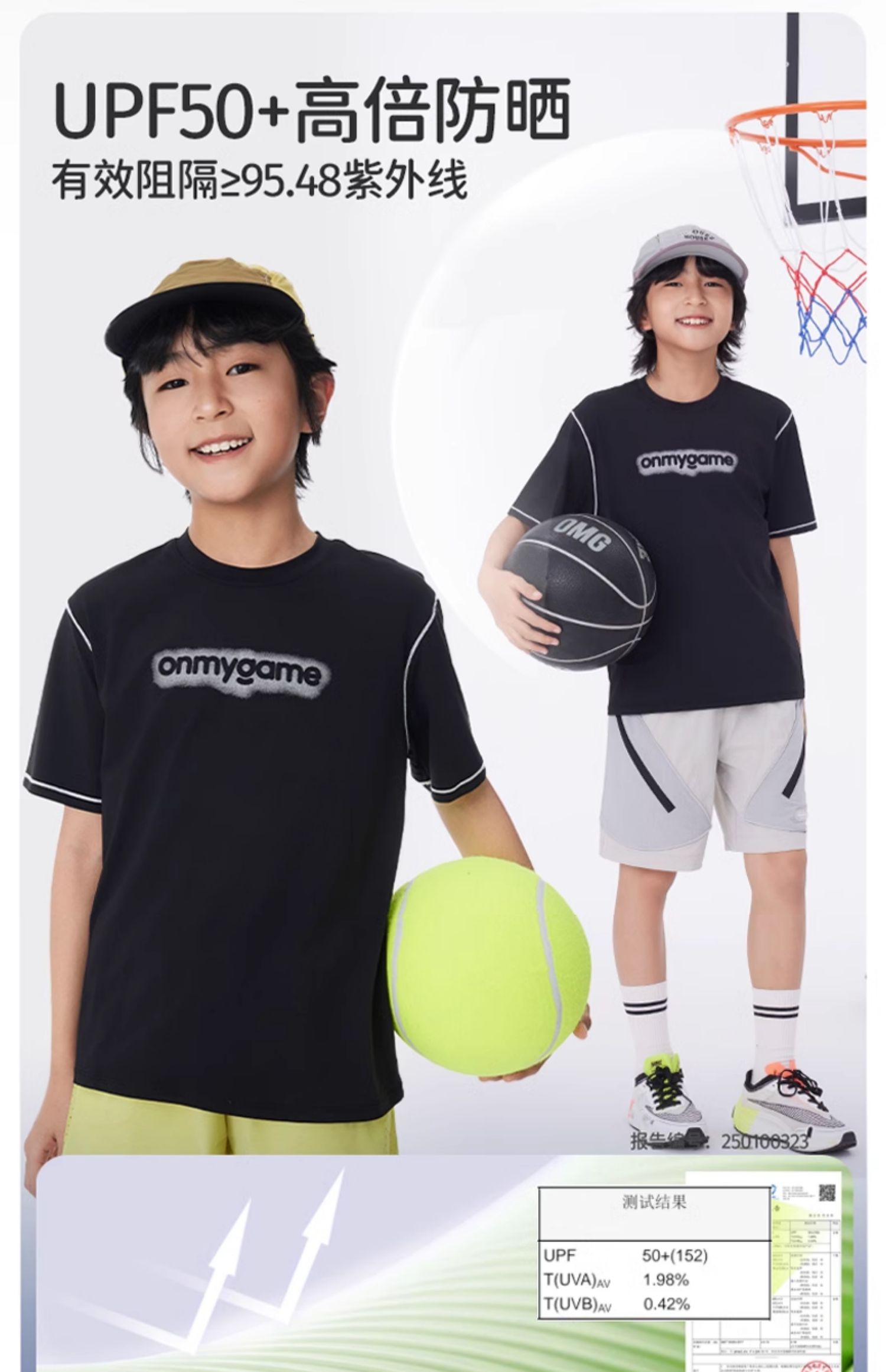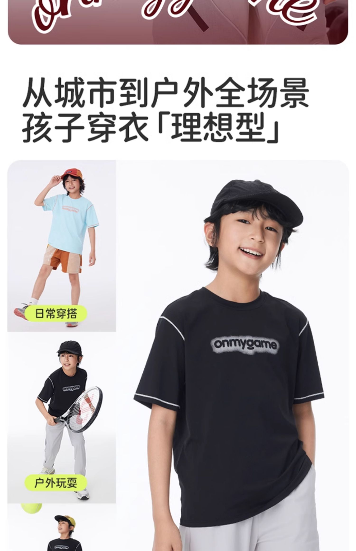 onmygame【防晒速干】男童短袖吸湿排汗儿童T恤凉感2025夏季新款