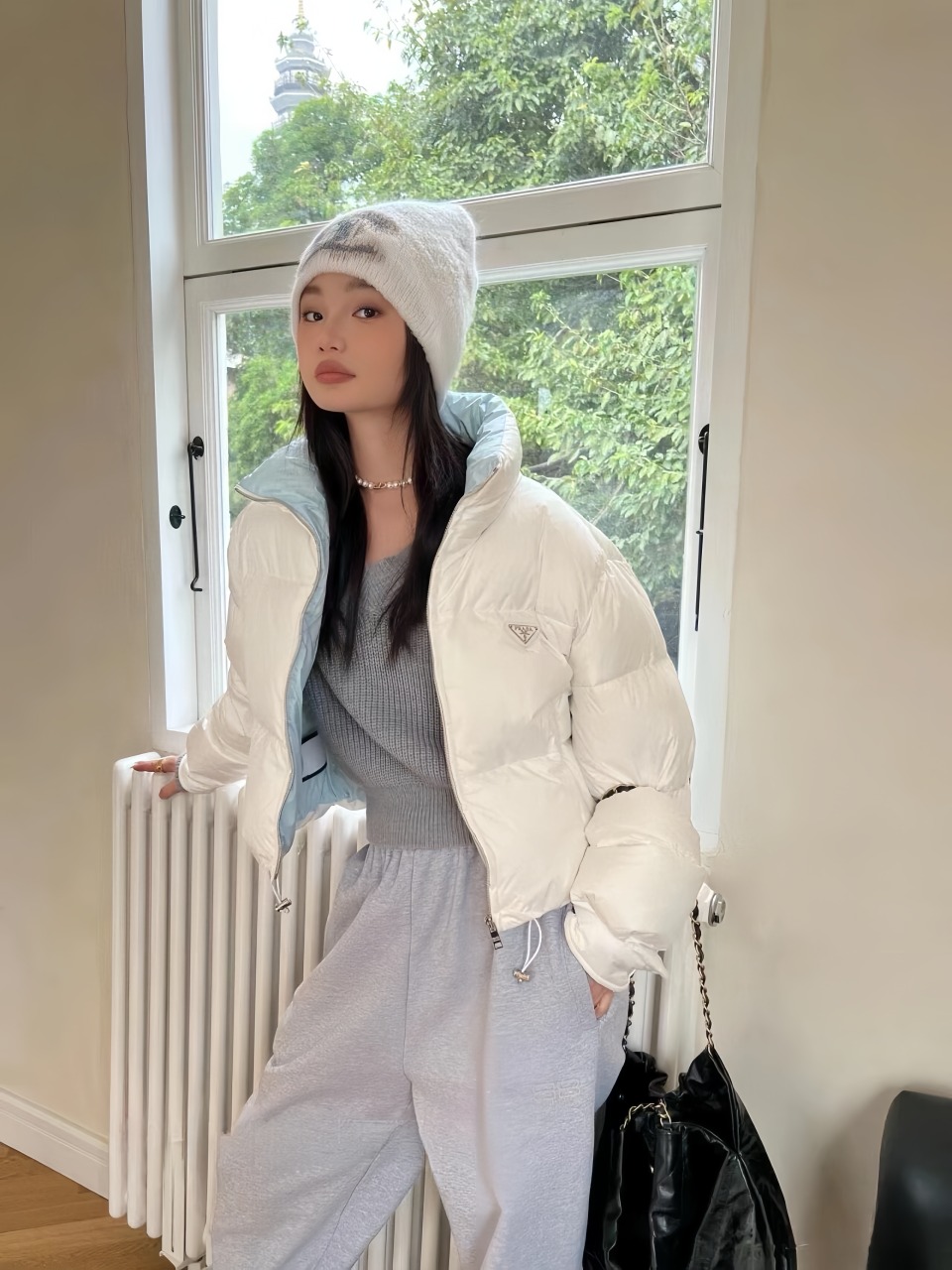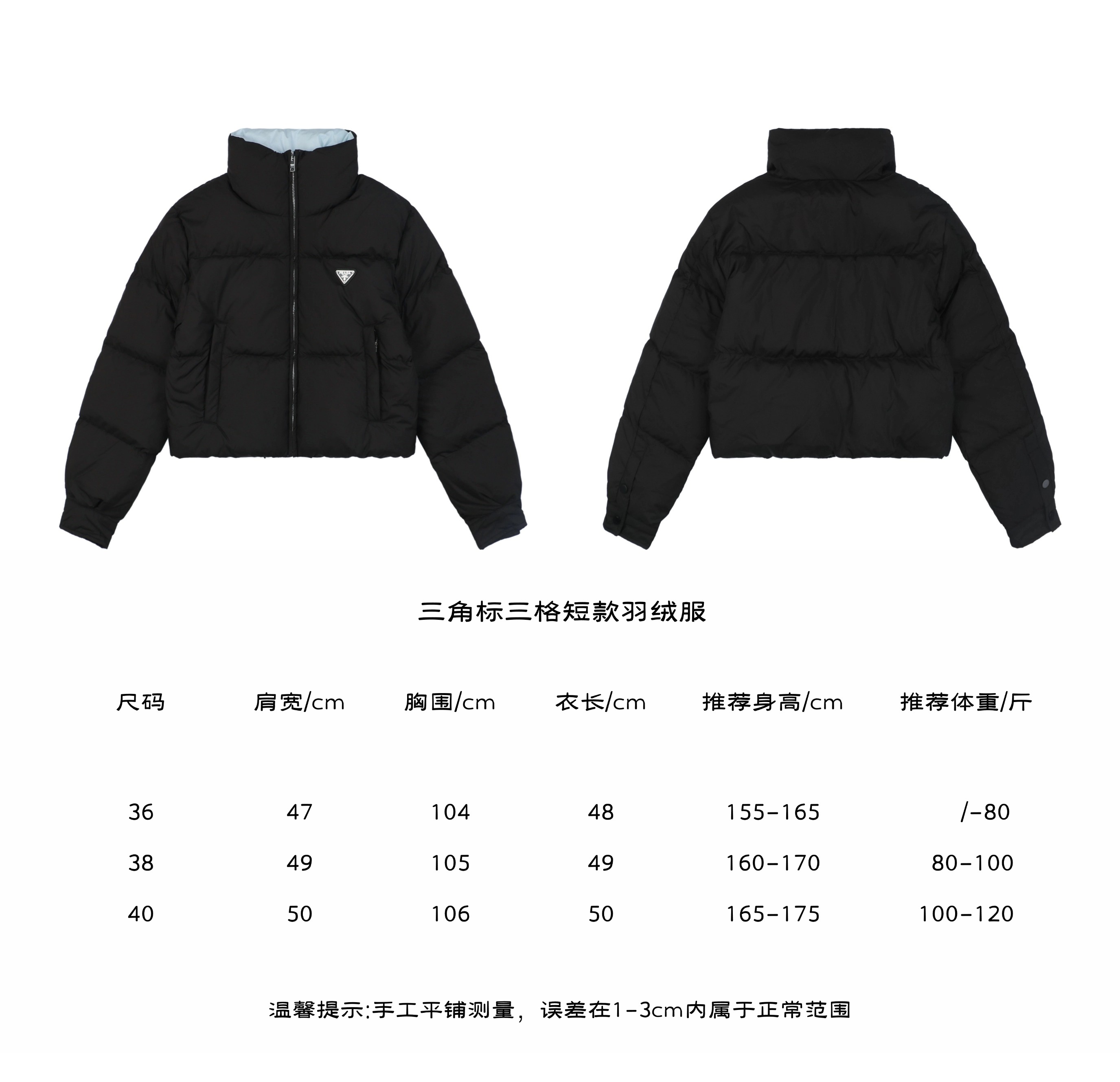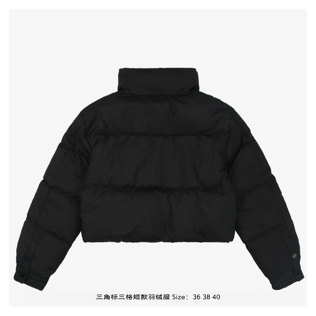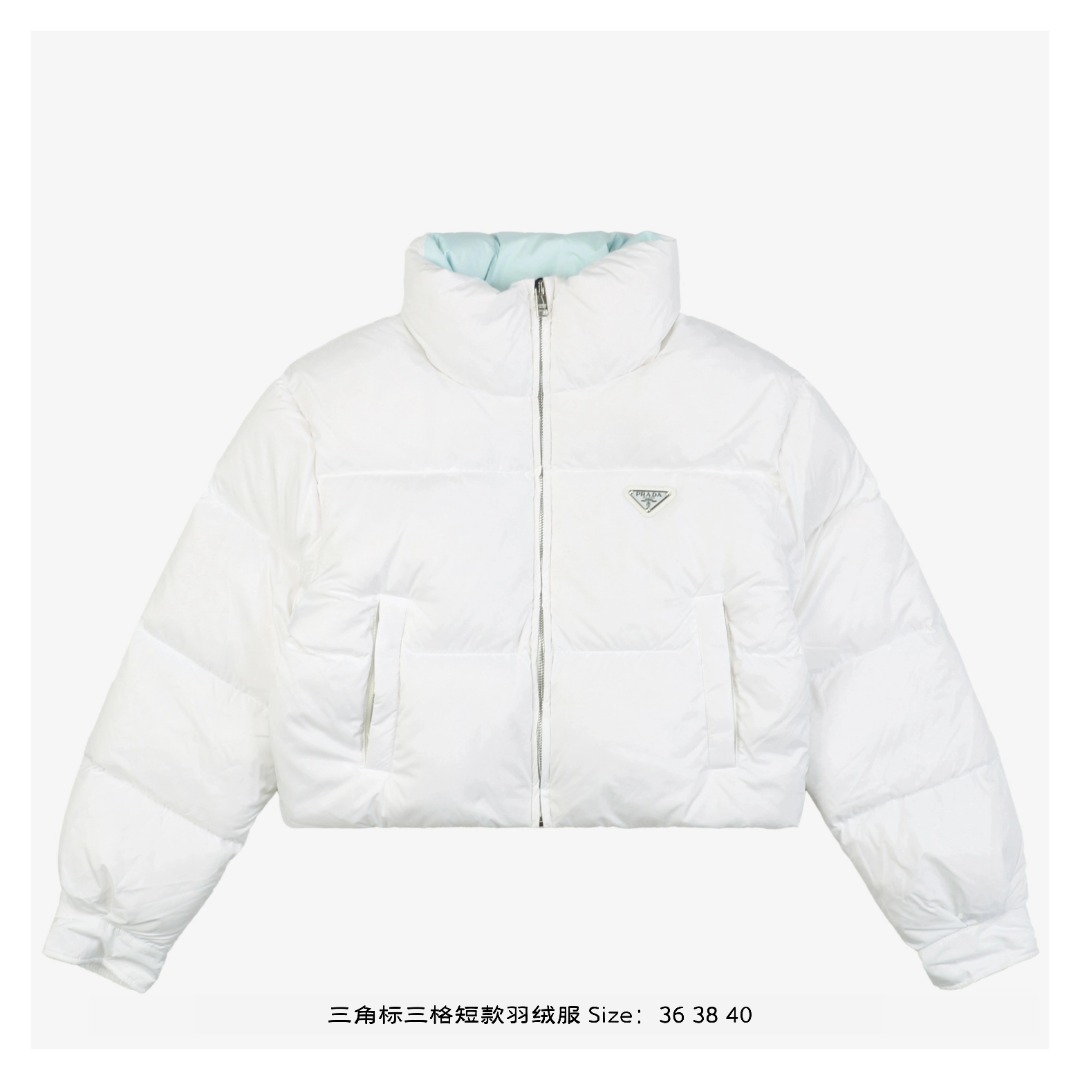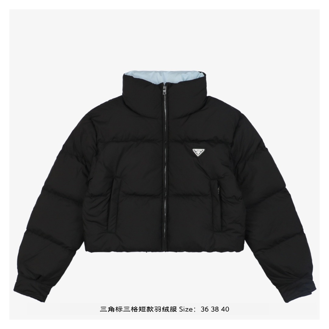 Prada/普拉达 24Fw 三角标三格短款羽绒服 满满的高级观感,简单而不简约,无论是面料材质上还是整体轮廓,都兼备时尚造型感和良好的御寒功效,并带来舒适的穿着体验与感受,能凹造型又保暖,立体饱满,高实用度,内里填充白鸭绒,男女同款,定制辅料三标 Size:36 38 40