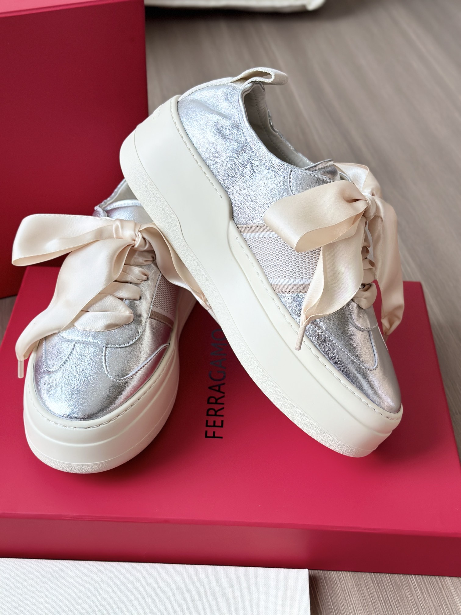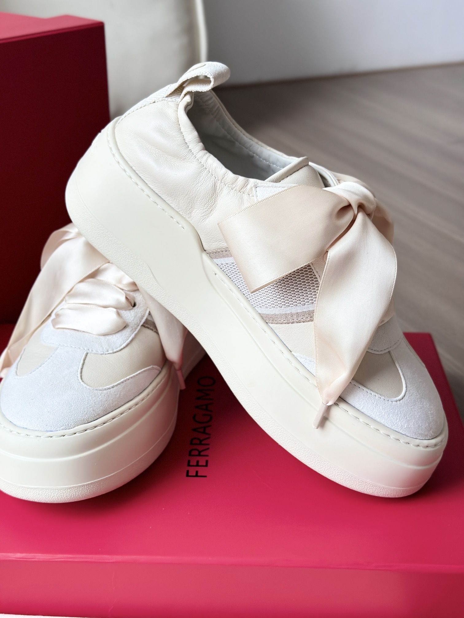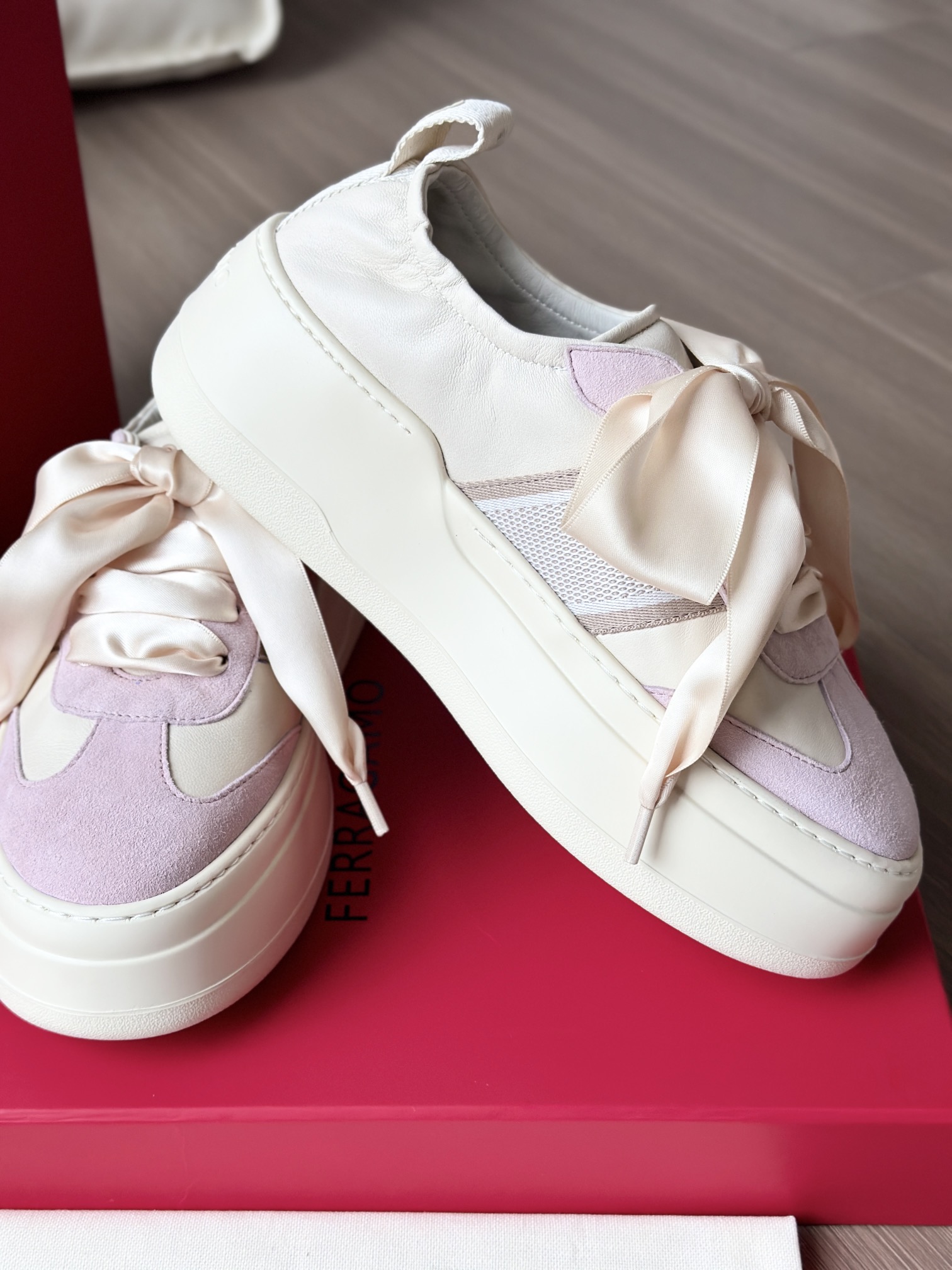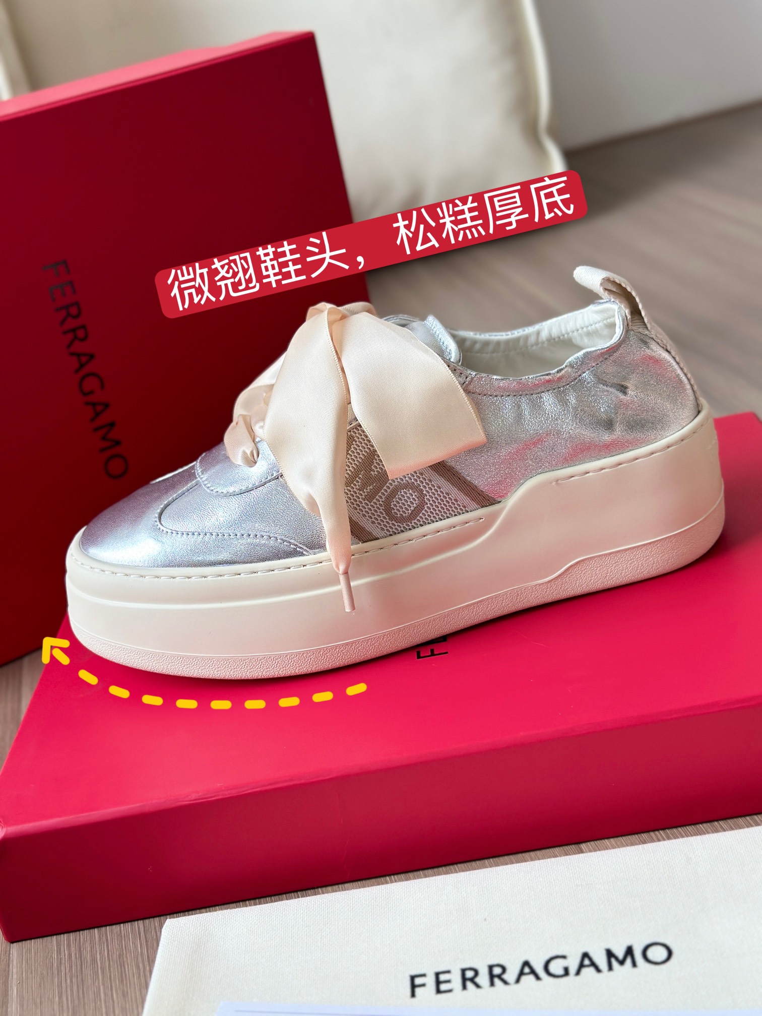 这个缎面蝴蝶结的设计真的好温柔! 菲拉今年的新款厚底休闲鞋,把好看和好穿凑齐了!