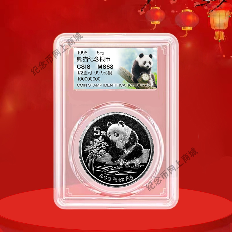 1996年1/2盎司熊猫银币 老精稀 封装评级带礼盒