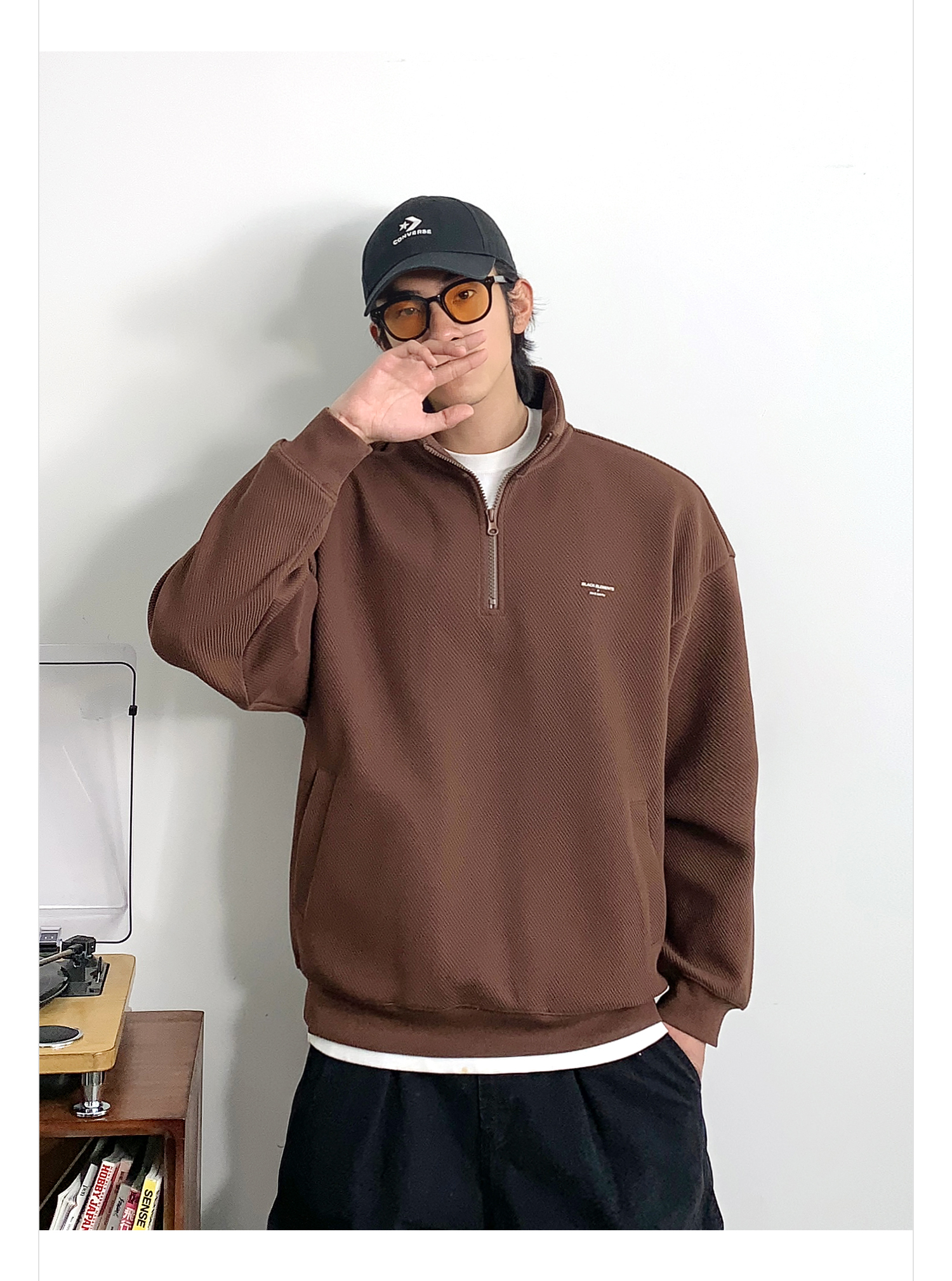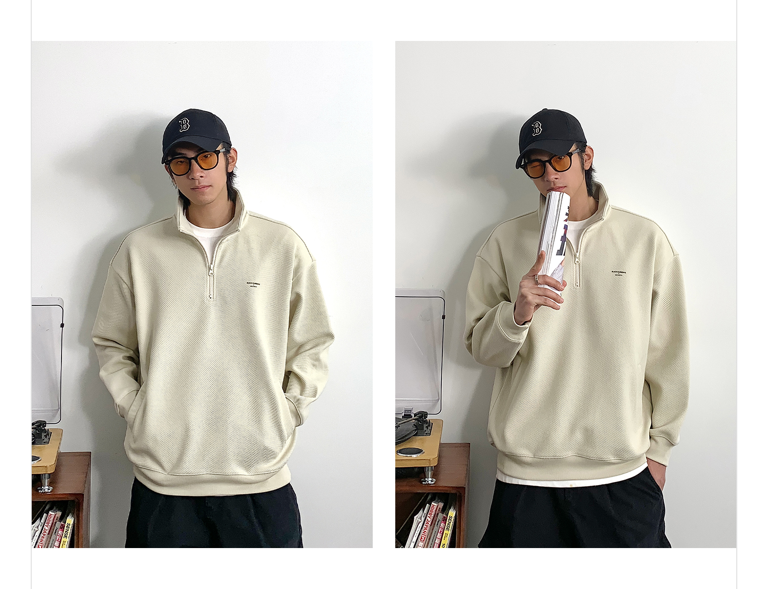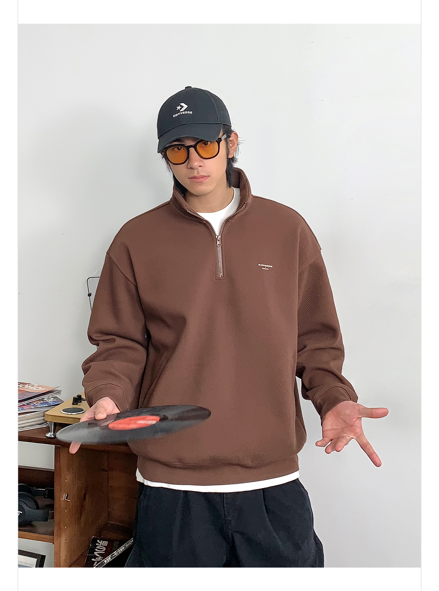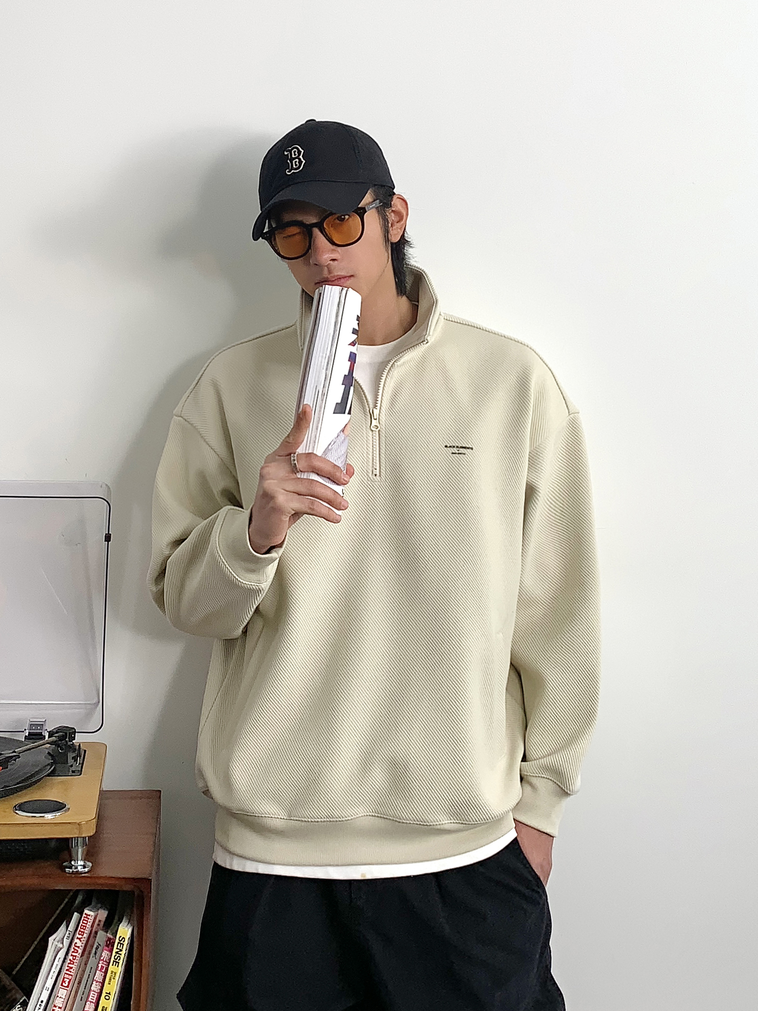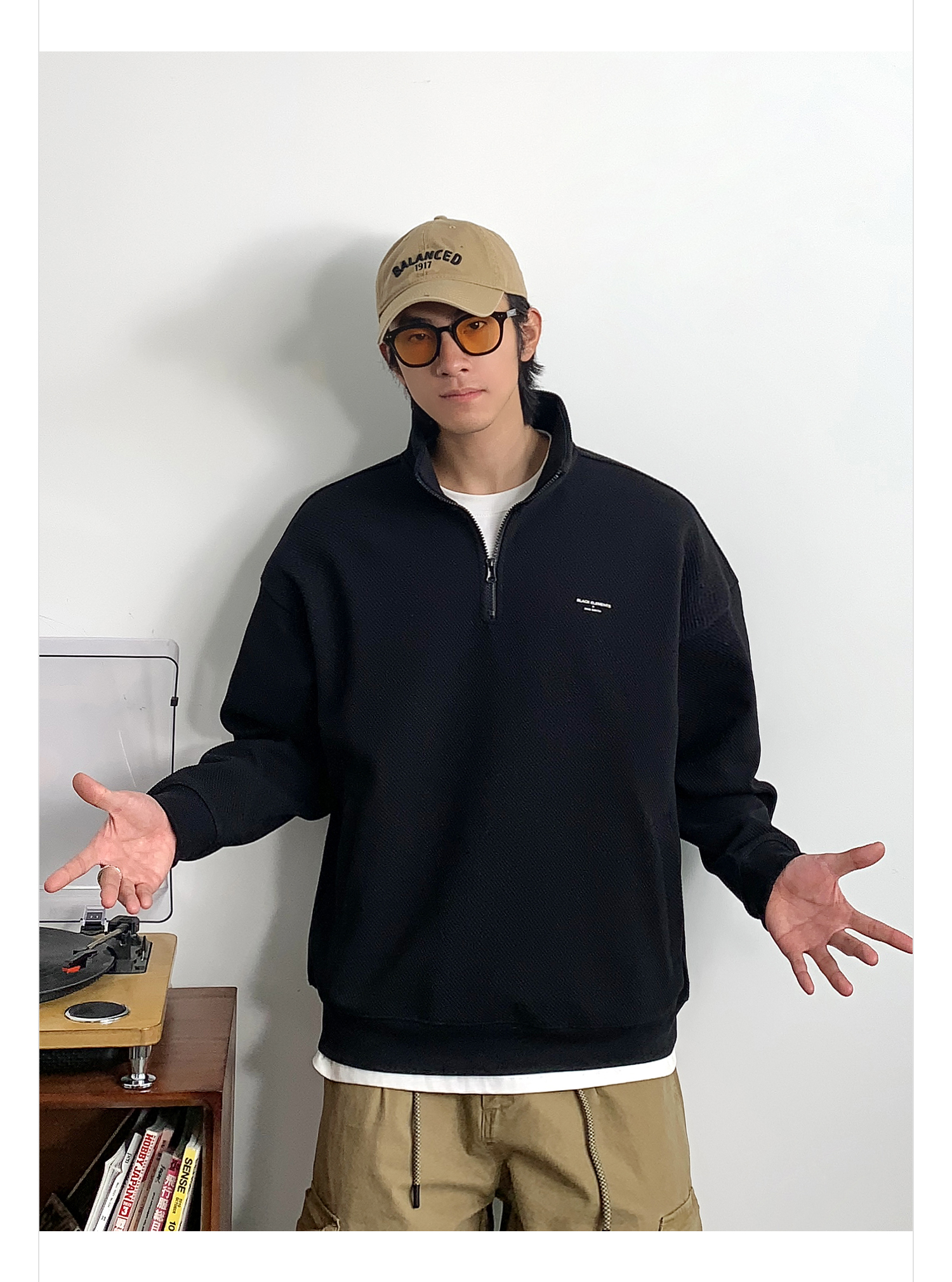 徐太浪春秋新款半高领拉链卫衣男纯色百搭高级感宽松套头长袖上衣