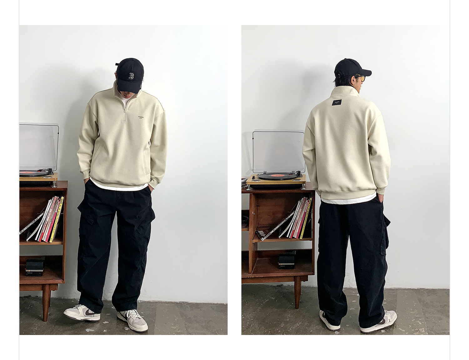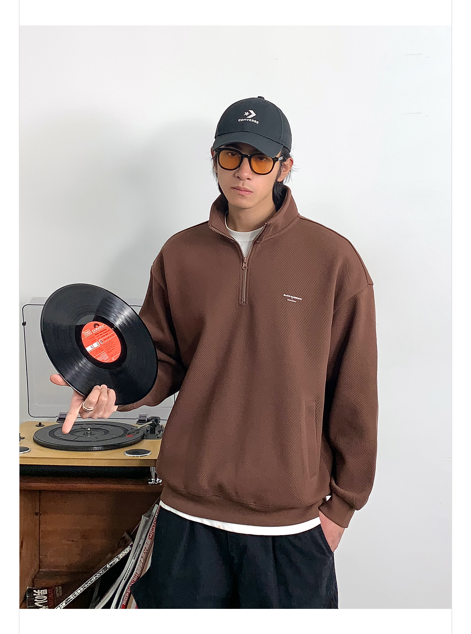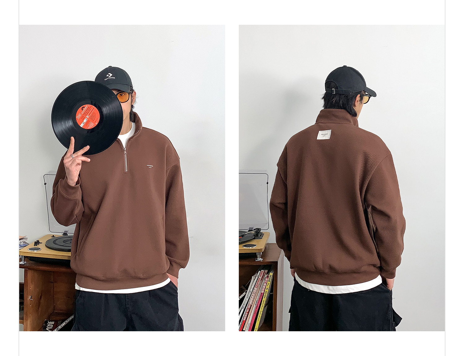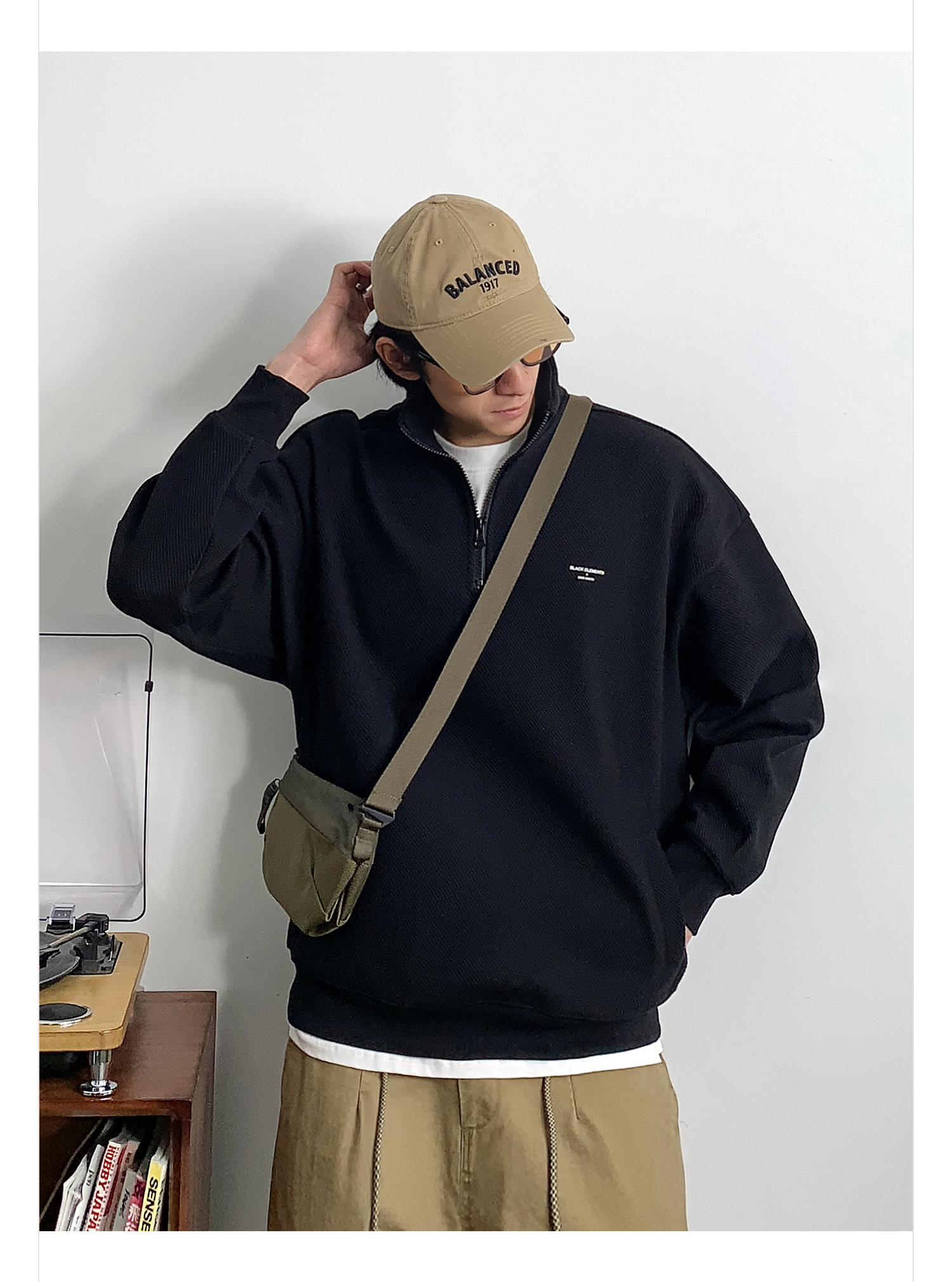 徐太浪春秋新款半高领拉链卫衣男纯色百搭高级感宽松套头长袖上衣