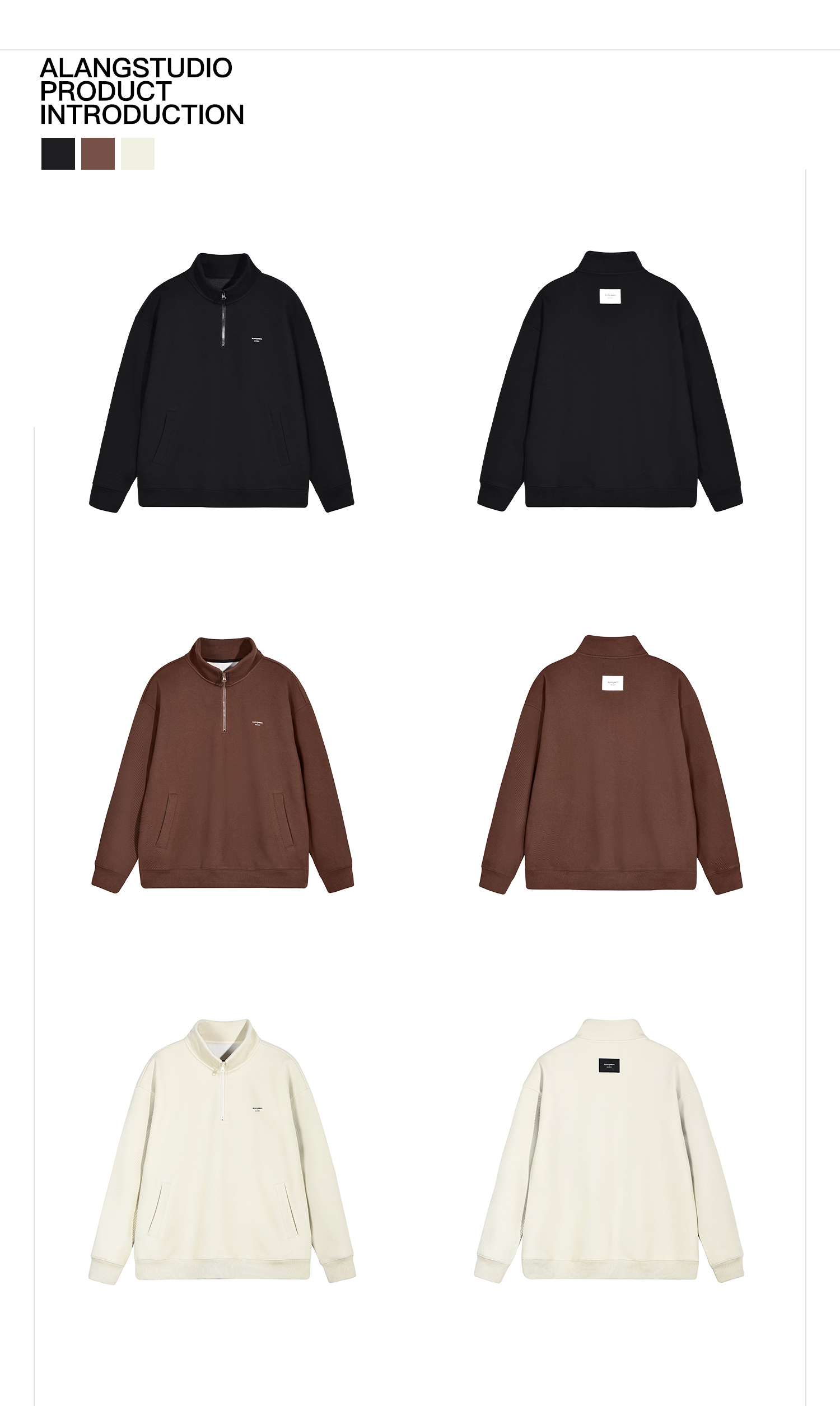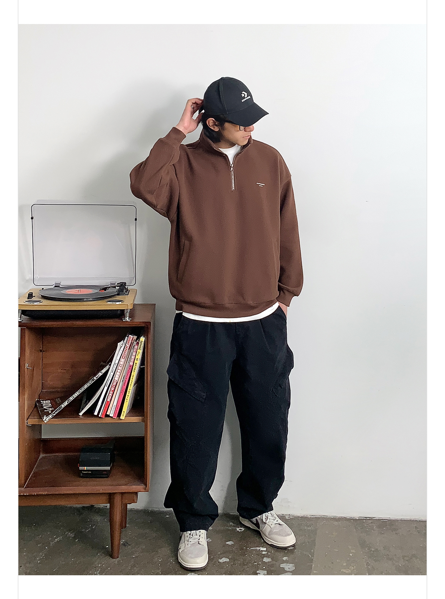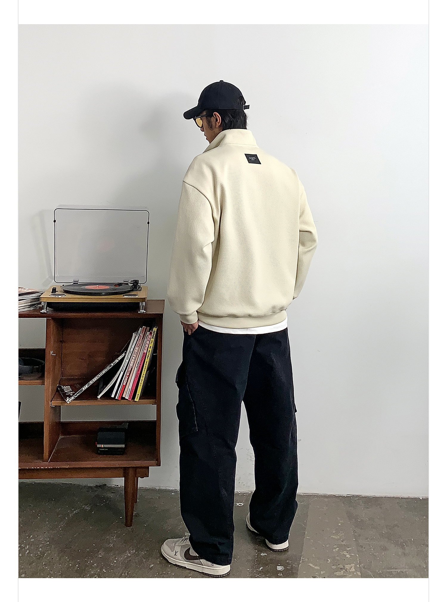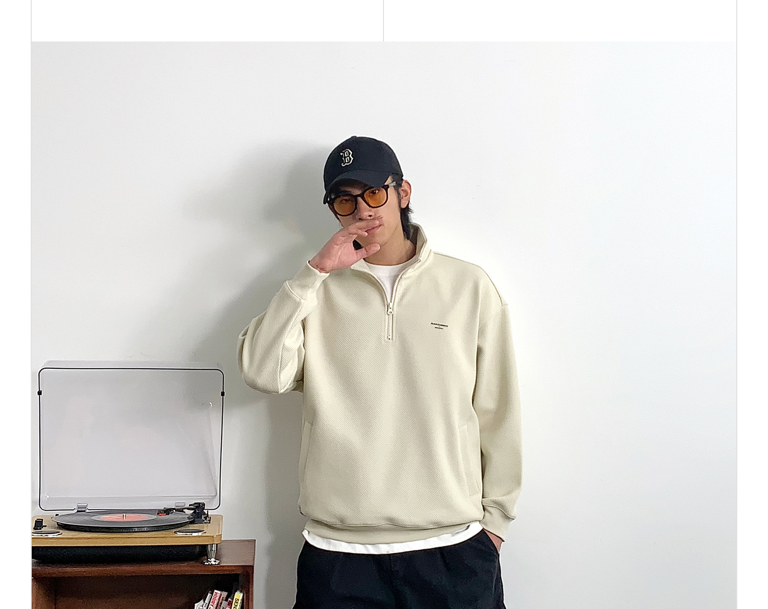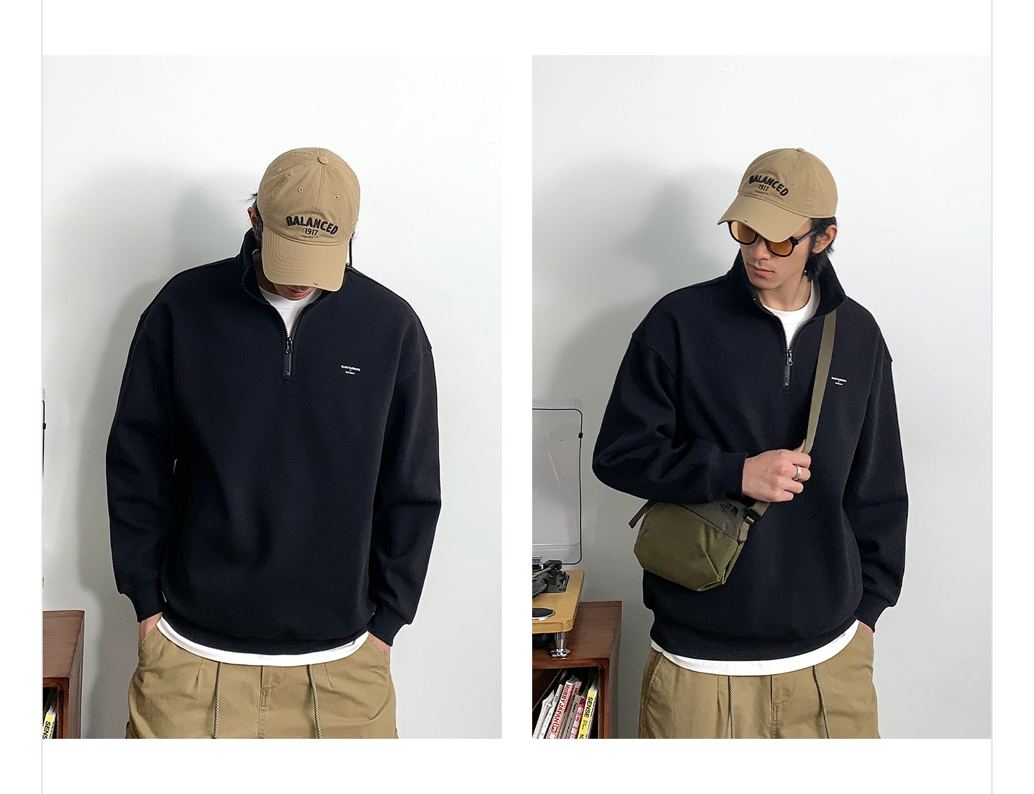 徐太浪春秋新款半高领拉链卫衣男纯色百搭高级感宽松套头长袖上衣