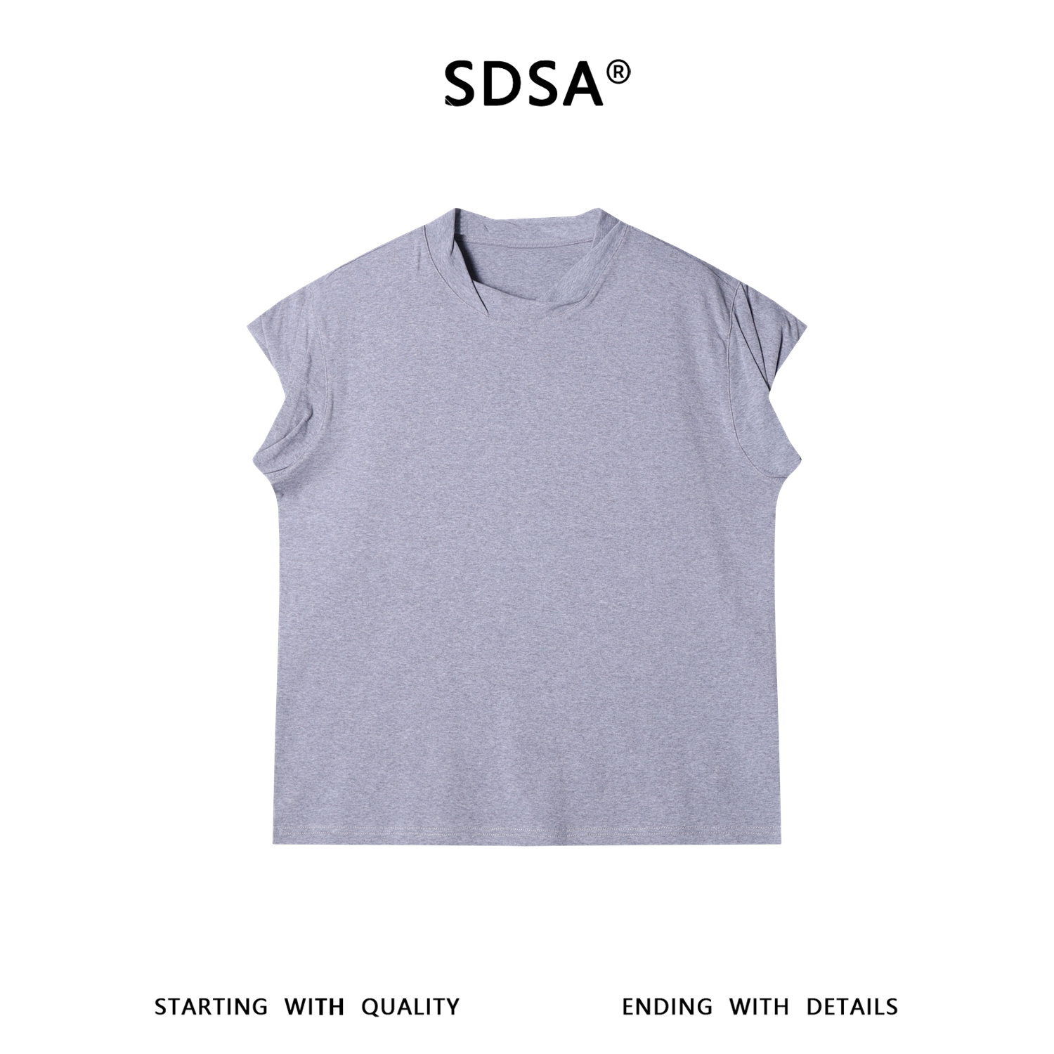 SDSA男装2026新款高贵轻奢潮牌纯色无袖立领短袖T恤百搭简约上衣