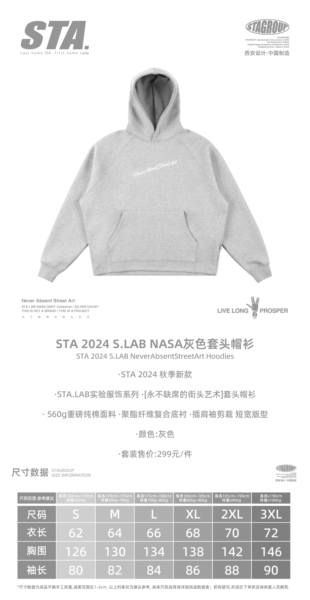 S.LAB | NASA系列灰色短宽插肩帽衫