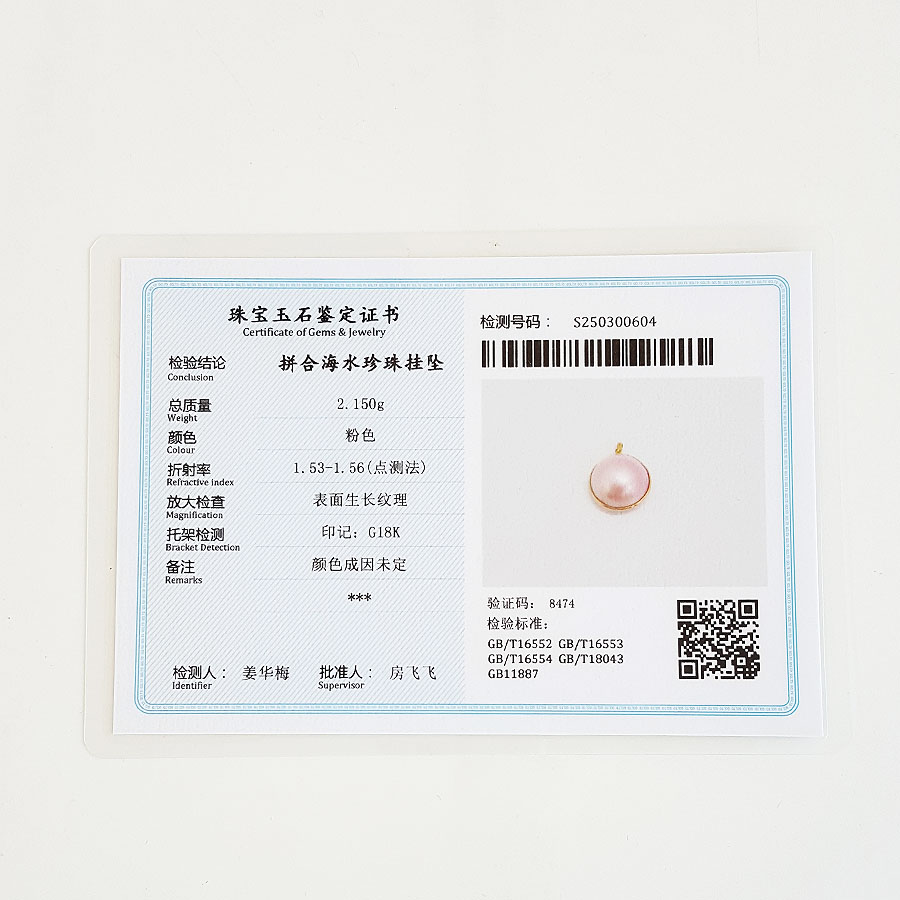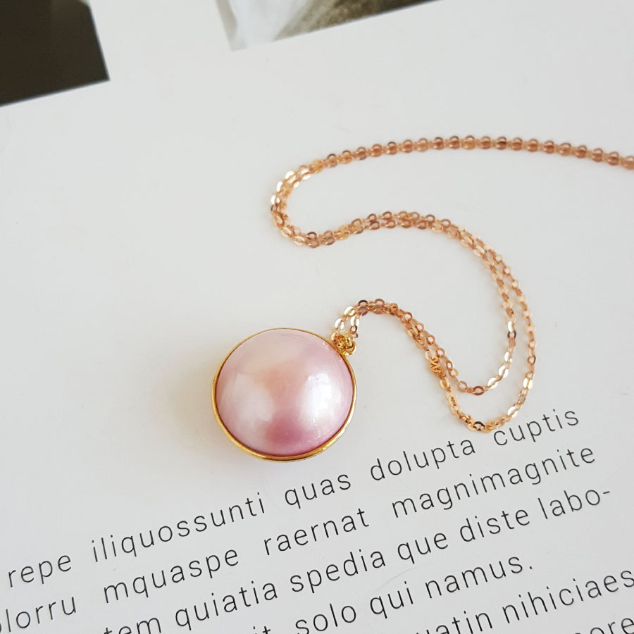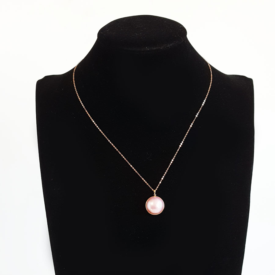 【天然正品】AU750黄金镶天然圆形马贝珠海水珍珠吊坠项链16.4*9.4*17.3MM(皆取最大值)女士现售价:1680!110325NJM24