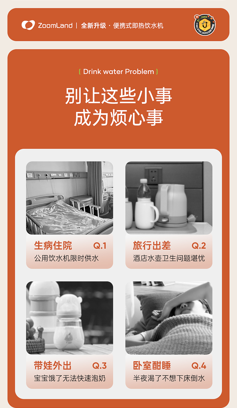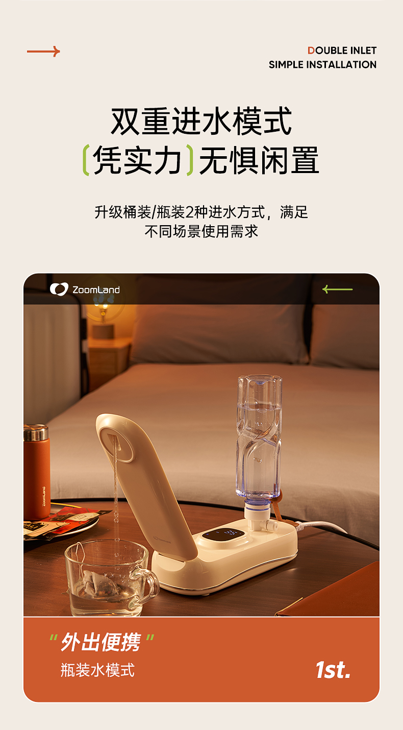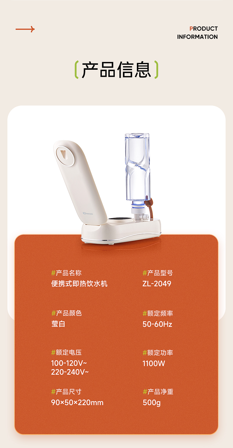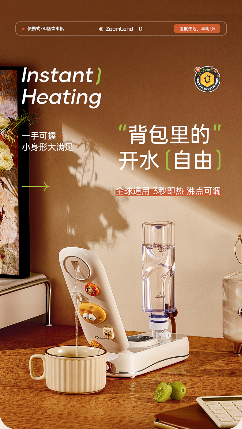 【森哥优选】卓朗 便携饮水机 小型即热 烧水壶可折叠办公室矿泉水加热器旅行卡片