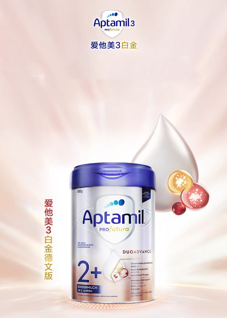 德国Aptamil爱他美婴幼儿配方奶粉白金版2+段800g2岁以上