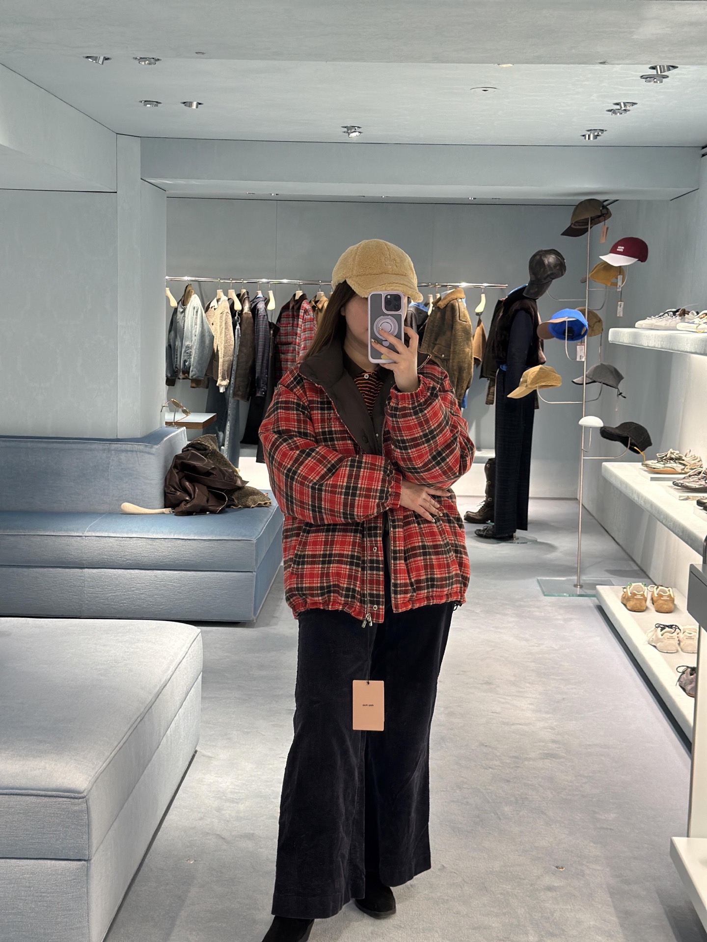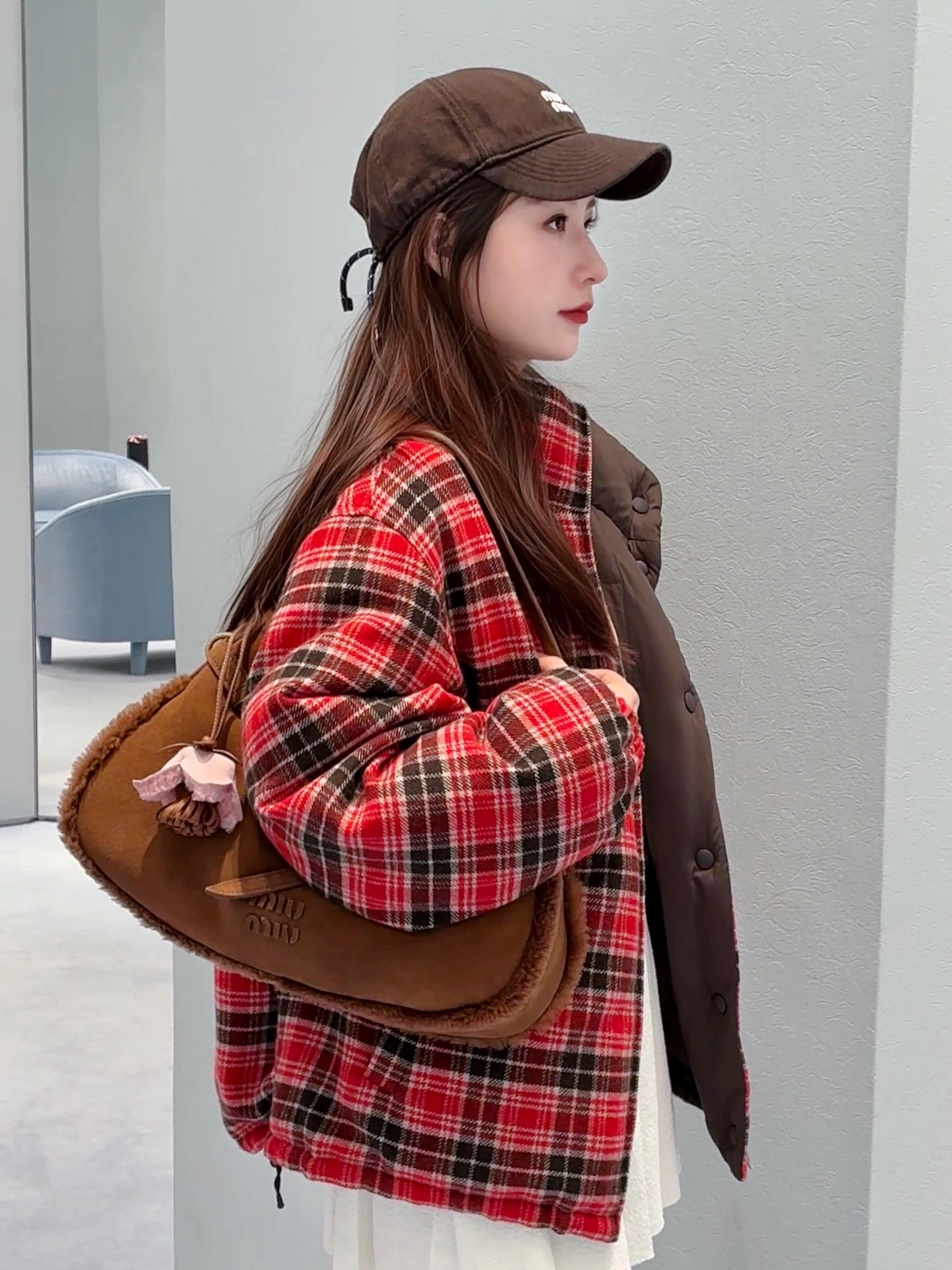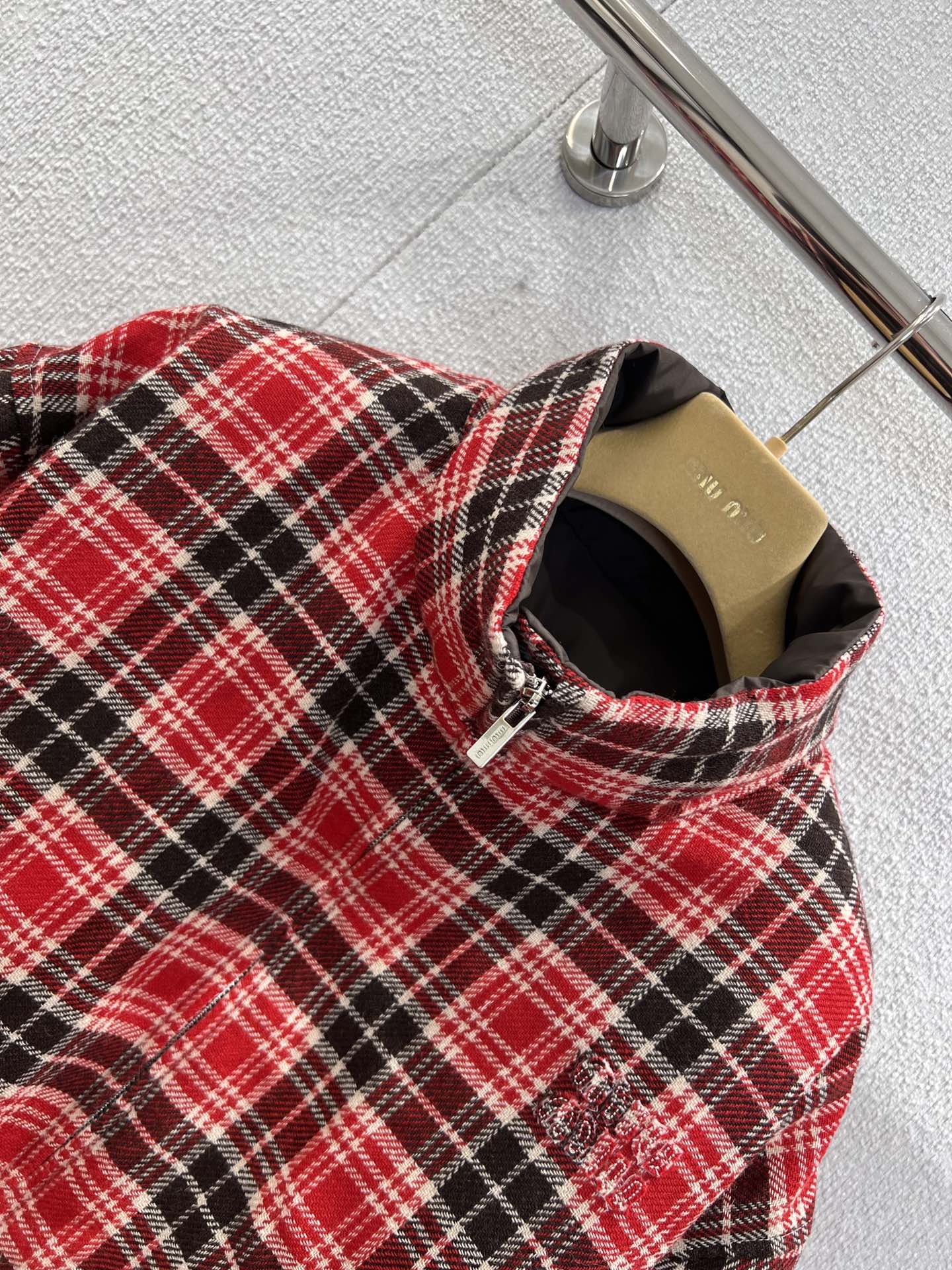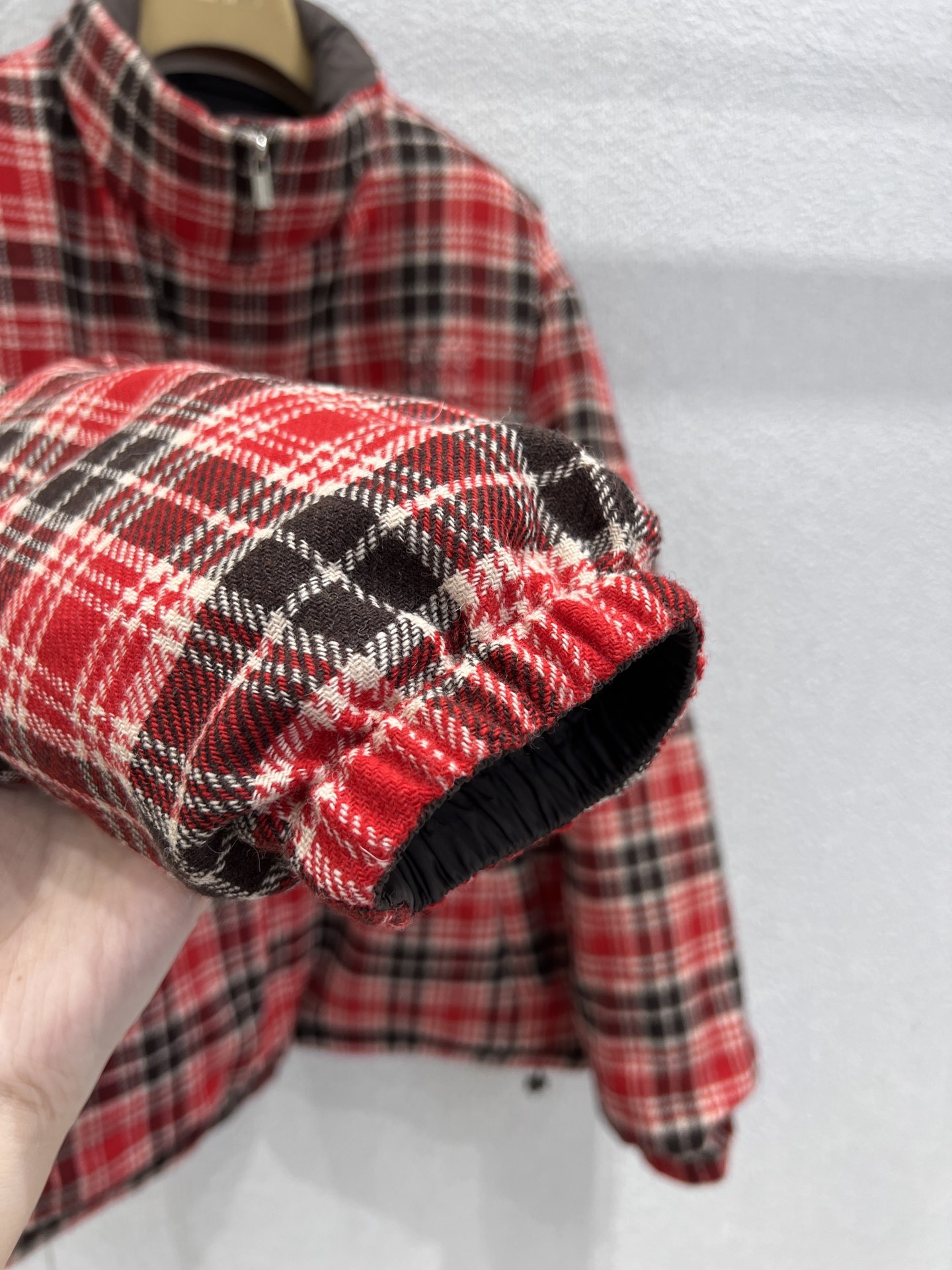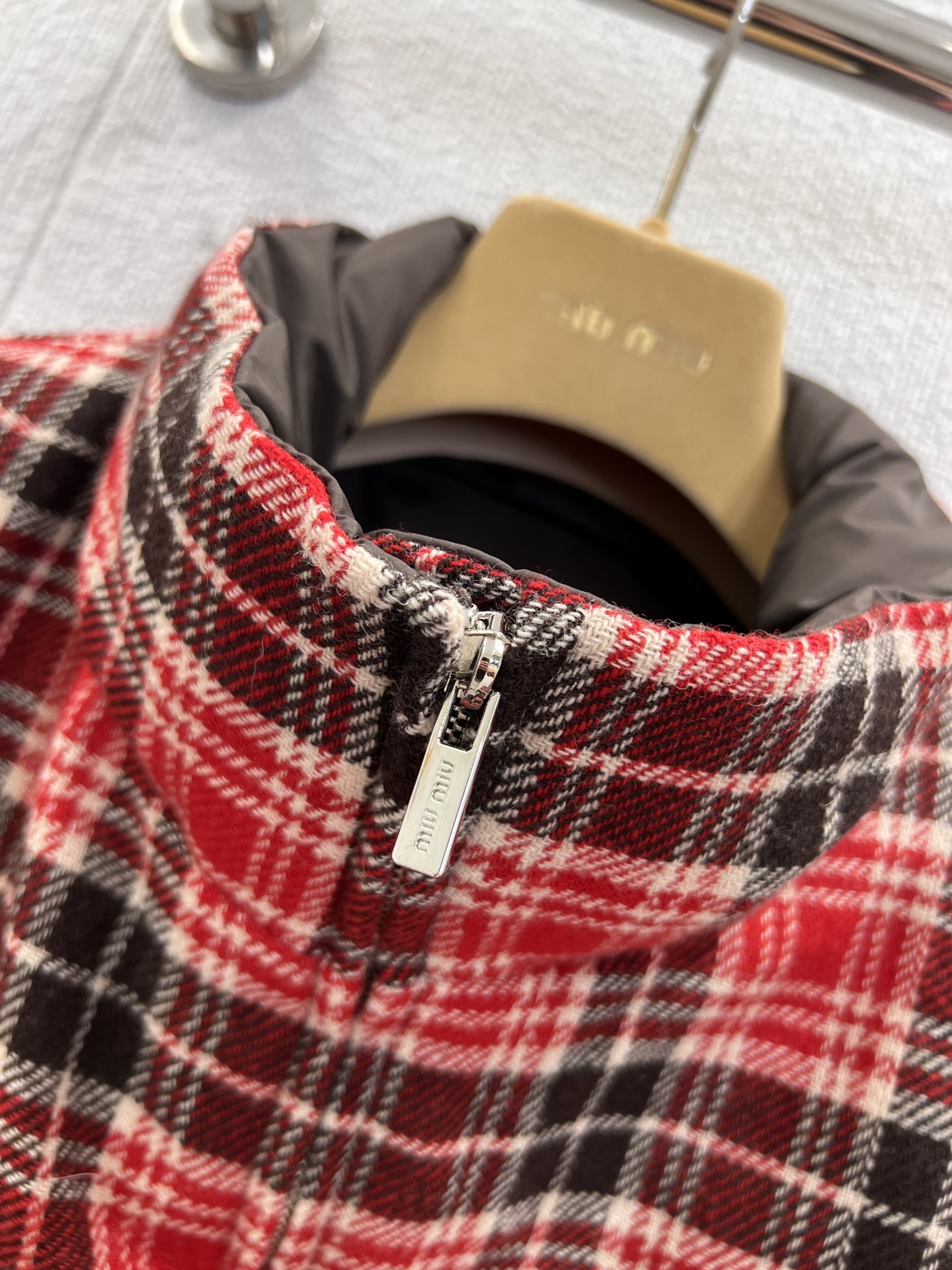 Miumi* 25FW秋冬新款 双面穿立领羽绒服外套丨⚠独家yb开发!顶级高版出品!以os宽松版型诠释随性慵懒的少女格调。一面是红黑羊毛格纹的复古英伦风情,一面是深棕哑光的低调奢华,双面切换解锁多元穿搭场景。立领设计兼顾保暖与利落线条,蓬松填充轻量又锁温,将miu系甜酷美学与秋冬实穿性完美融合,是衣橱的点睛之选。现货发售S/M/L