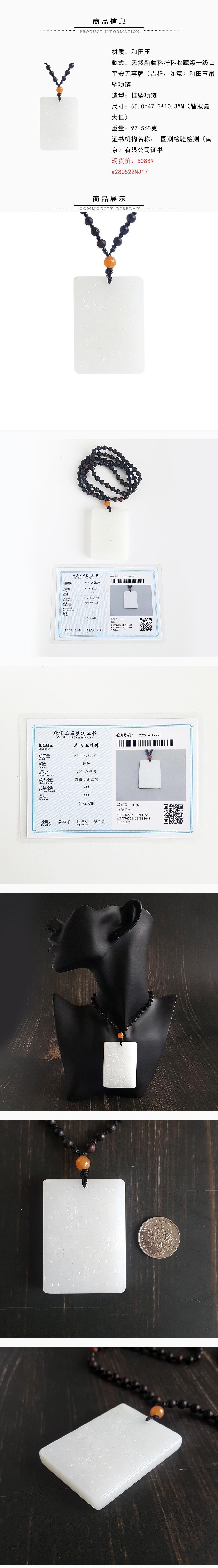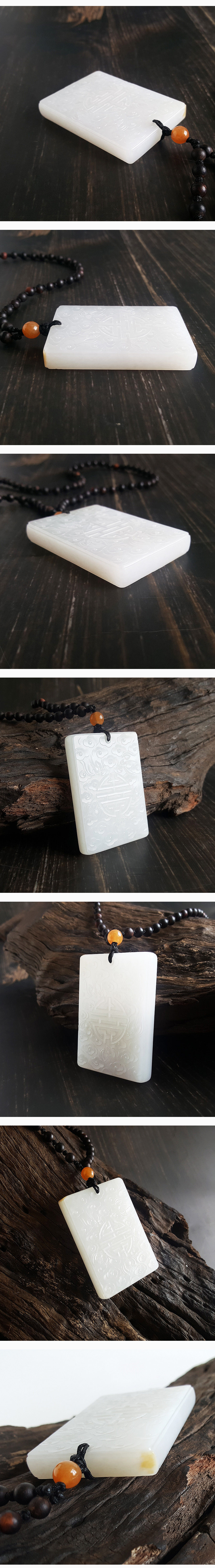 【天然正品】天然新疆料 籽料 收藏级 一级白 平安无事牌 吉祥 如意 和田玉吊坠项链280522NJ17