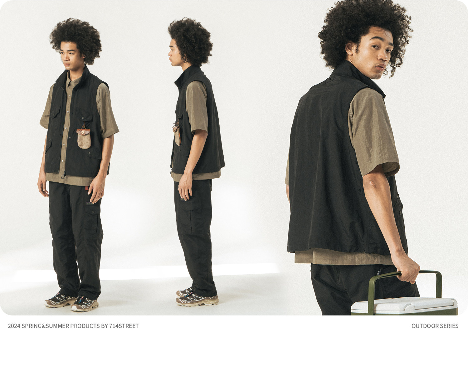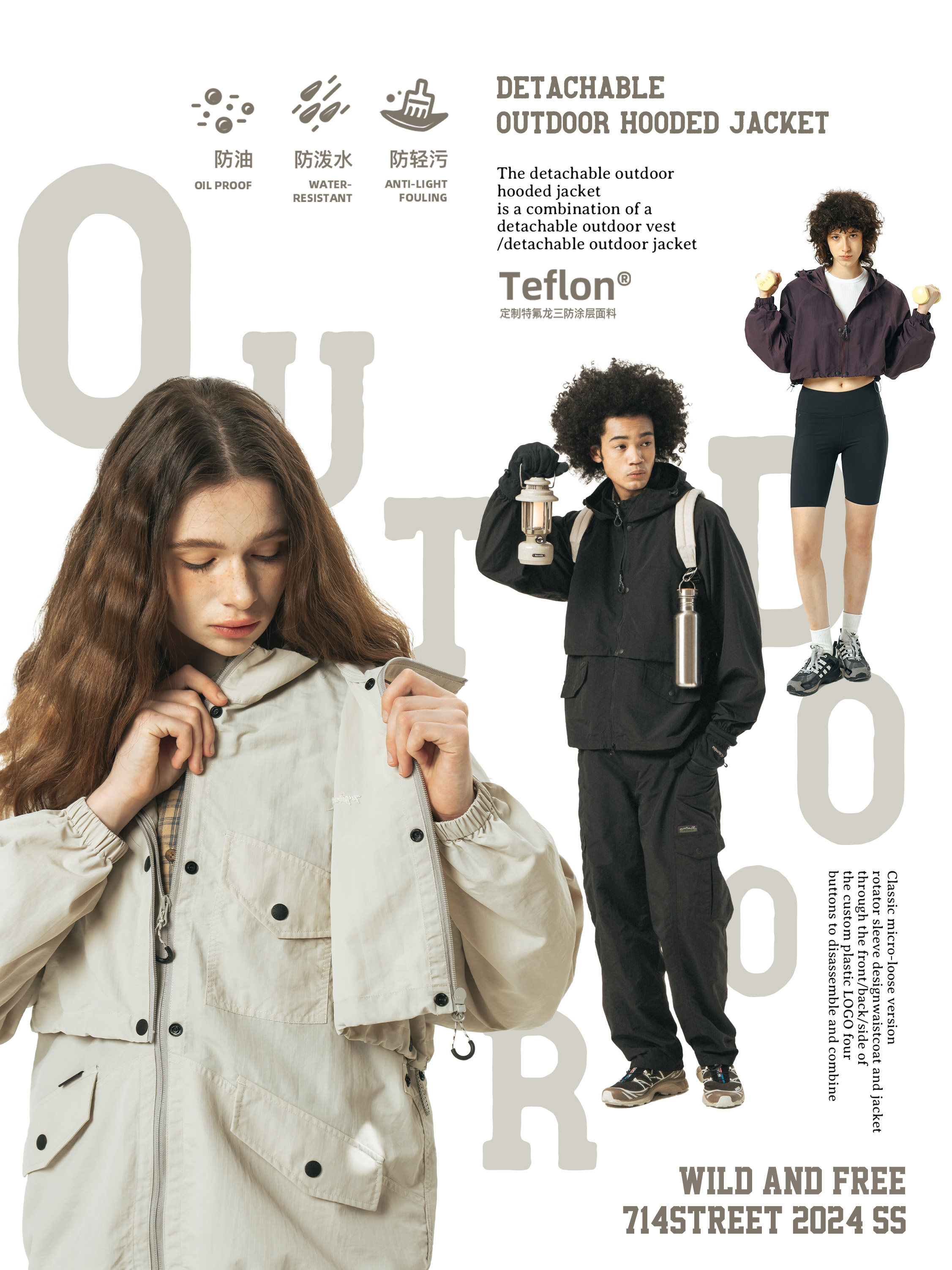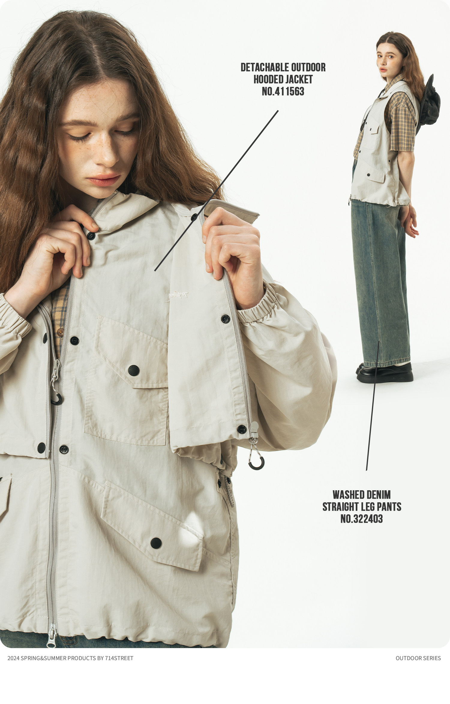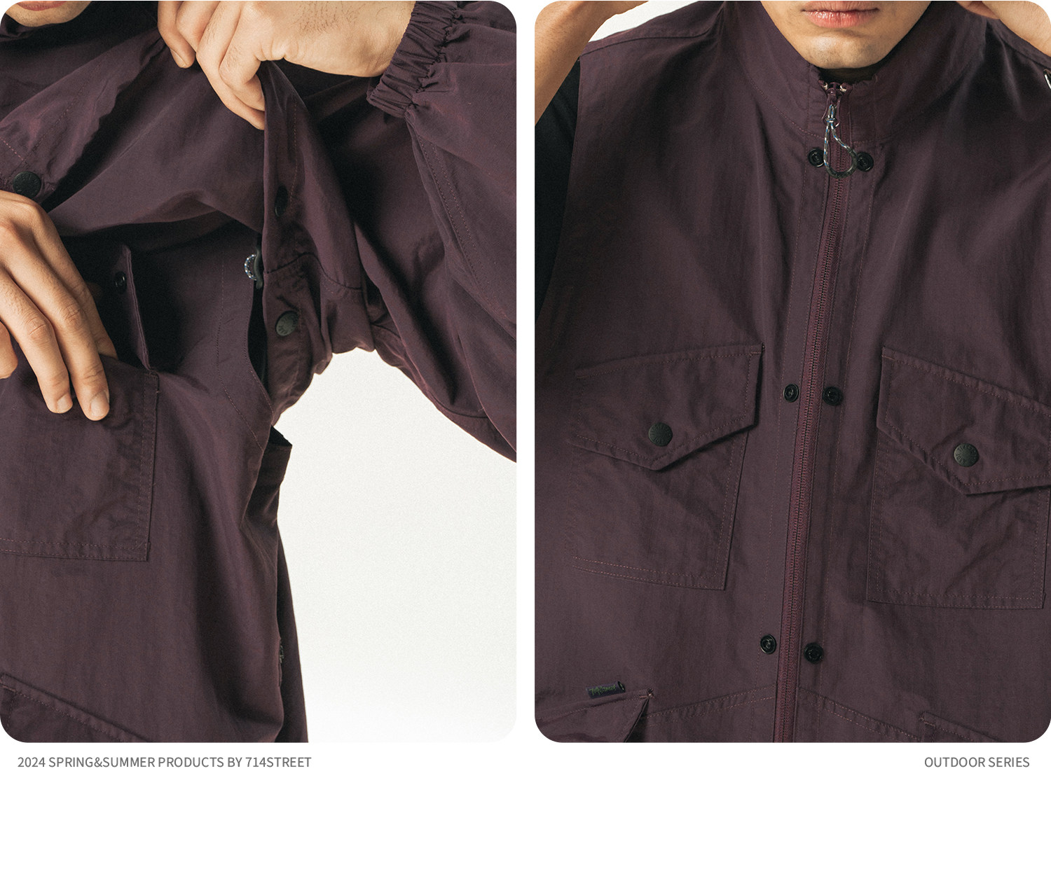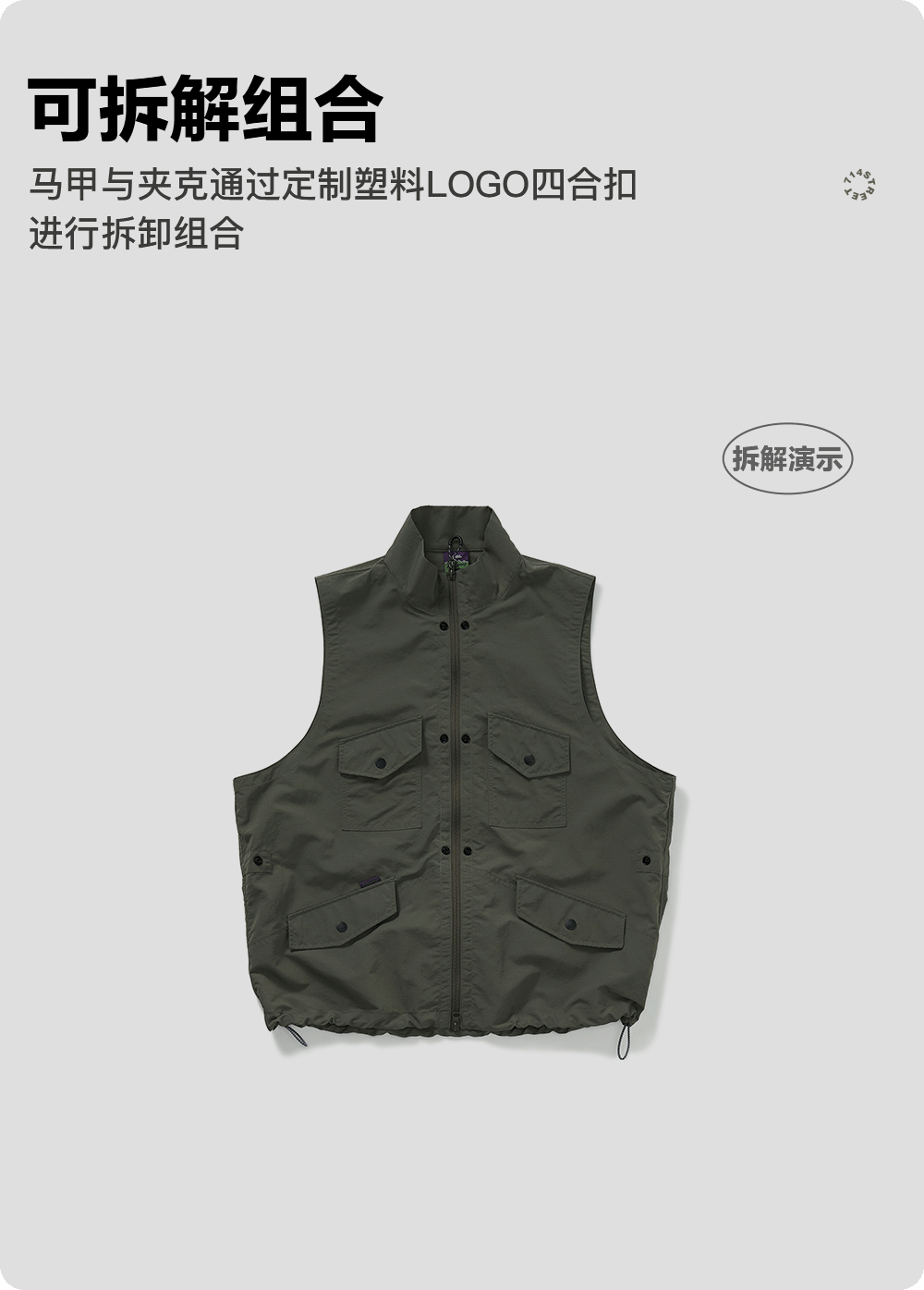 [可拆卸]714street潮牌户外连帽夹克男女2024新款冲锋衣工装马甲