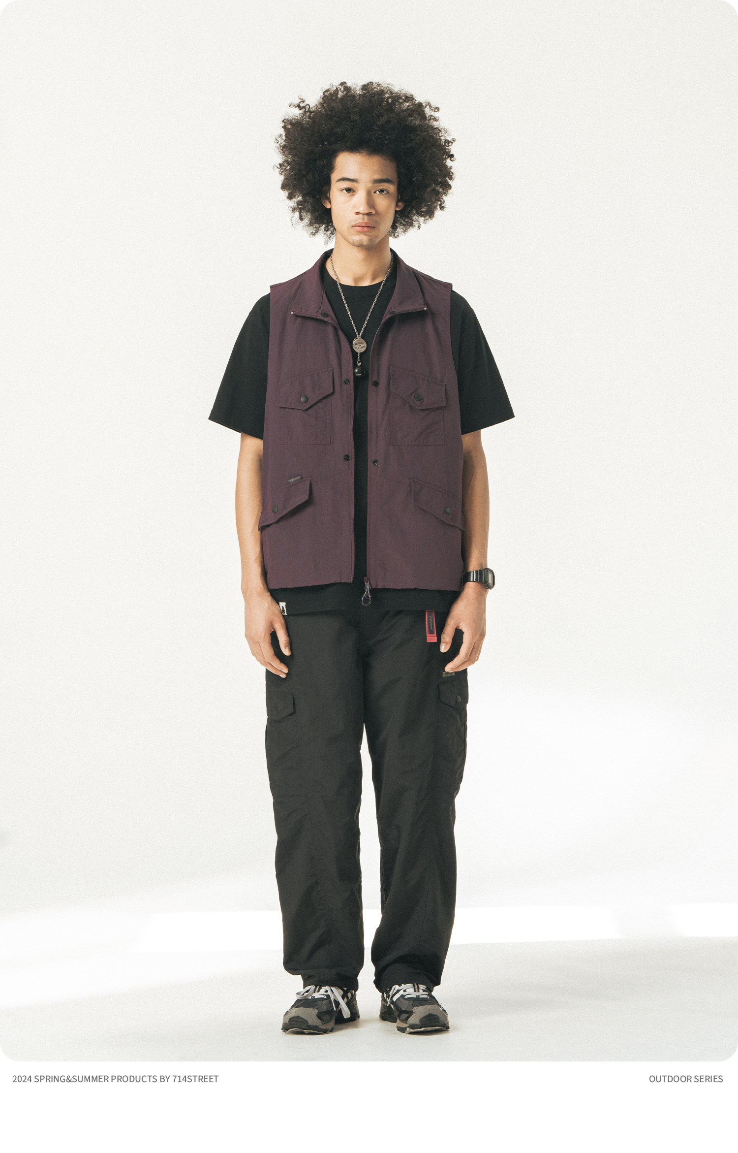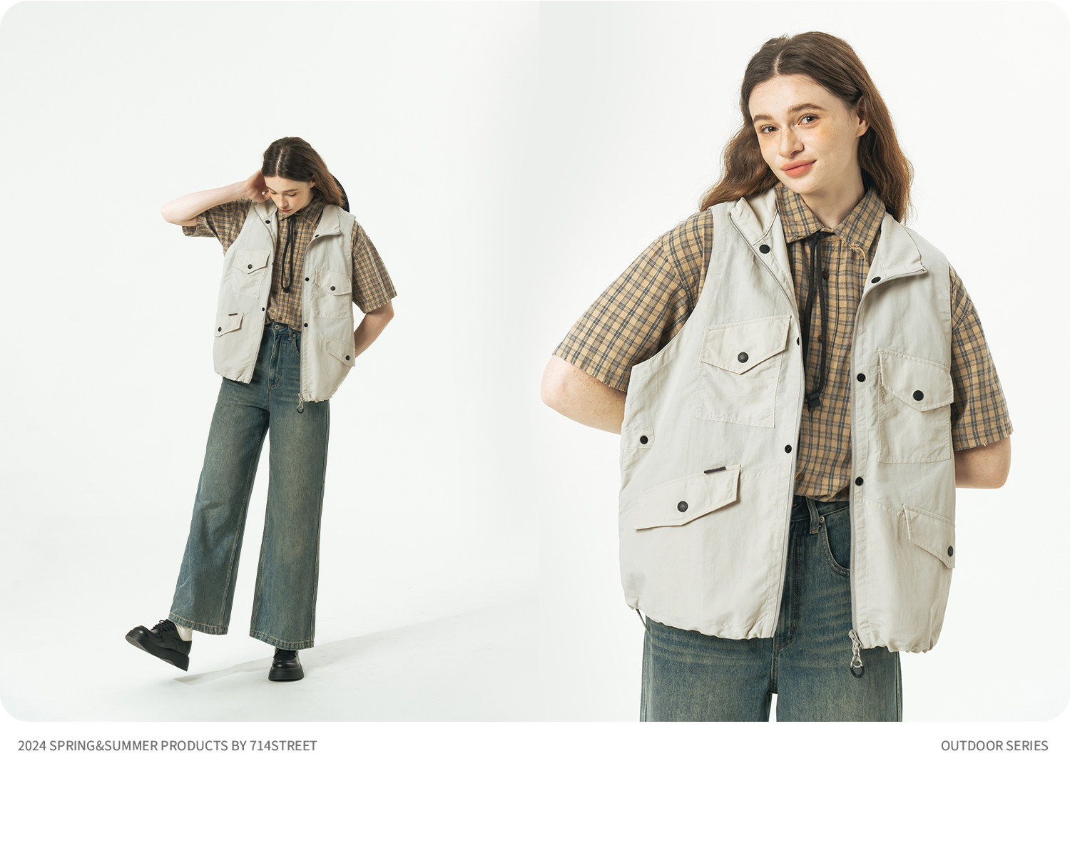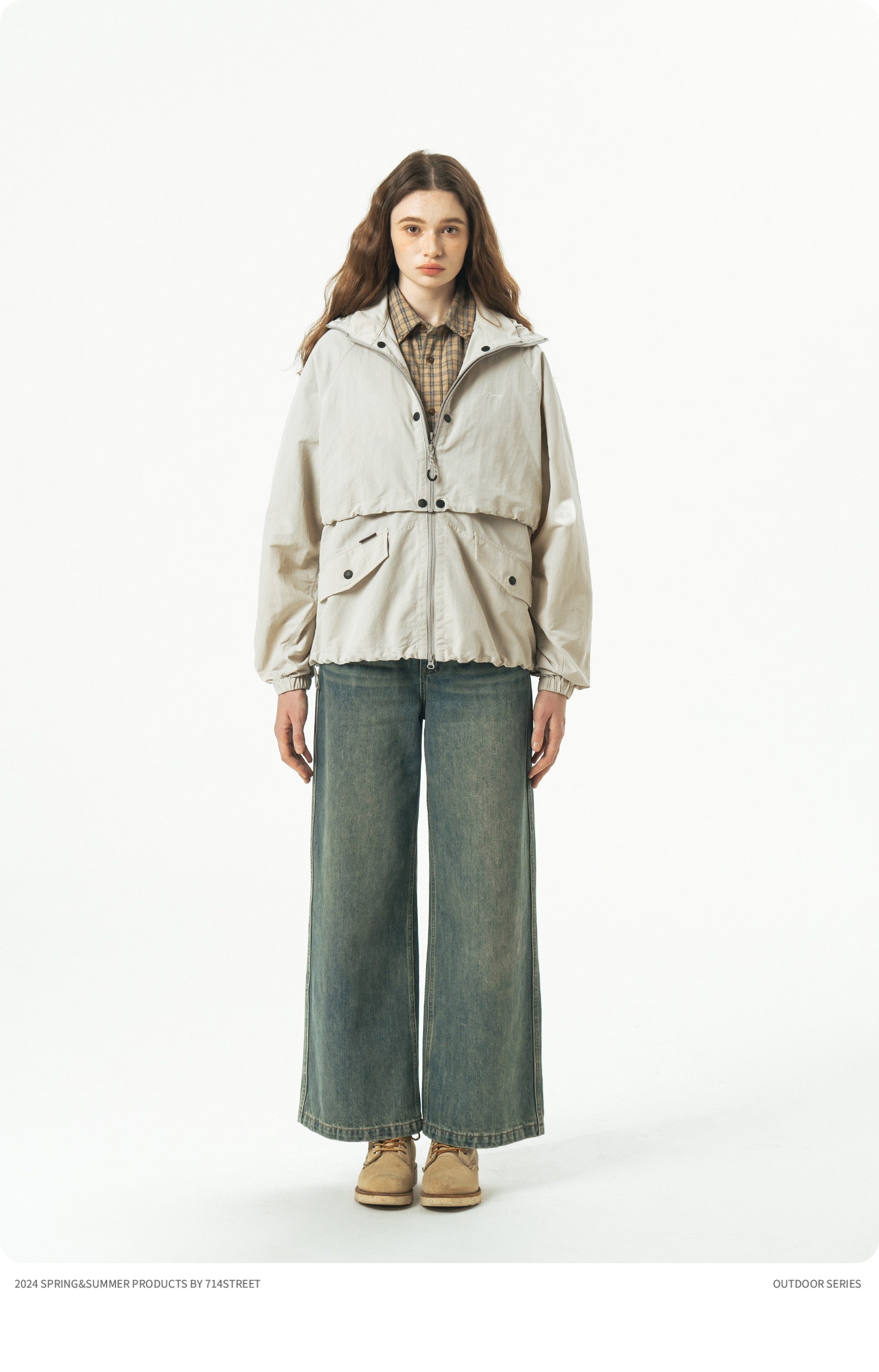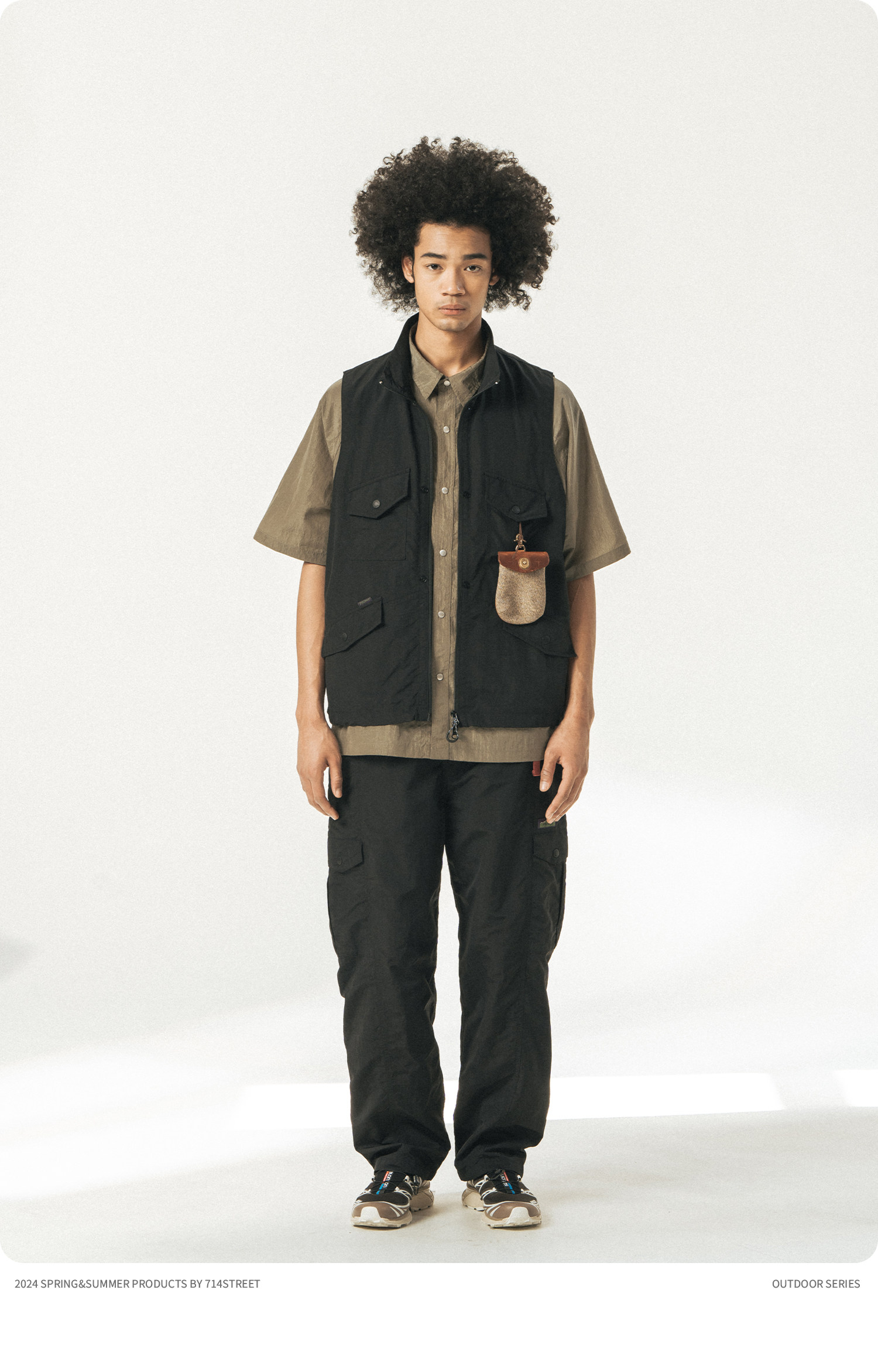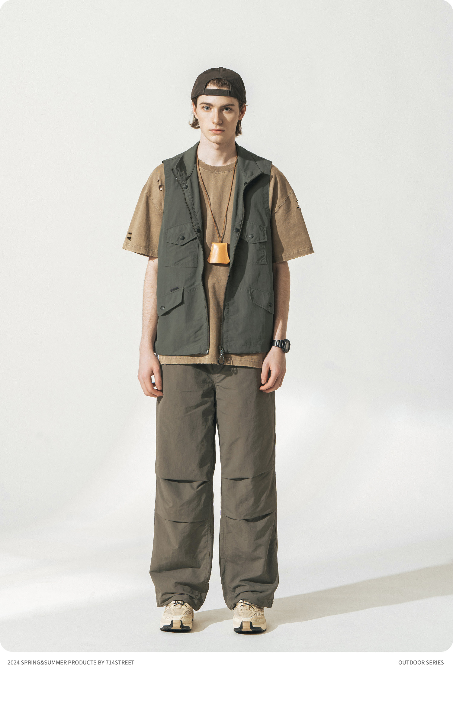 [可拆卸]714street潮牌户外连帽夹克男女2024新款冲锋衣工装马甲