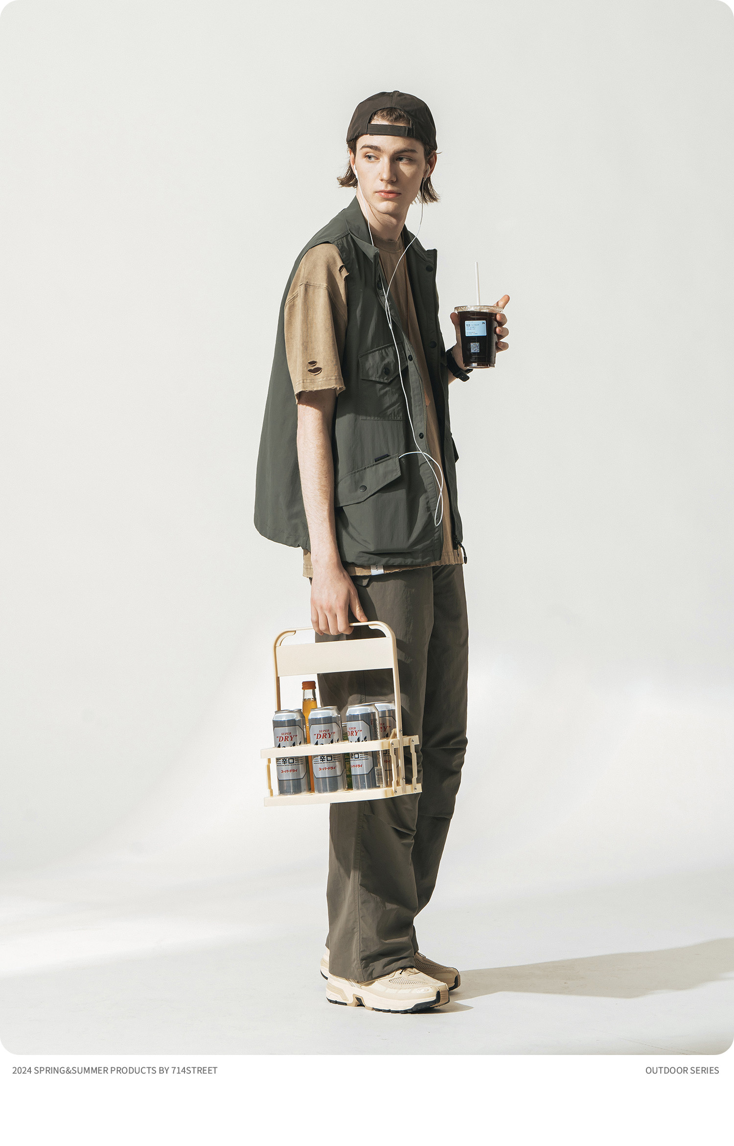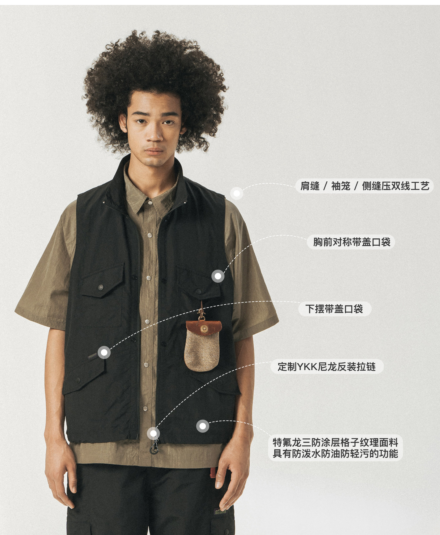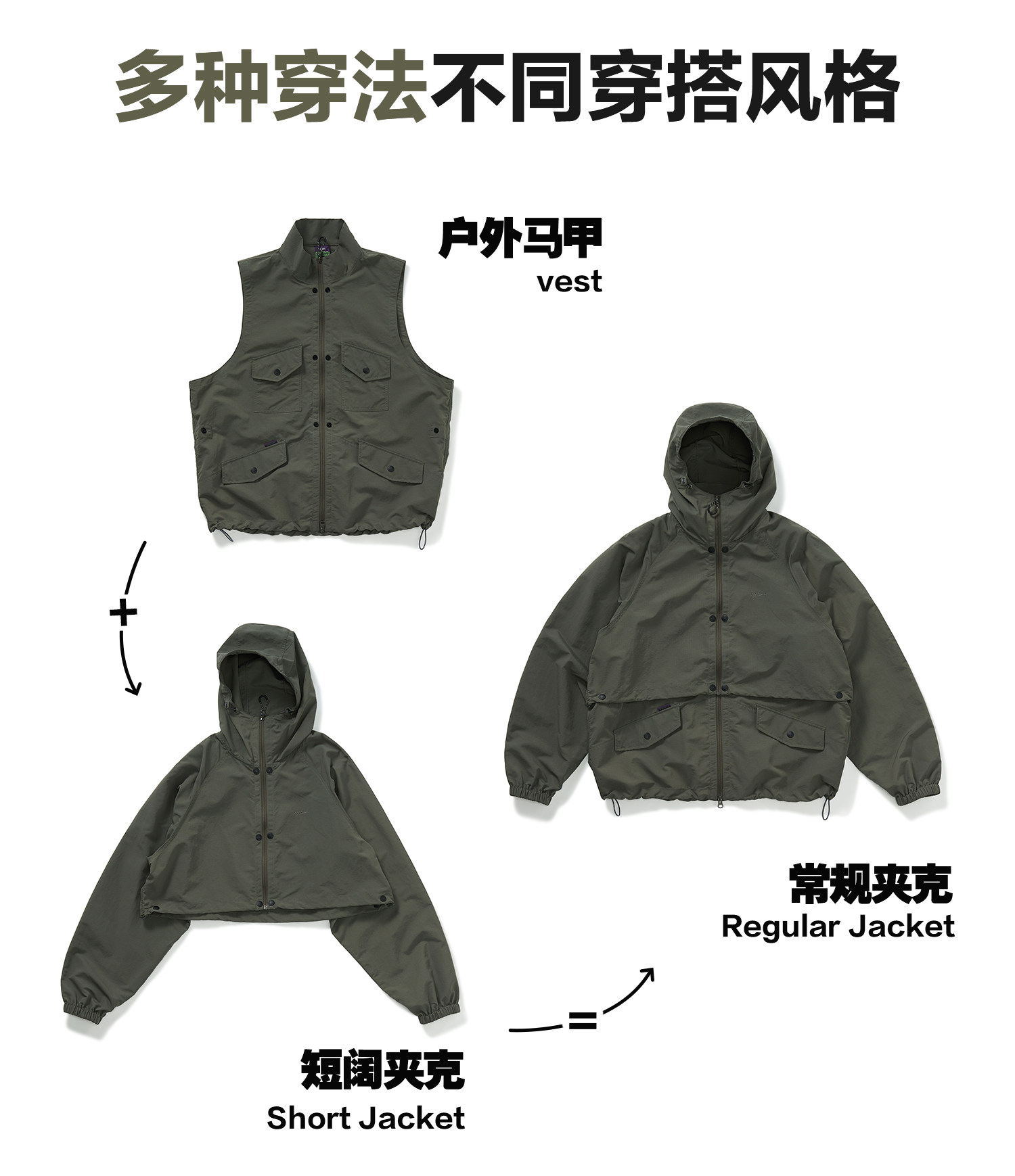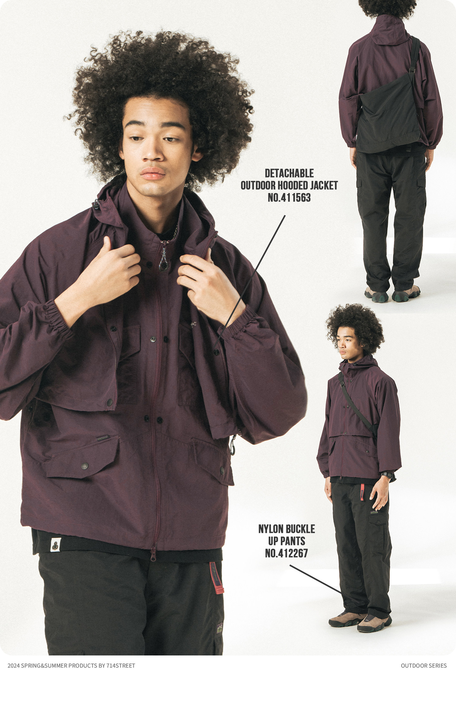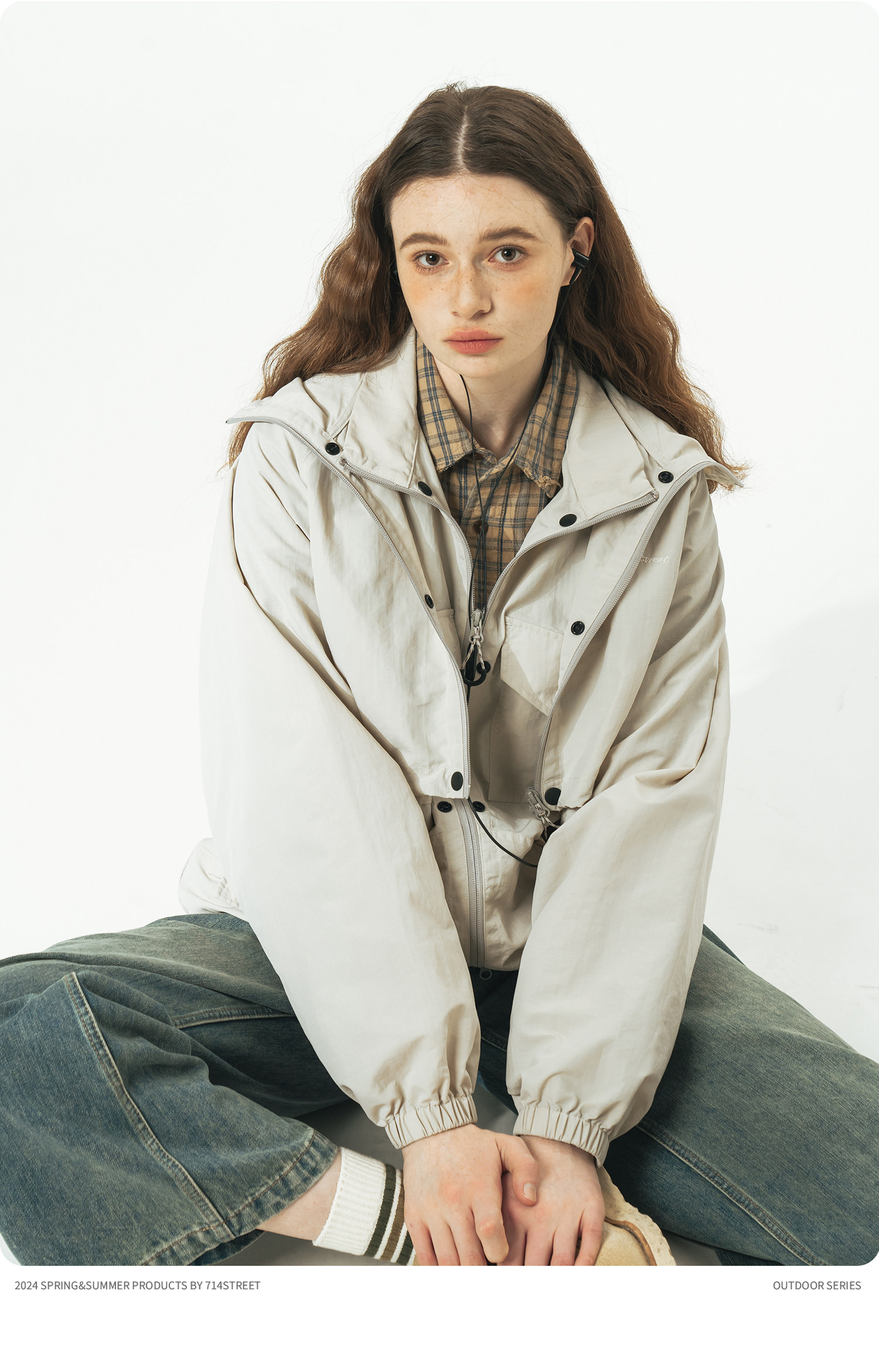 [可拆卸]714street潮牌户外连帽夹克男女2024新款冲锋衣工装马甲