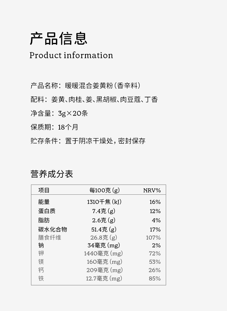 【达人专属】SoAcai暖暖混合姜黄粉3g*20条/盒多规格可选