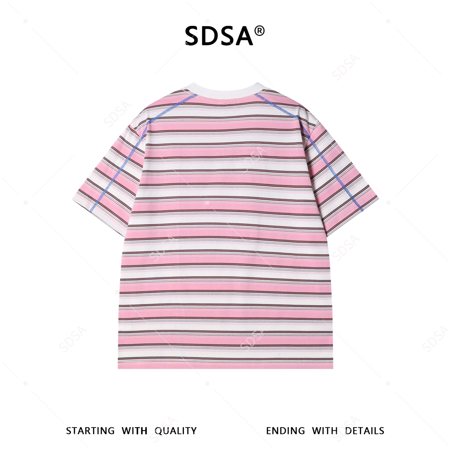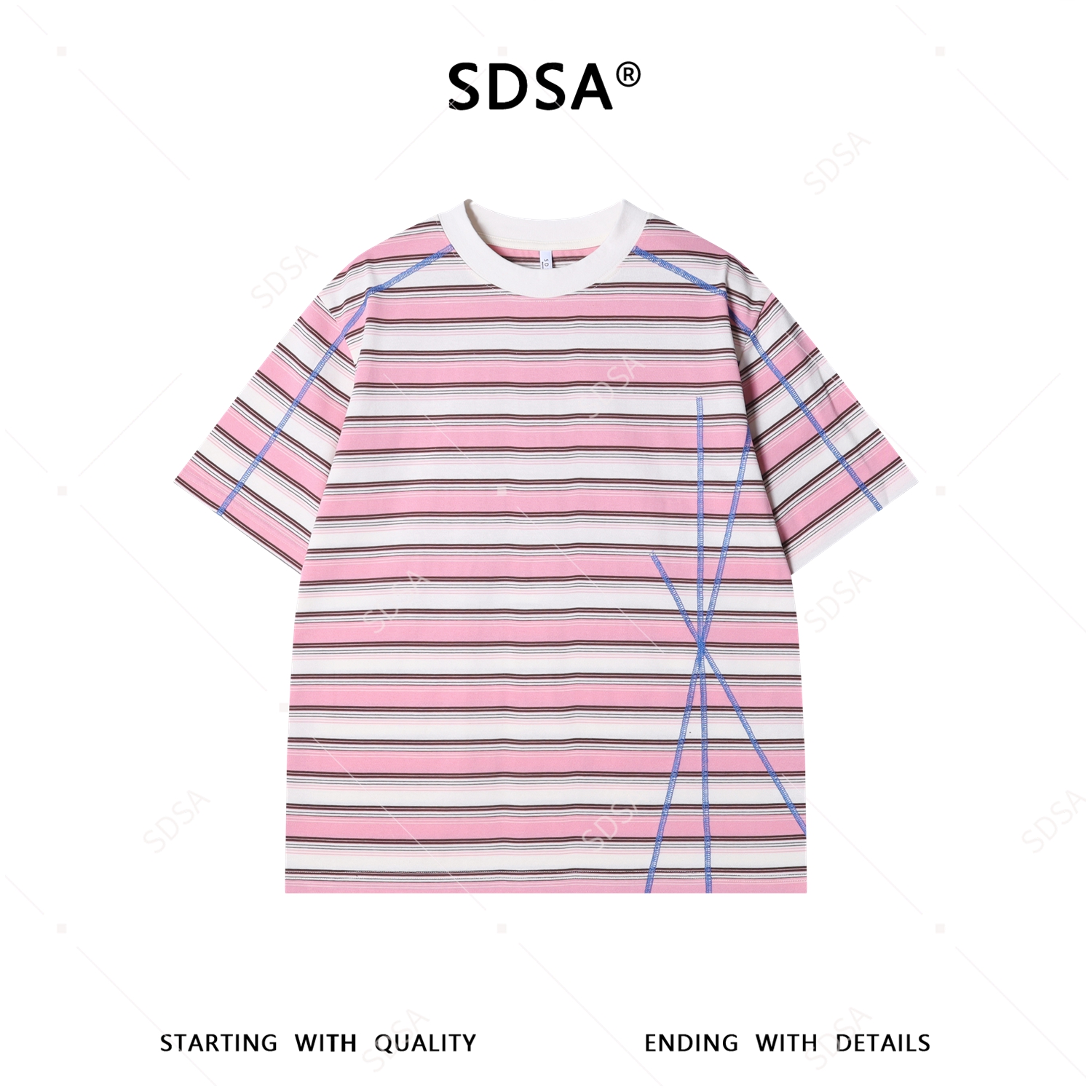 26T162SDSA男装2026新款高贵轻奢潮牌撞色条纹短袖T恤明线设计圆领上衣