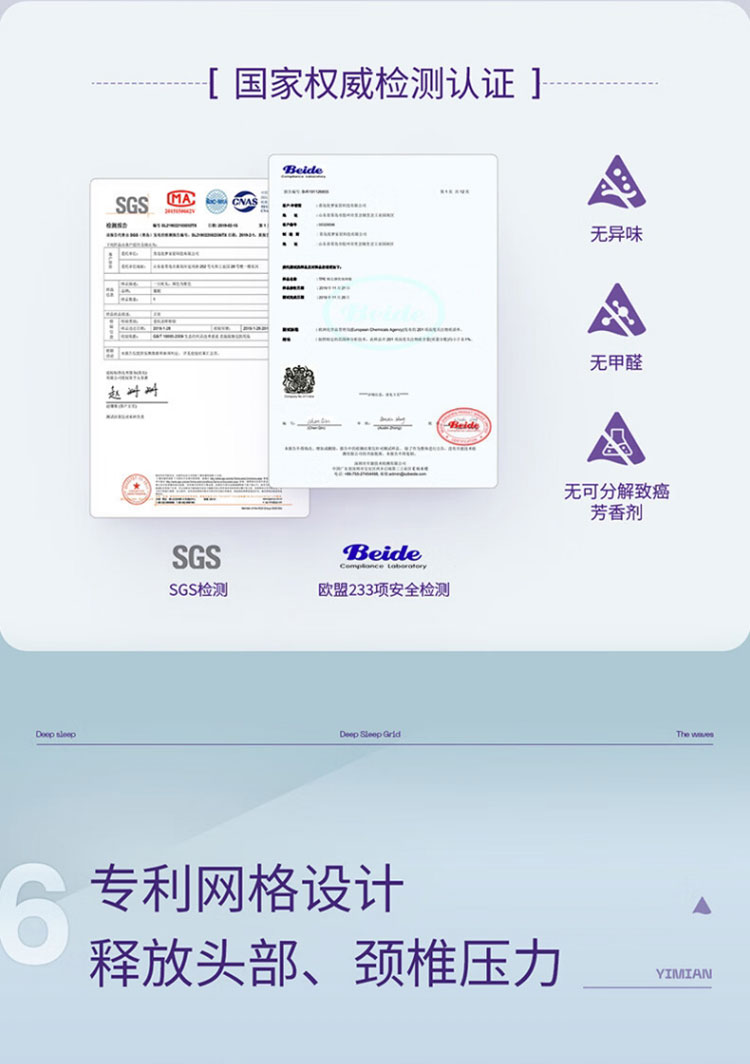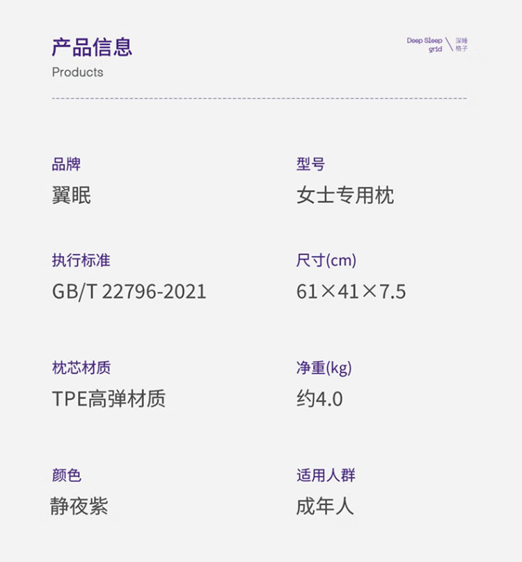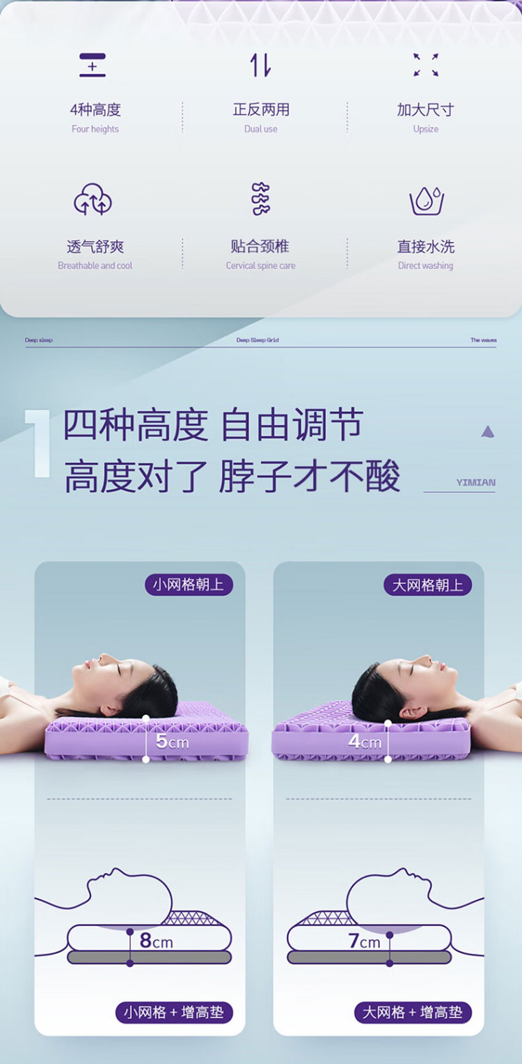 翼眠 深睡格子TPE无压枕 云柔型
