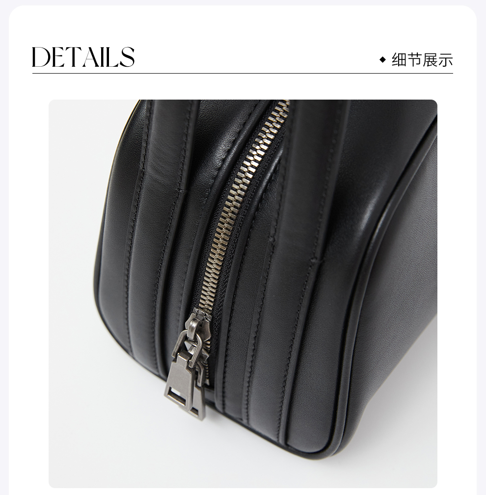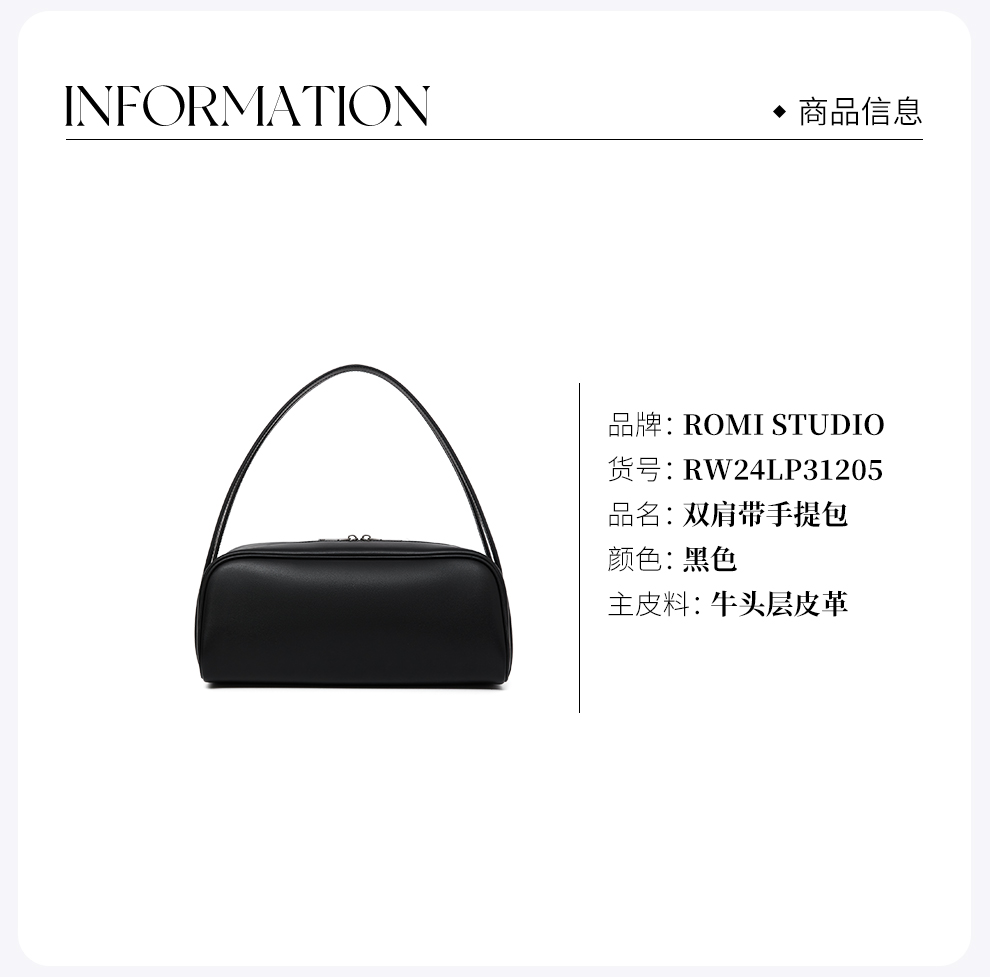 ROMI STUDIO“复古优雅”100%头层牛皮光泽双肩带手提包RW24LP31205