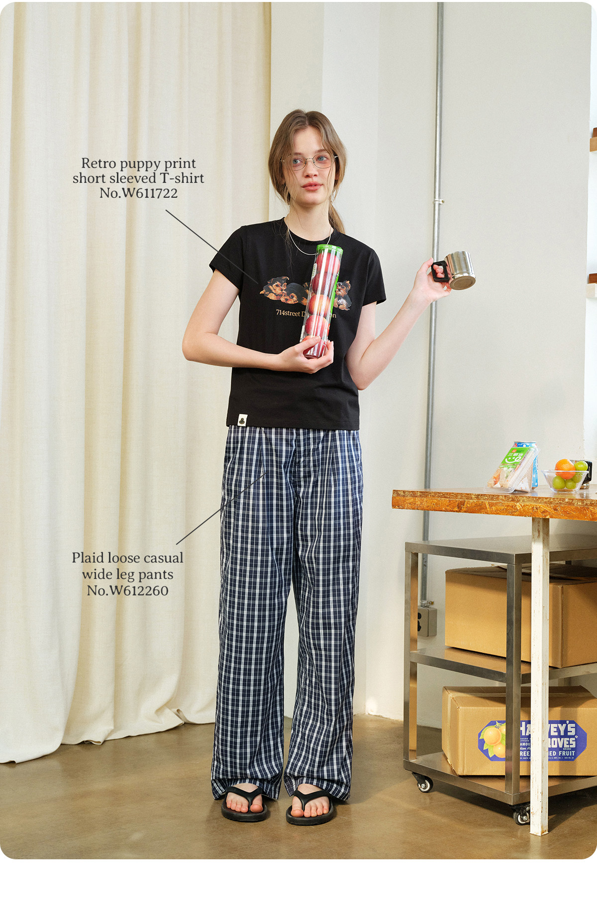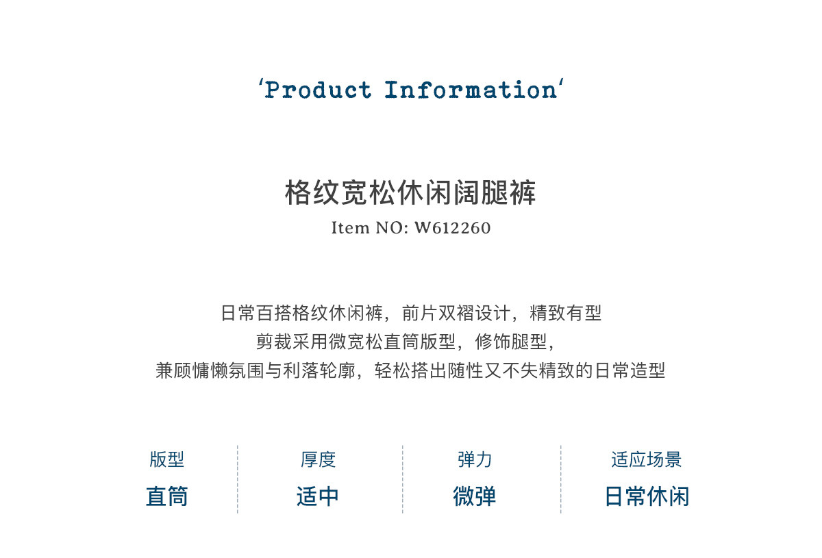 714street格纹宽松休闲阔腿裤2026春季新品直筒裤简约百搭长裤男