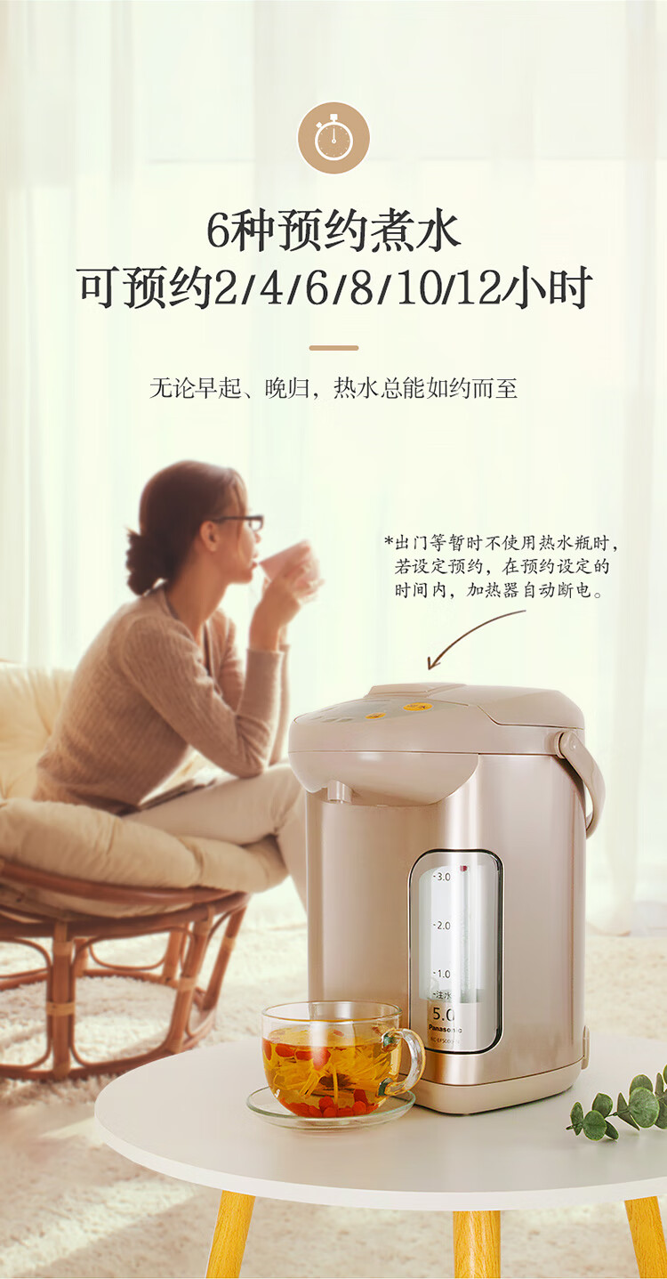 松下(Panasonic)5L电水壶 电热水瓶 可预约 食品级涂层内胆 全自动智能保温烧水壶 NC-EF5000-N