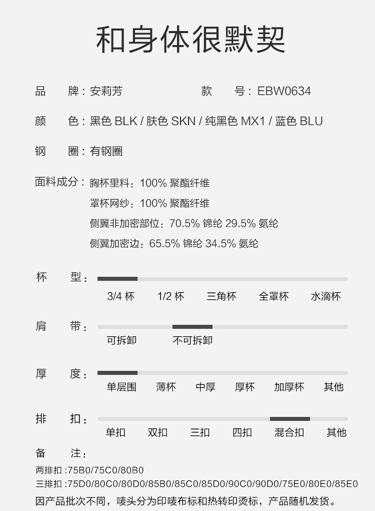 安莉芳 防下垂兔耳朵薄款大胸显小防凸大码无痕文胸EBW0634