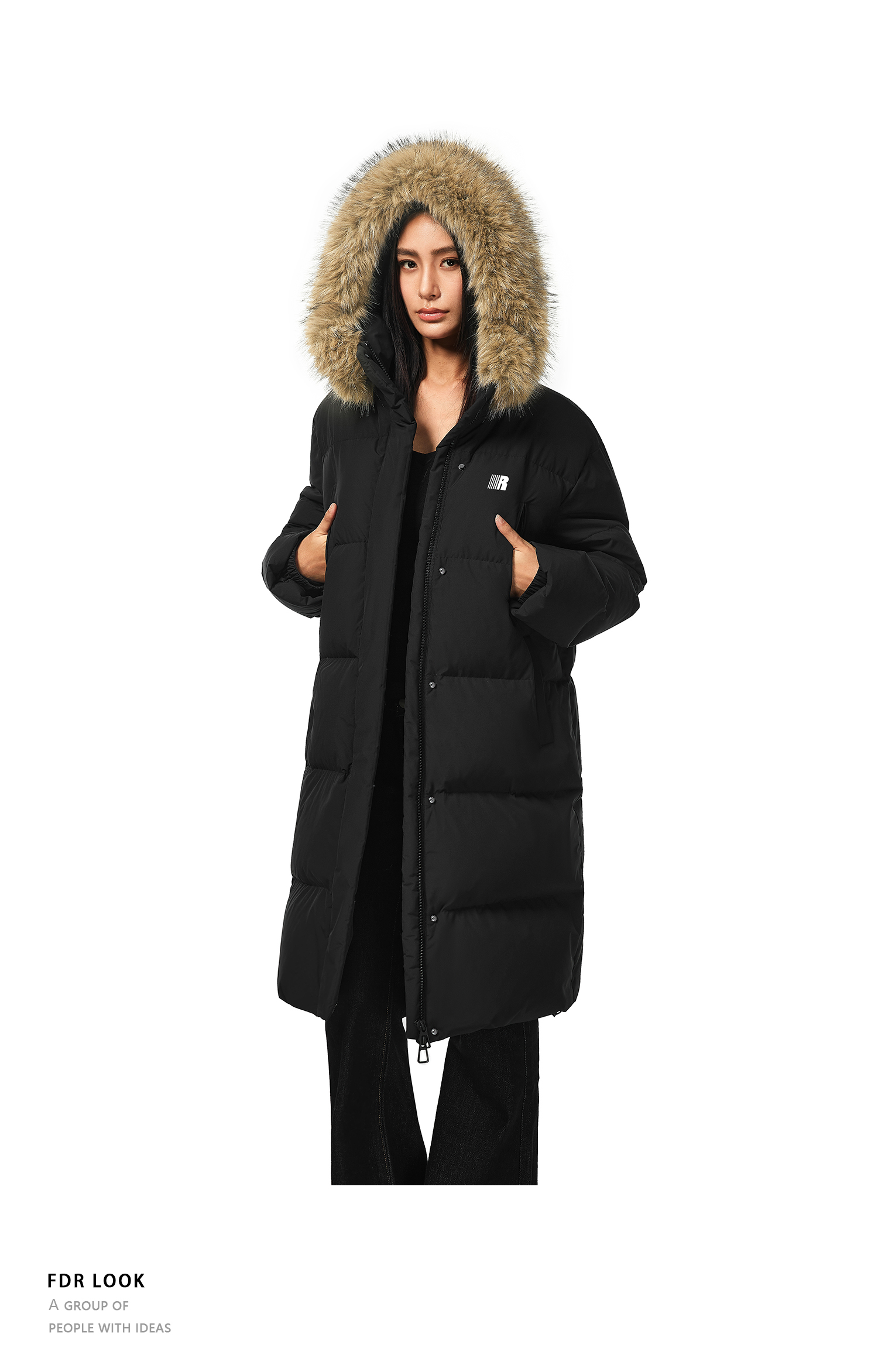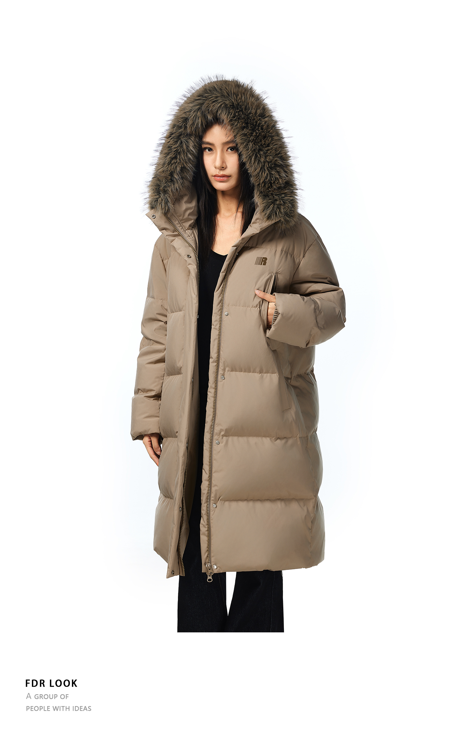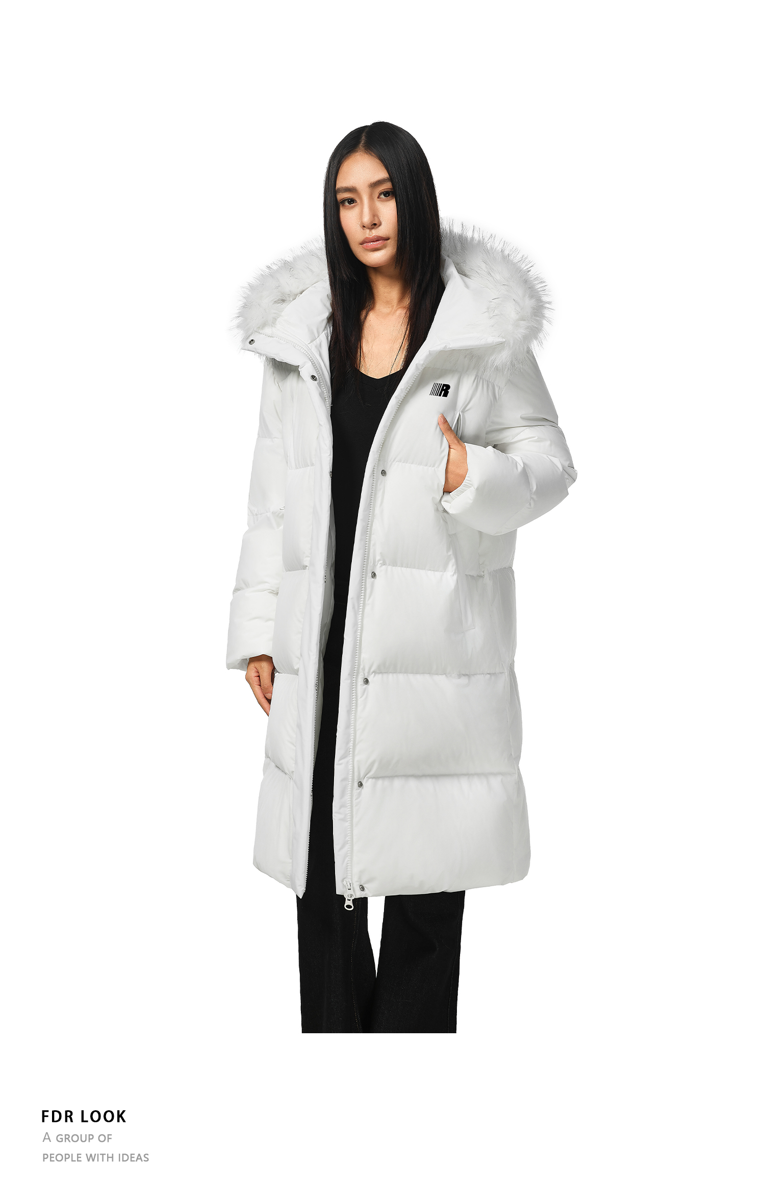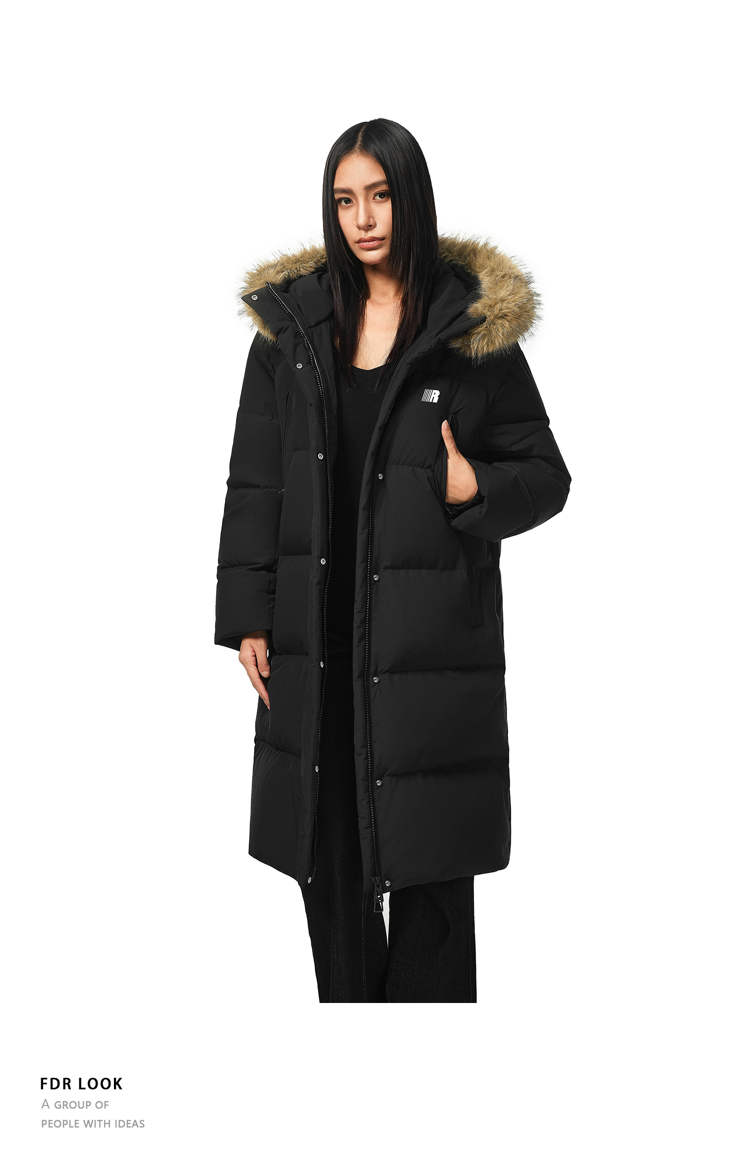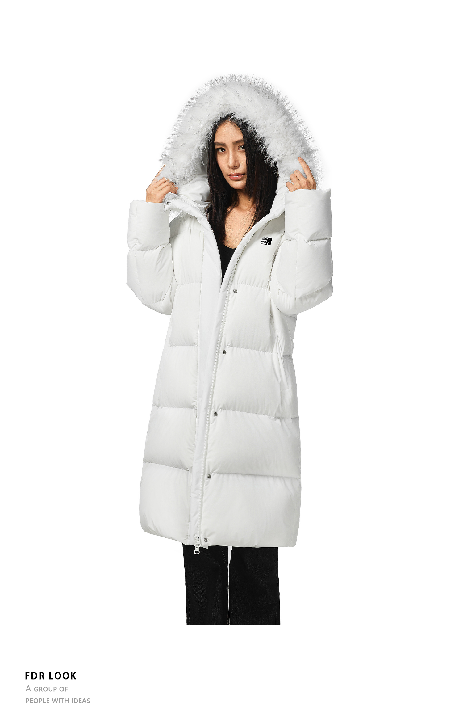 FDR官方店 保暖情侣厚外套男款可拆卸毛领中长款羽绒服女款冬季