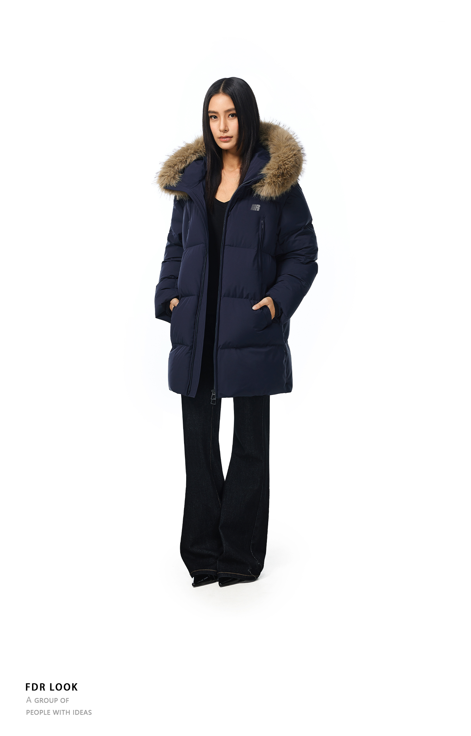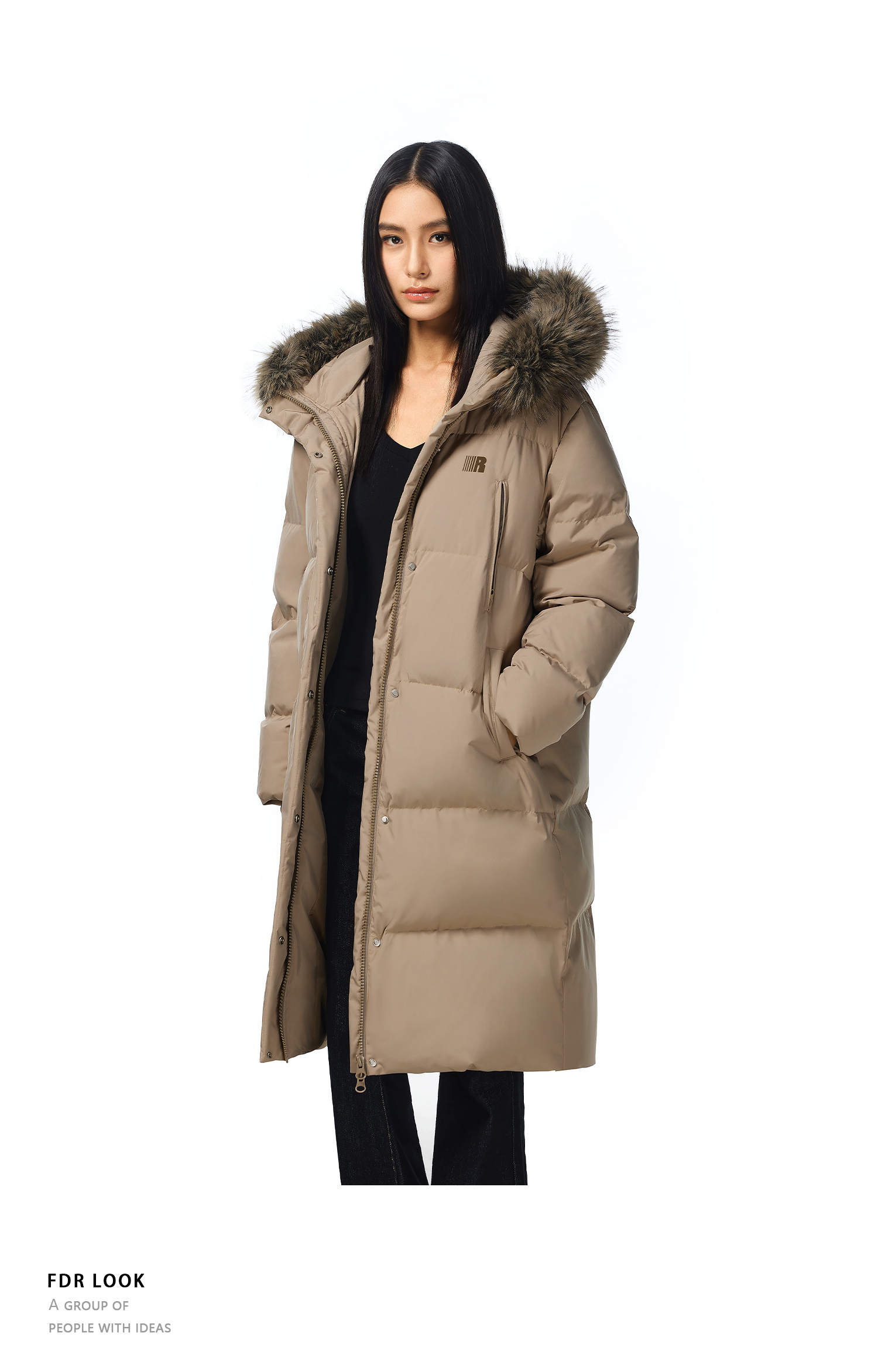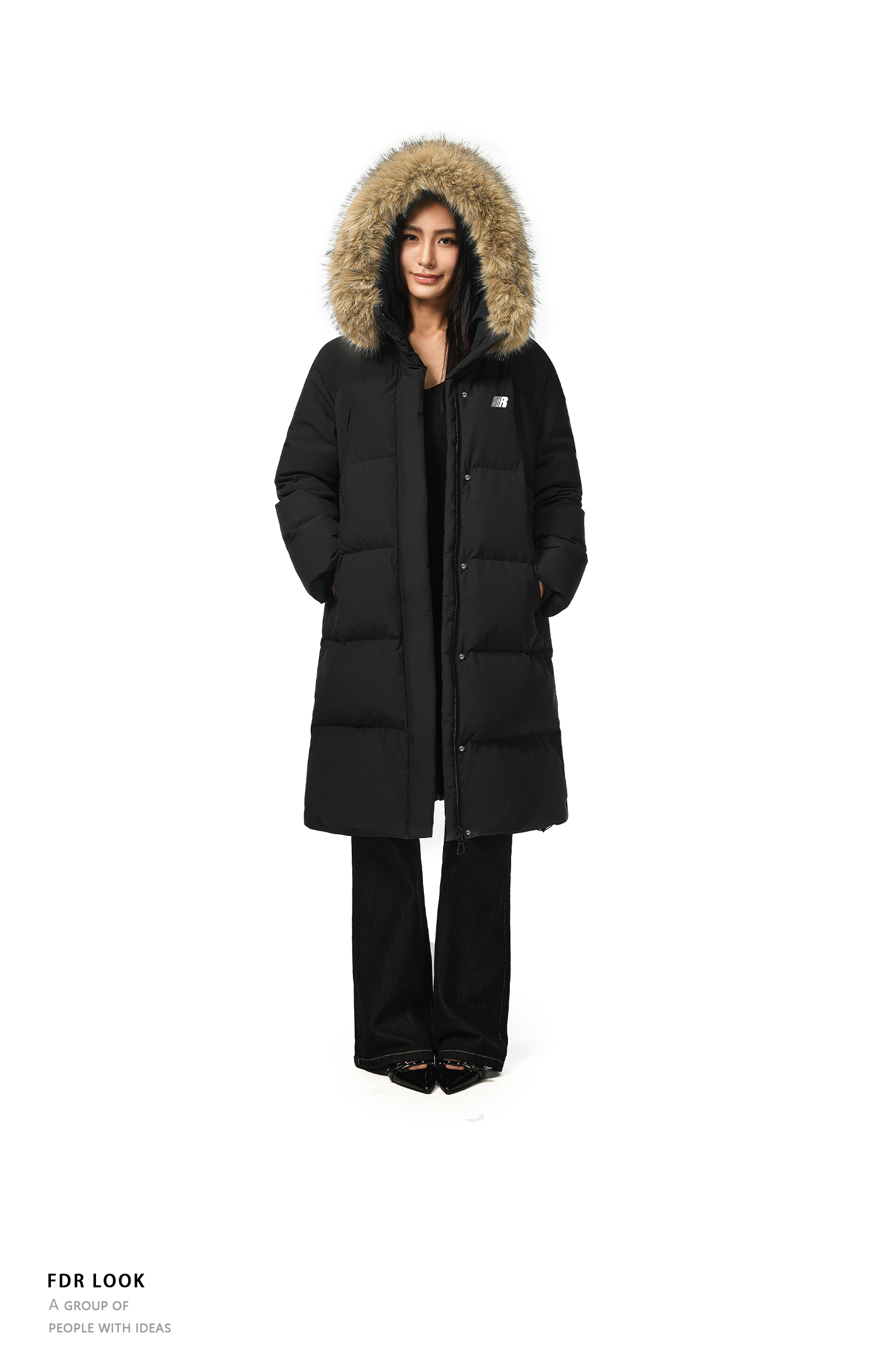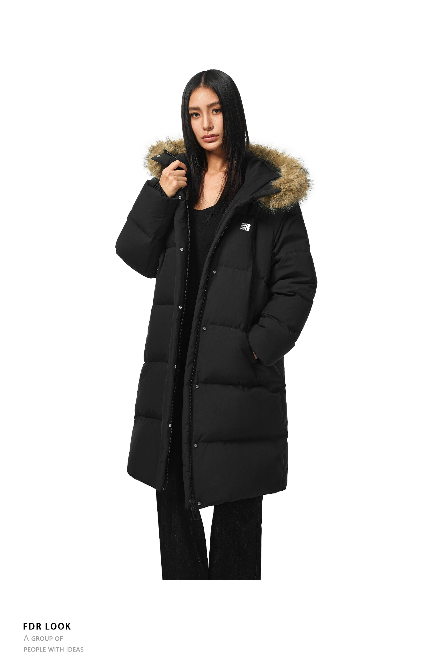 FDR官方店 保暖情侣厚外套男款可拆卸毛领中长款羽绒服女款冬季