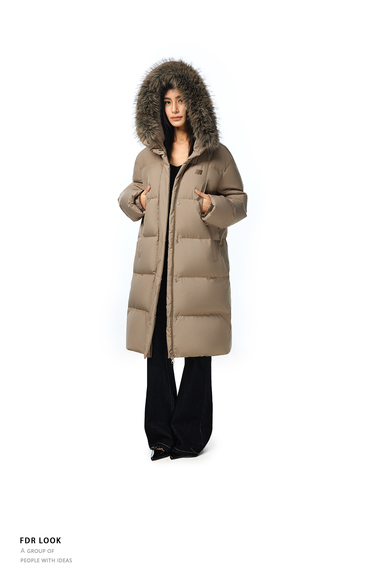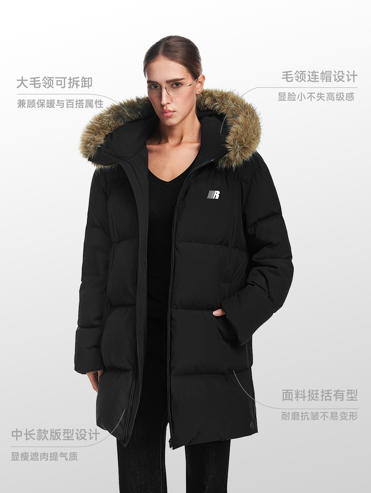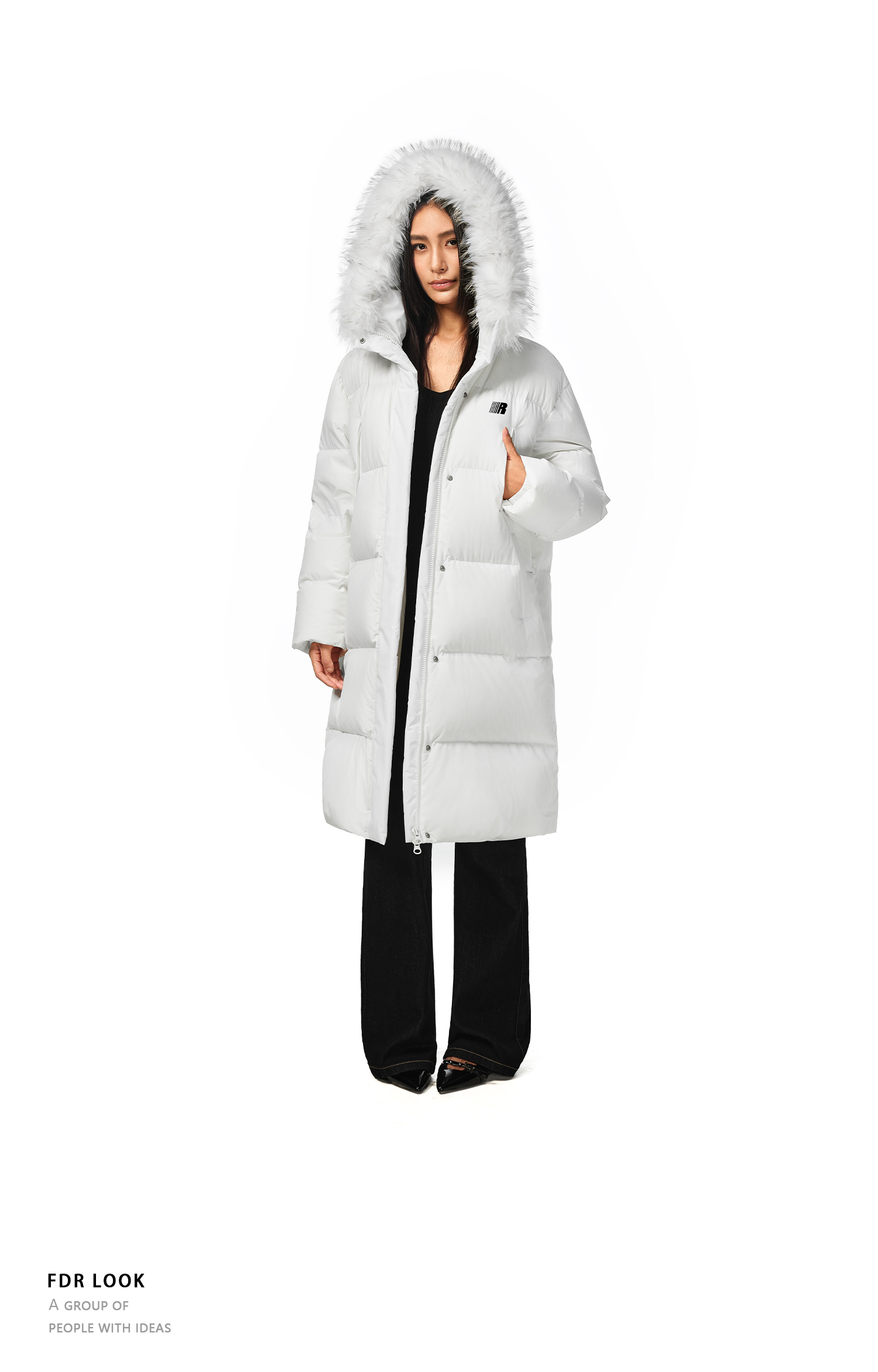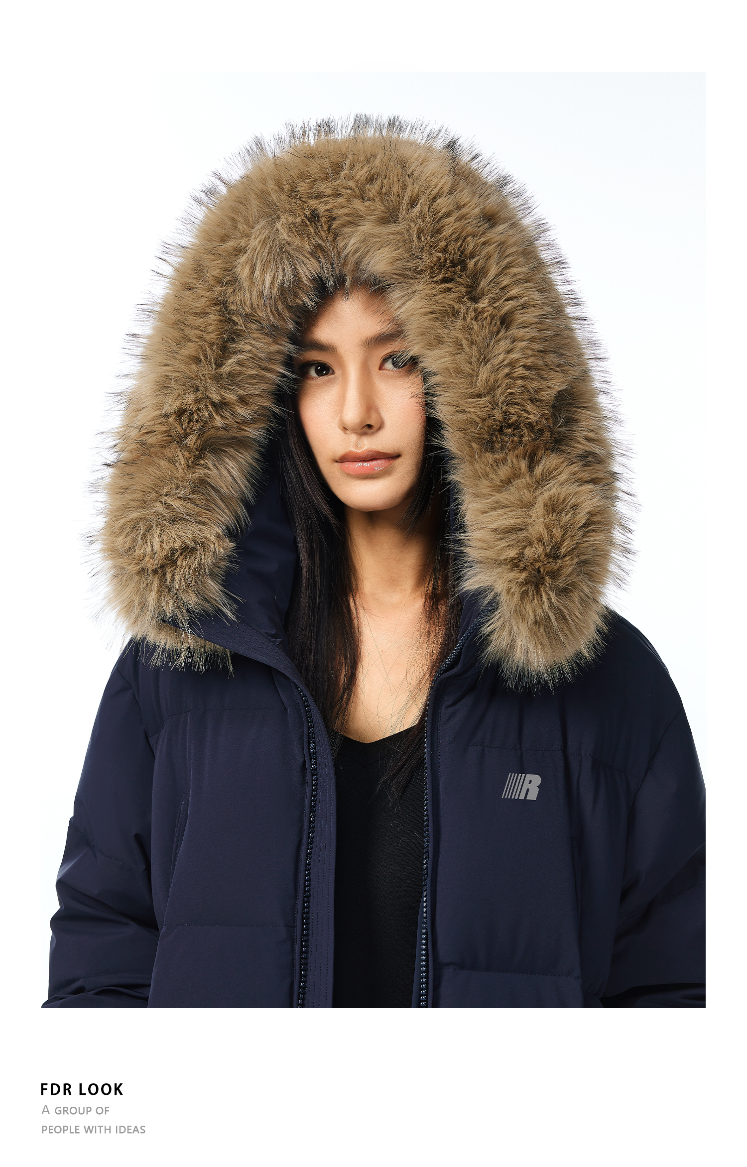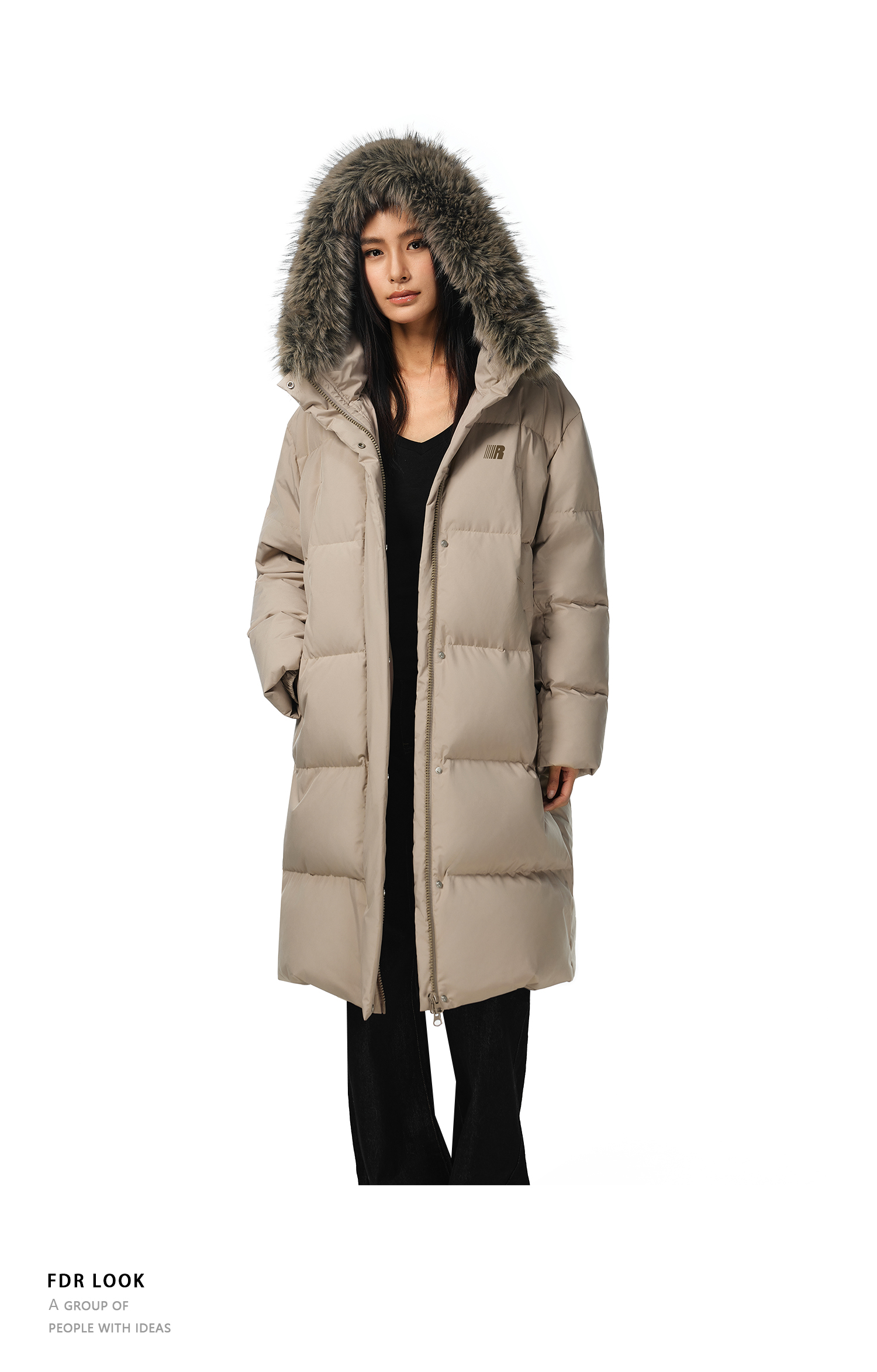 FDR官方店 保暖情侣厚外套男款可拆卸毛领中长款羽绒服女款冬季