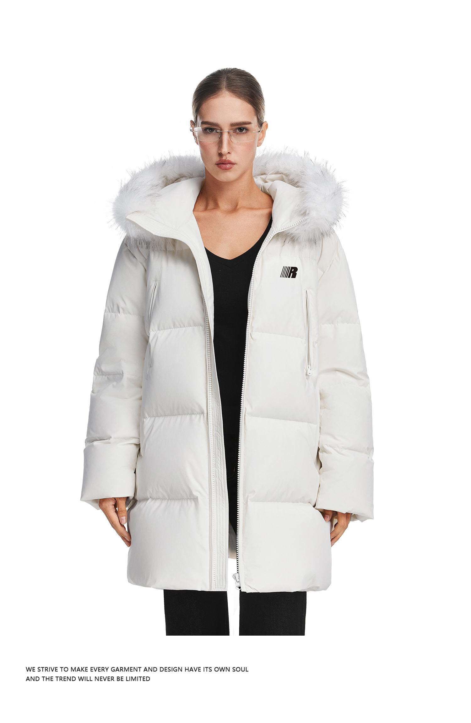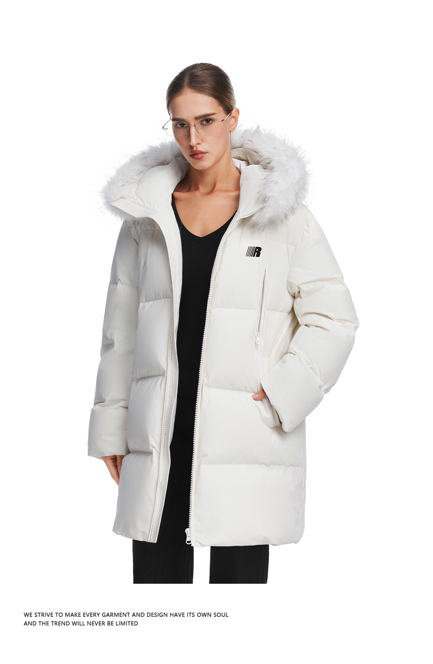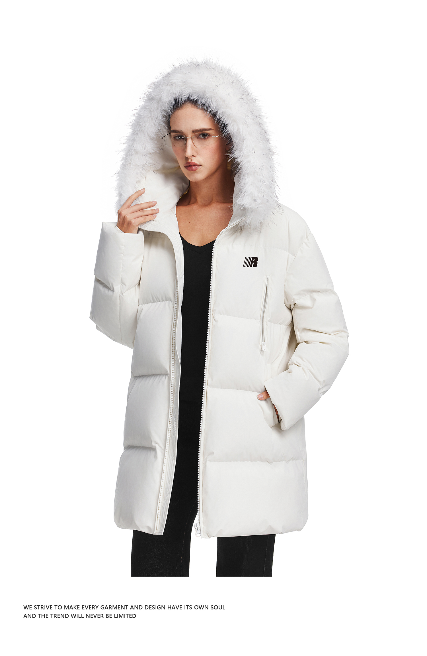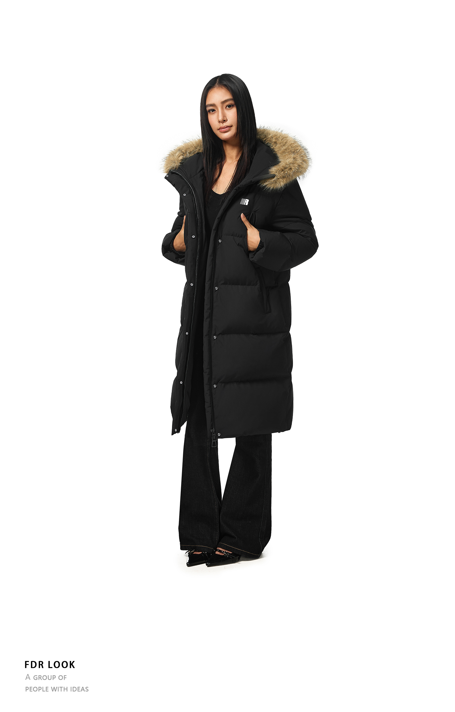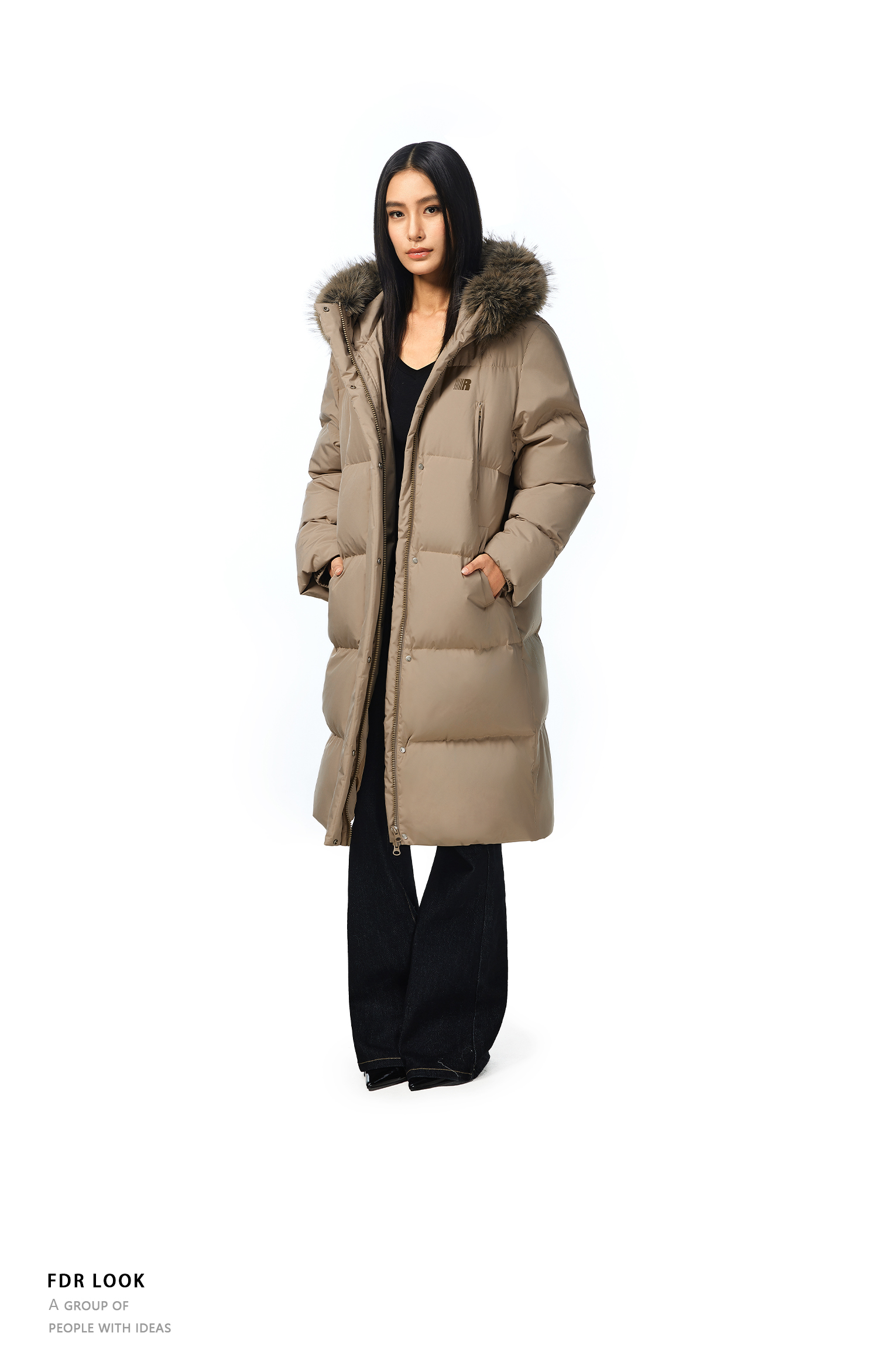FDR官方店 保暖情侣厚外套男款可拆卸毛领中长款羽绒服女款冬季