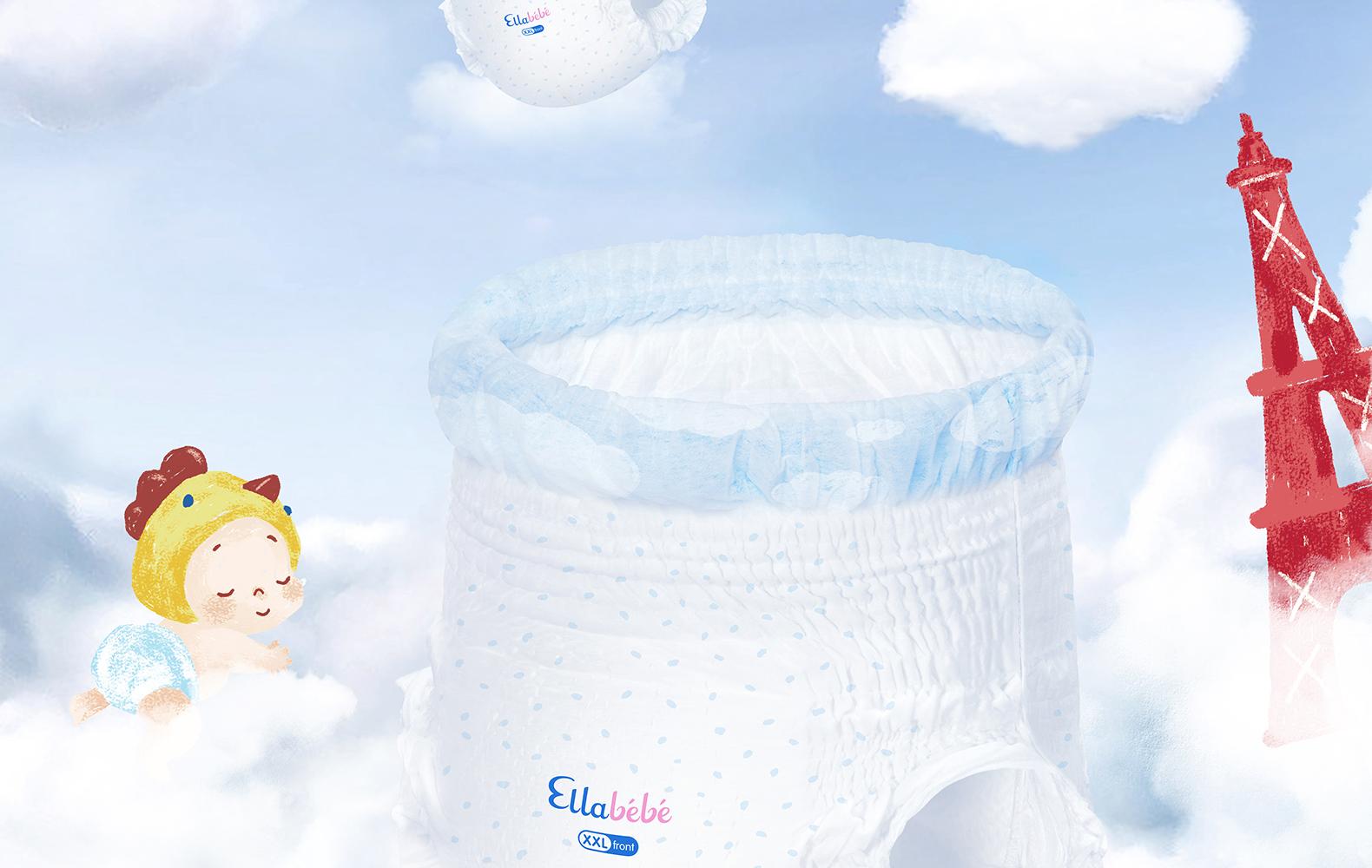 Ellabebe嗳乐蓓贝极薄云柔婴幼儿拉拉裤春夏轻薄亲肤瞬吸宝宝尿不湿L