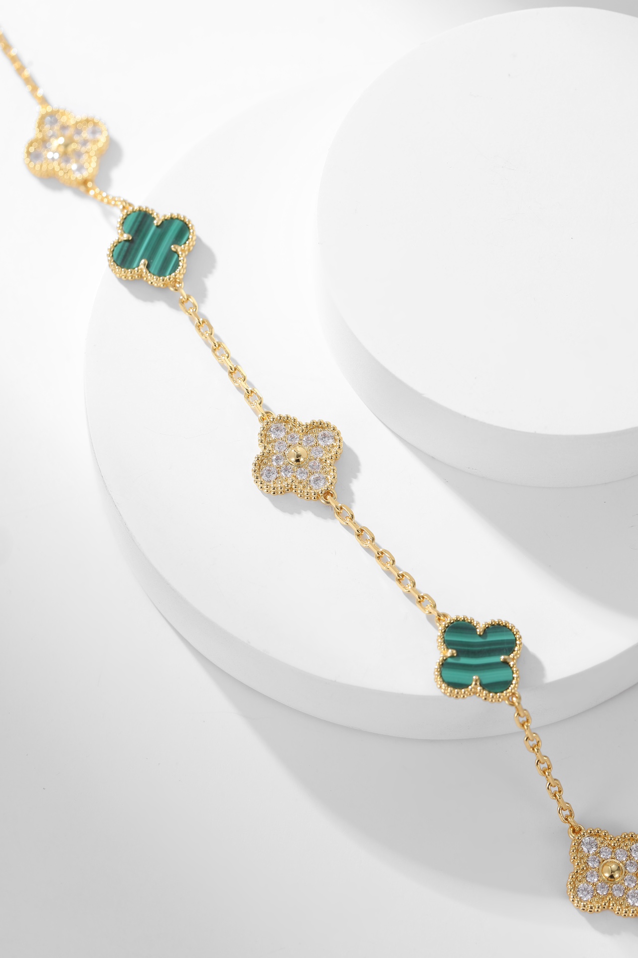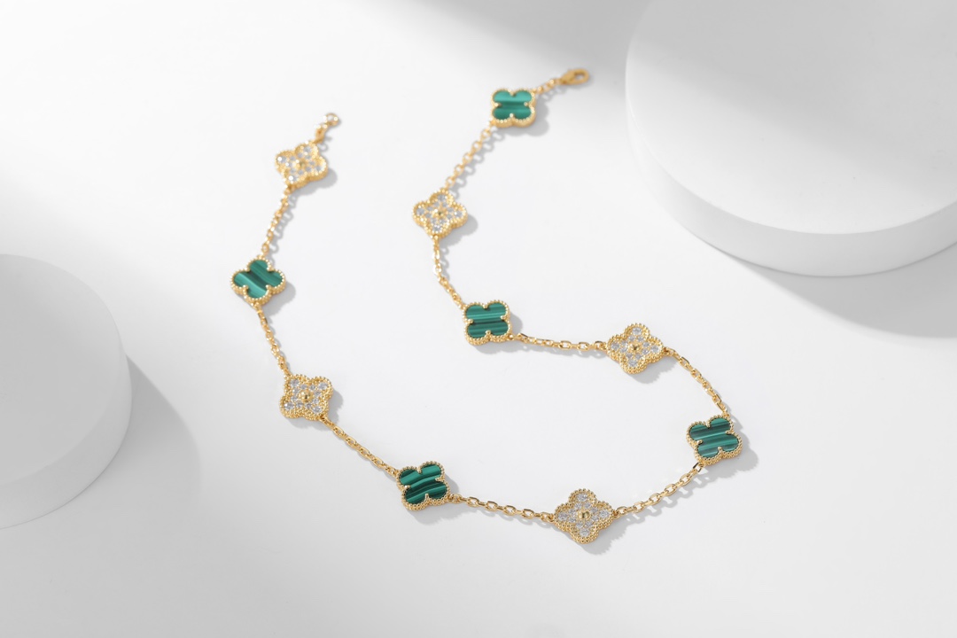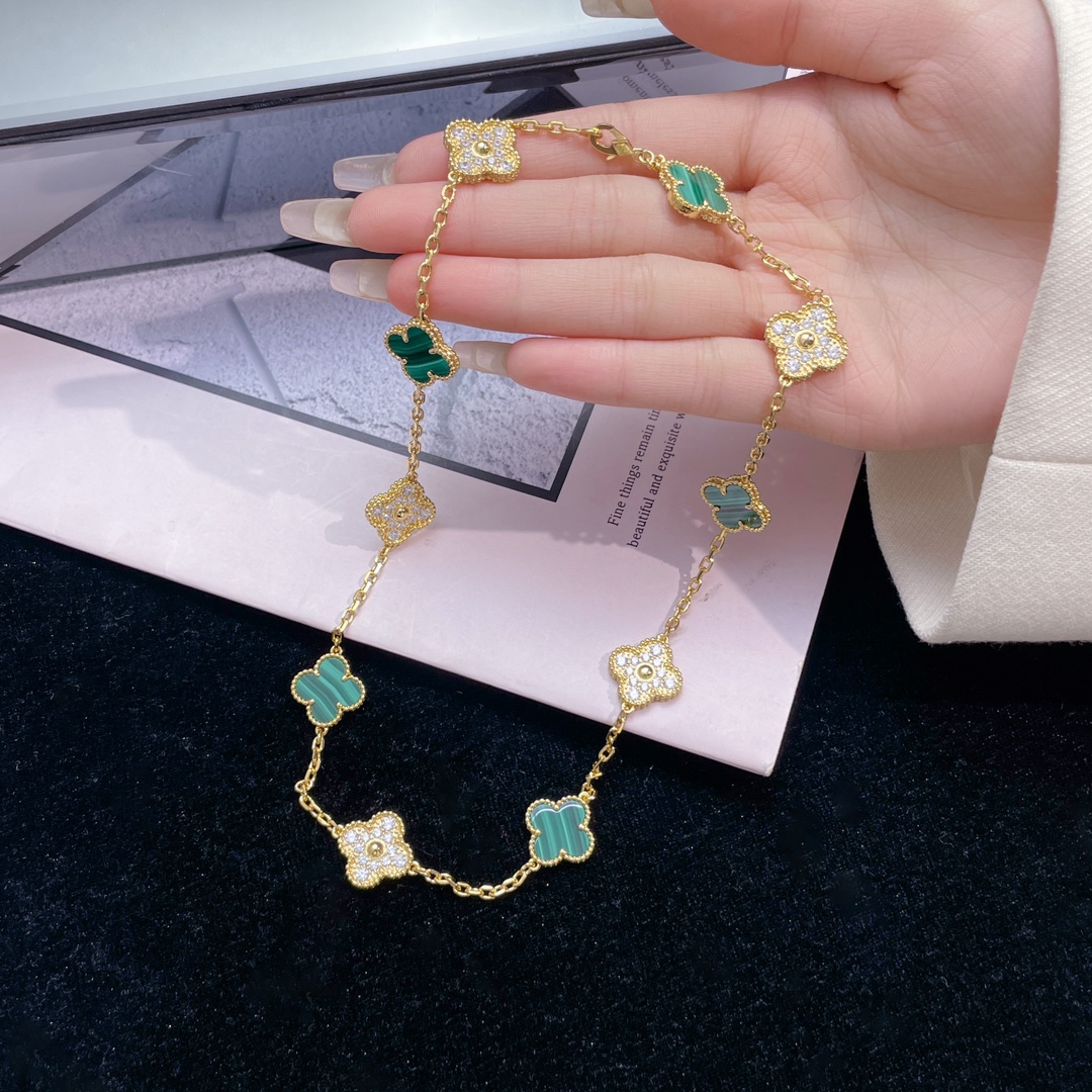 梵克雅宝十花间钻孔雀石项链(黄金色)