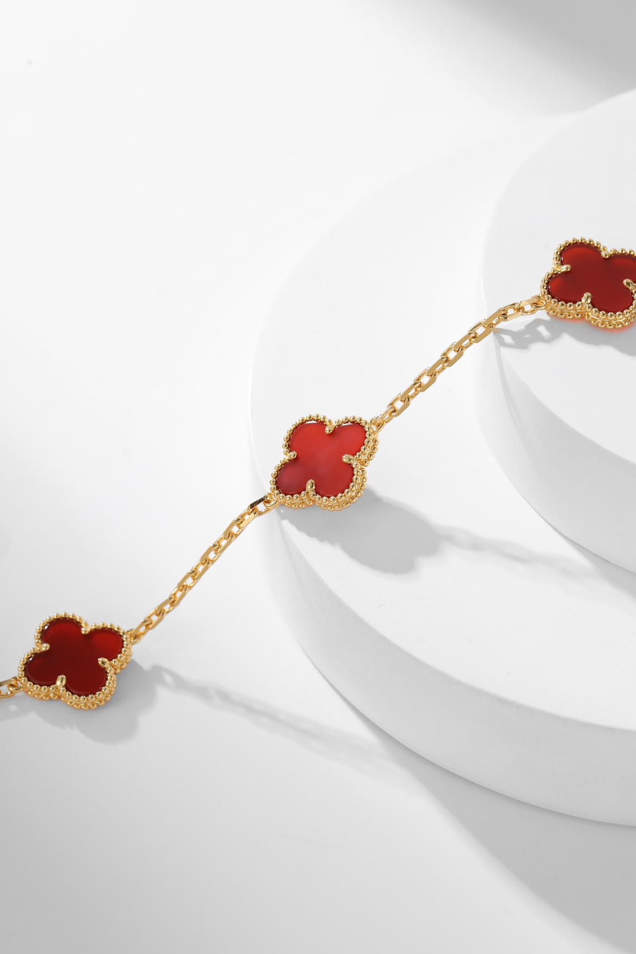 四季都要带的项链 ,梵克雅宝十花红玉髓项链(黄金色) Alhumbra Vintage 十花项链 在单花已经快要街款的时光 进阶十花可谓是驾驭四季的不二之选 穿睡衣穿t恤溜街都能戴,双层、当手链的戴法可以随意解锁